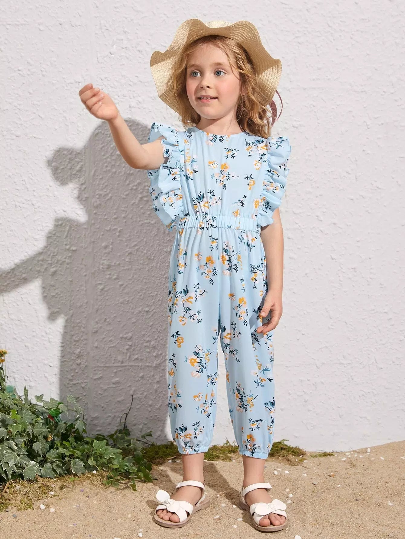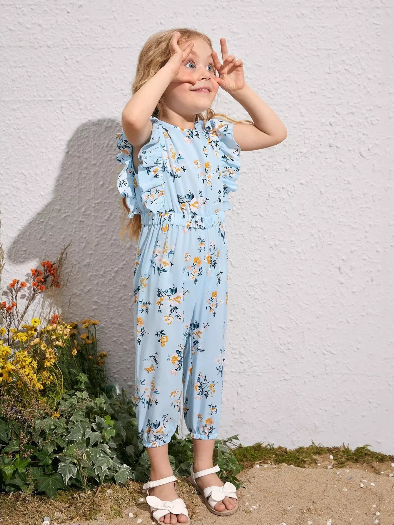 جمبسوت بطبعة زهور وحواف مكشكشة للبنات الصغار