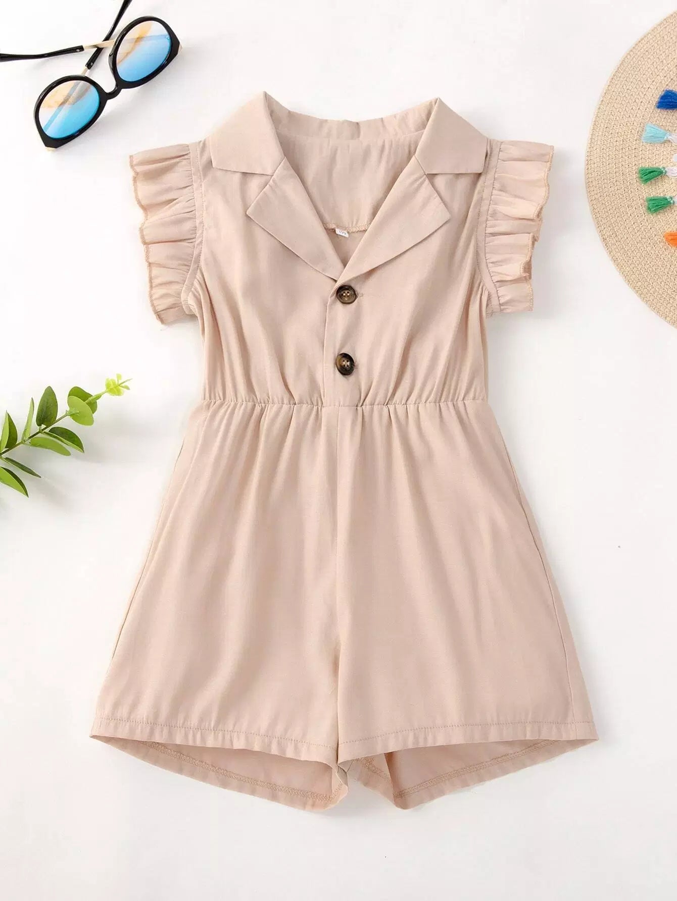 رومبر بناتي صغيرات سادة بنصف أزرار بنصف أزرار
