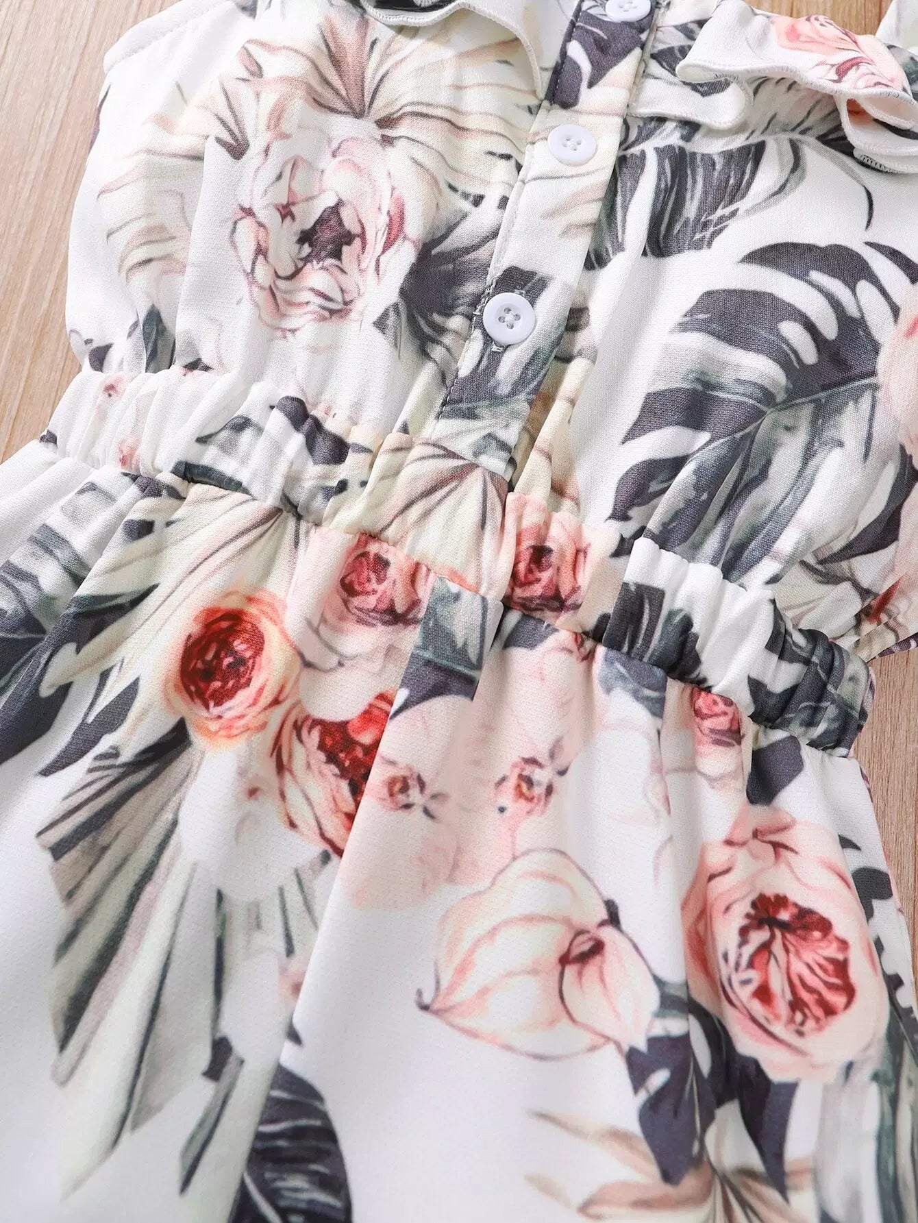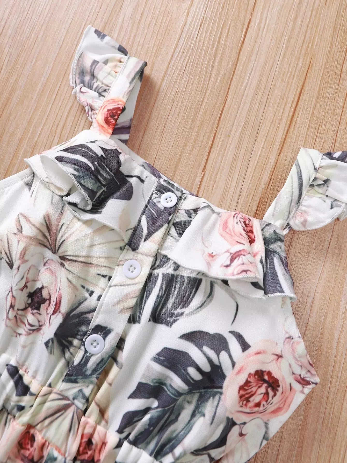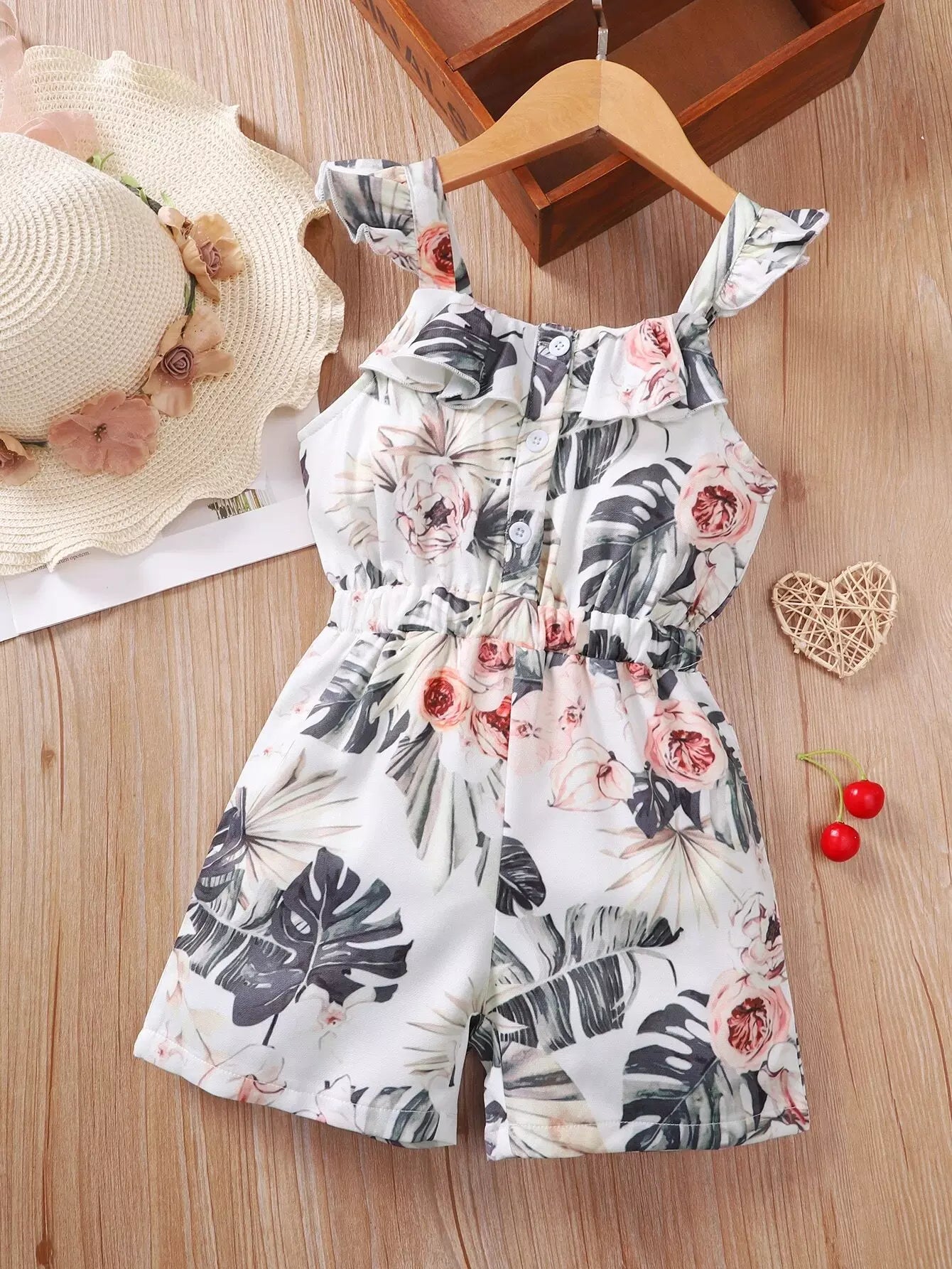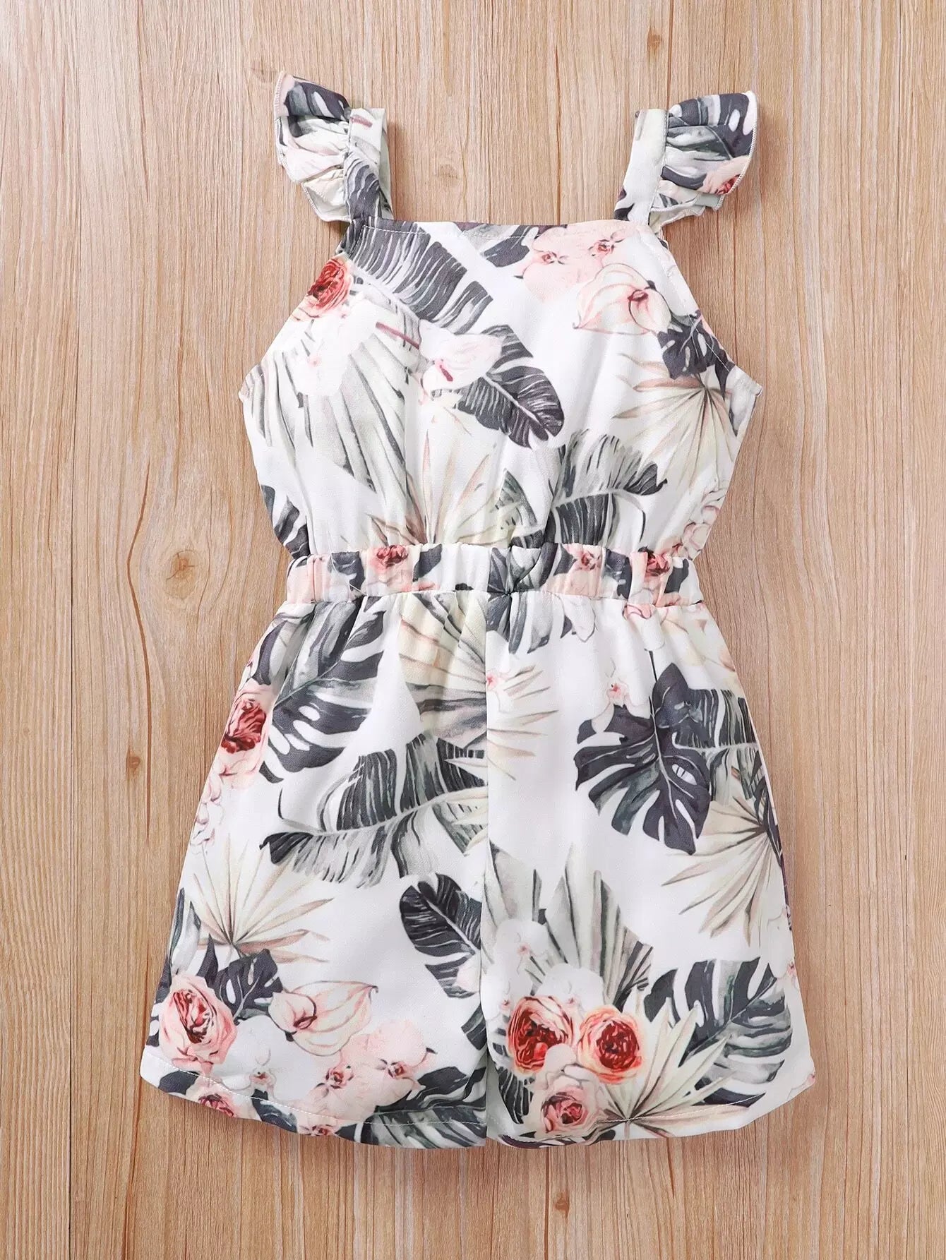 رومبر كشكش مزين بطبعة استوائية للبنات الصغار