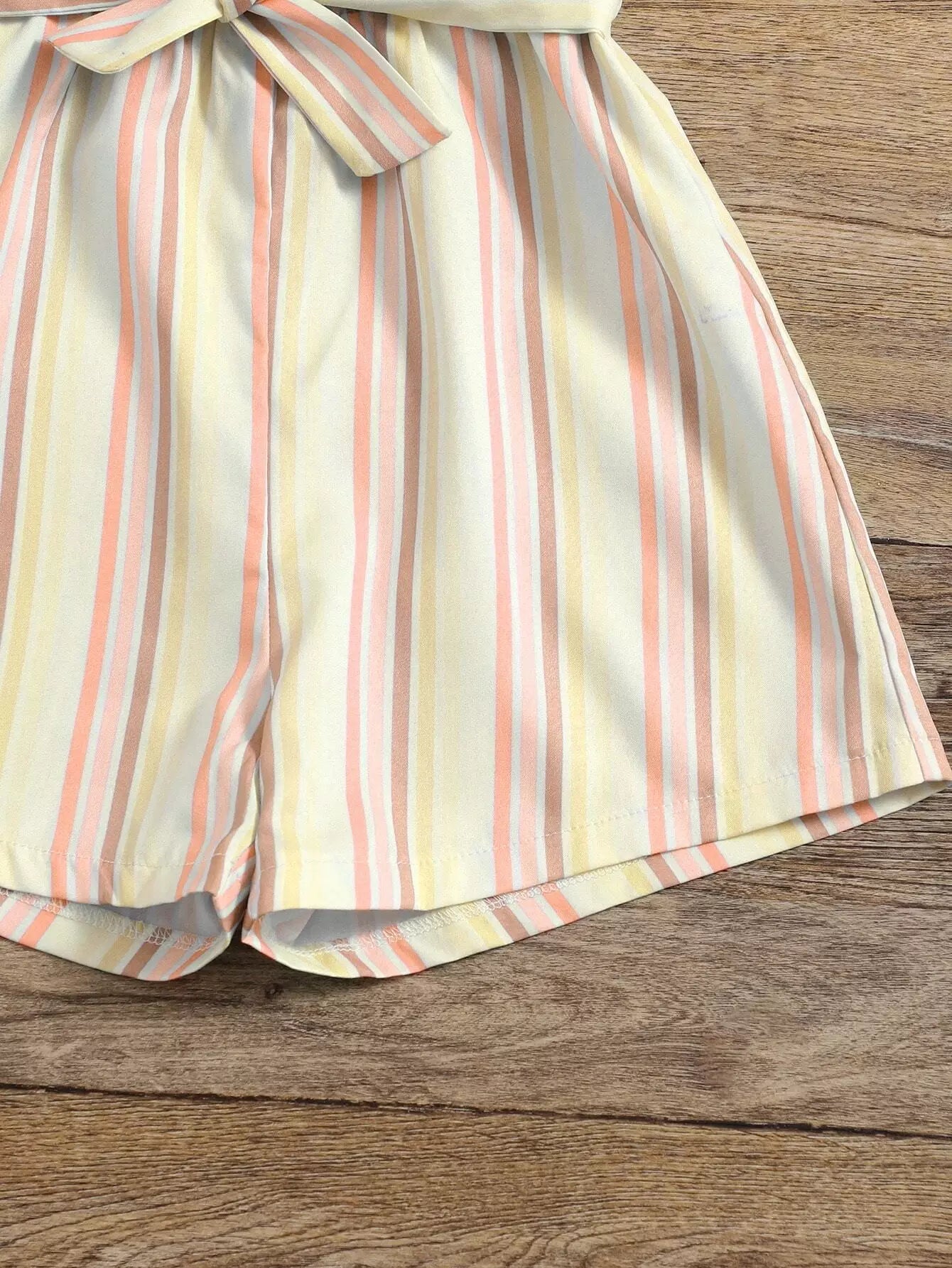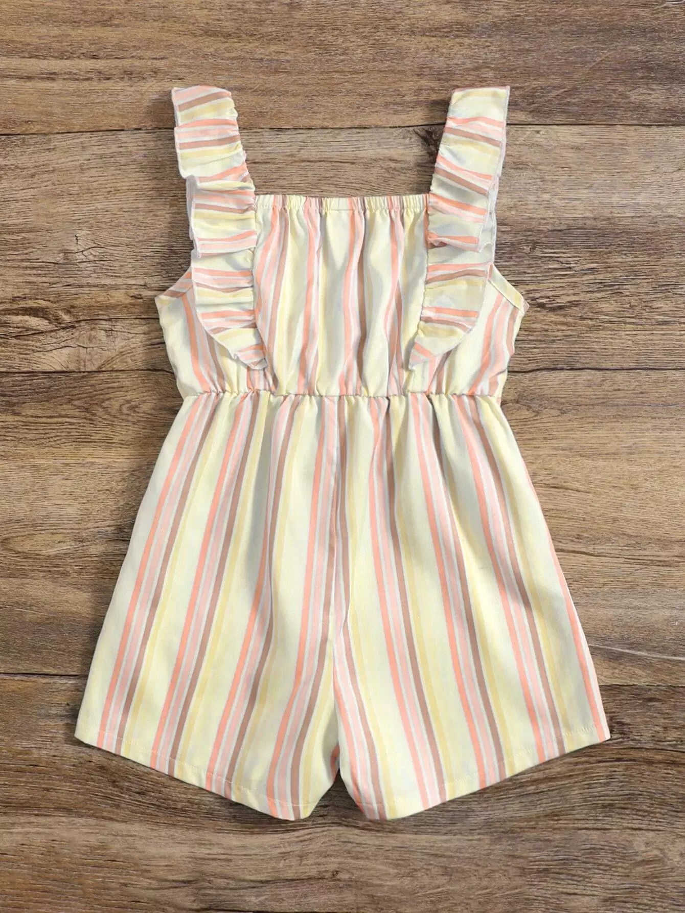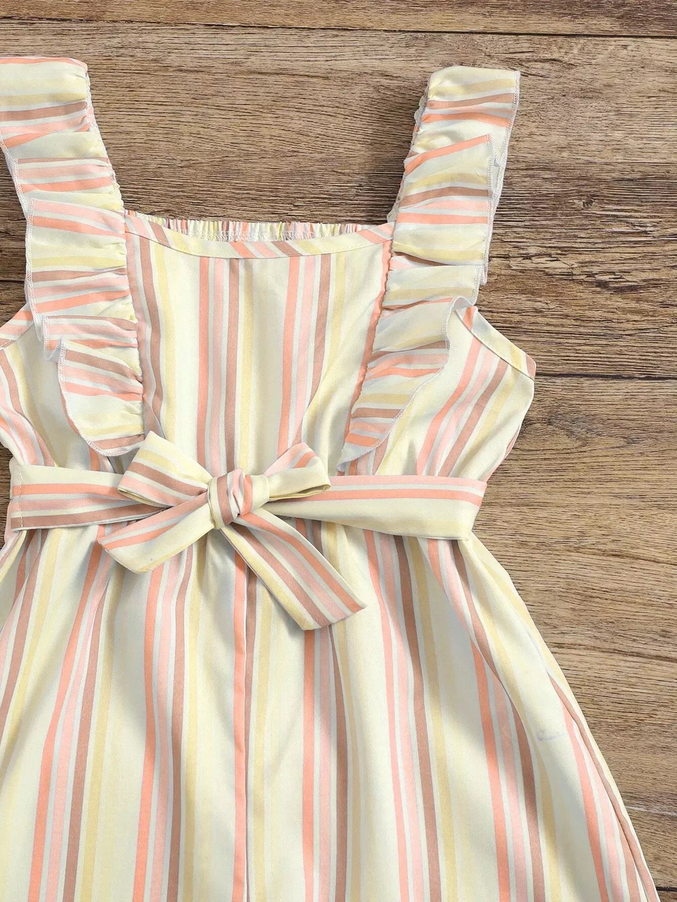 رومبير للفتيات الصغيرات مخطط عموديًا وبحواف مكشكشة بدون حزام
