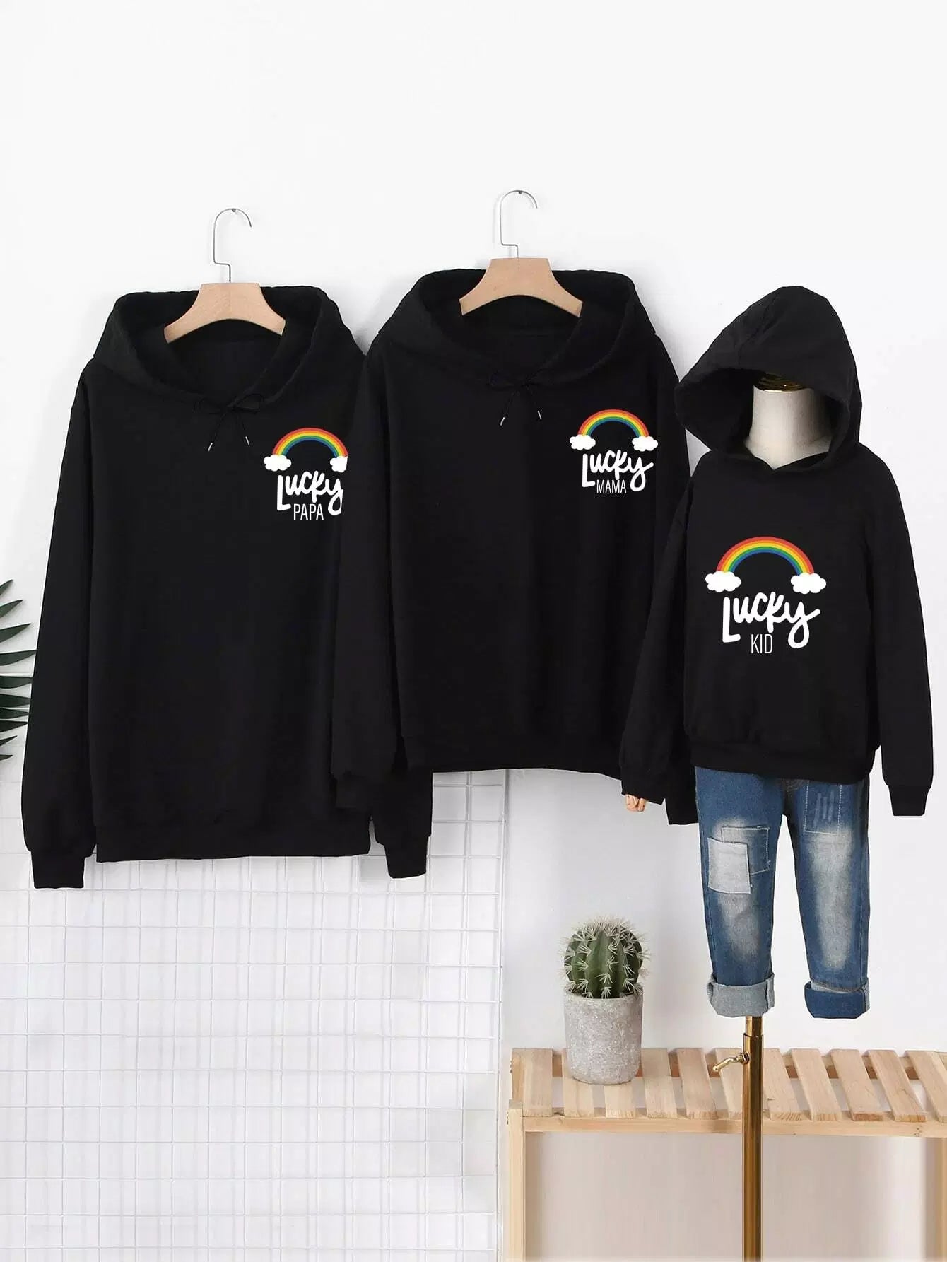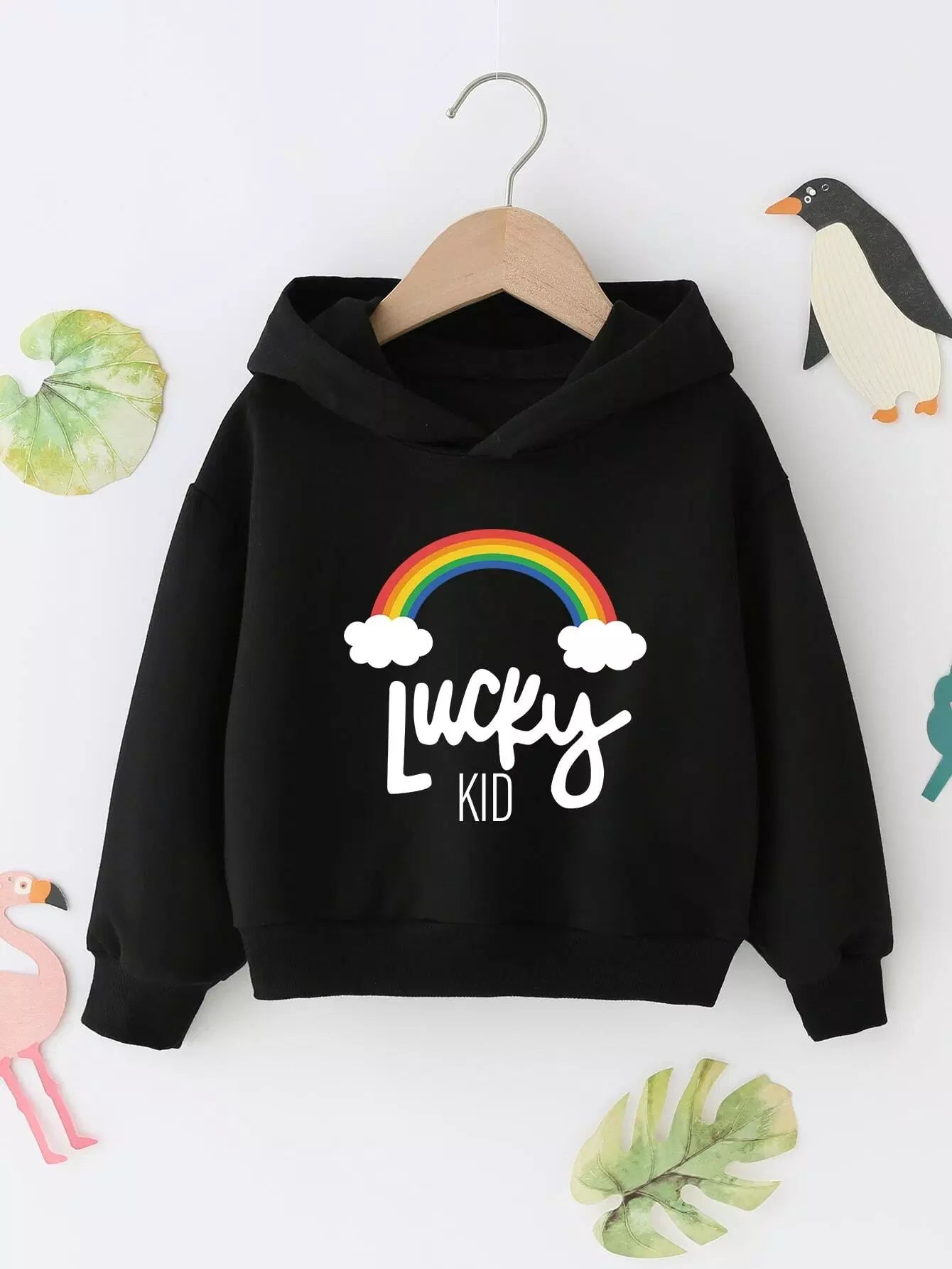 هودي كتف منسدل برسومات قوس قزح ورسومات حروف للبنات الصغيرات 1 قطعة
