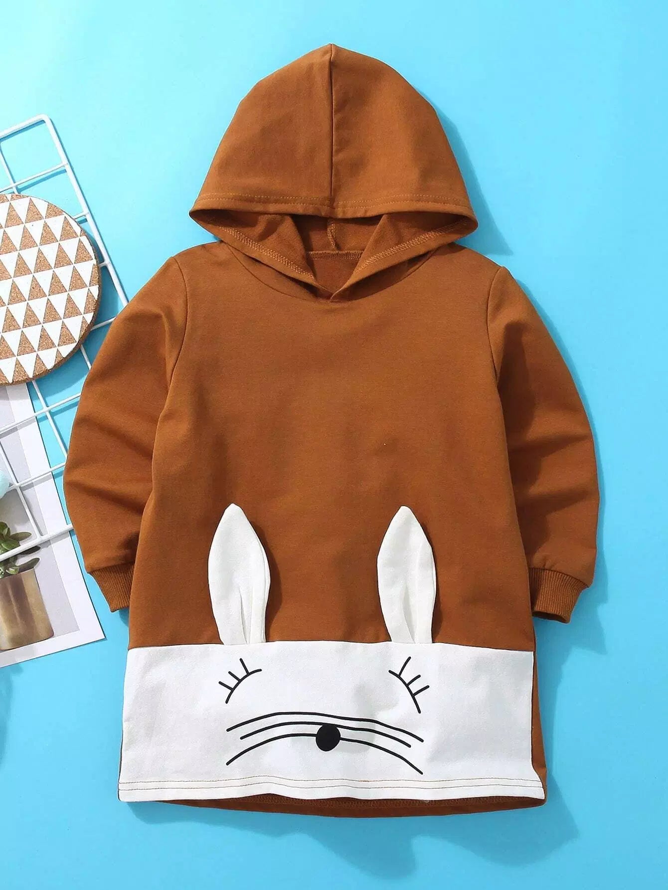 طفلة صغيرة هودي بتصميم أذنين ثلاثي الأبعاد للبنات برسومات كرتونية