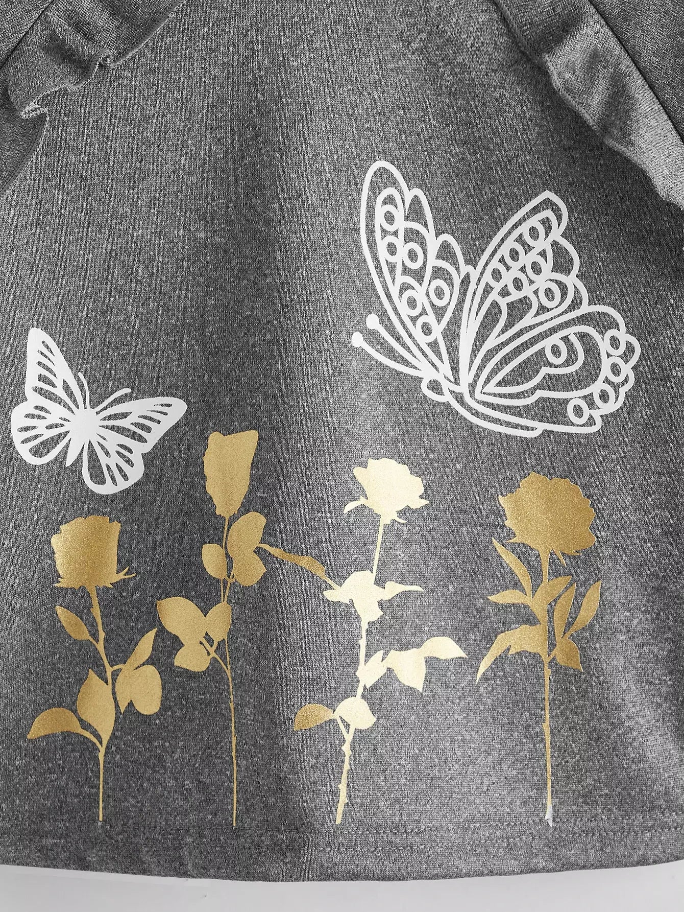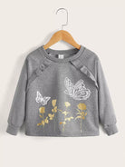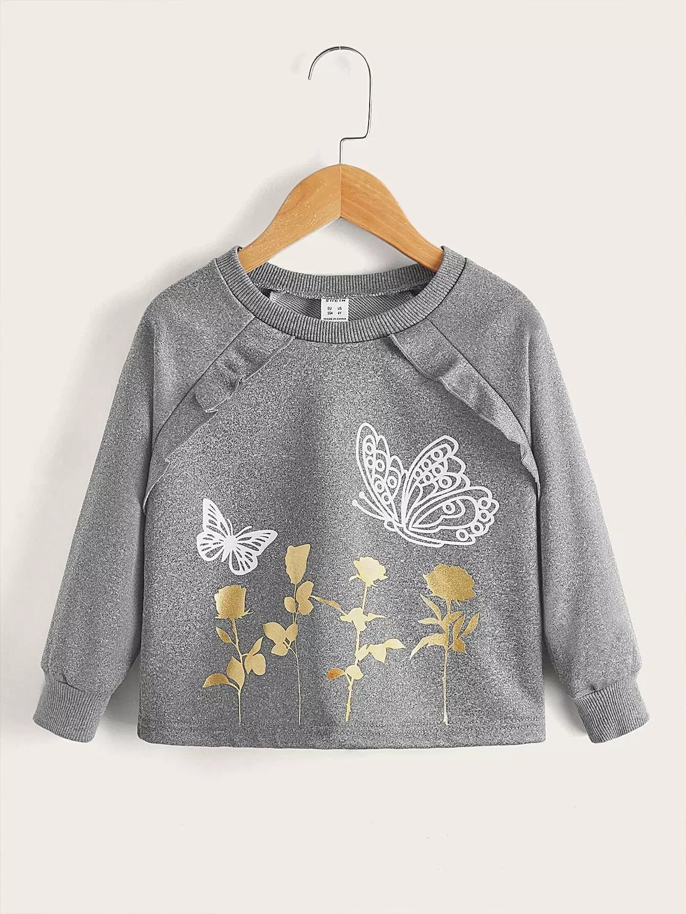 سويت شيرت بأكمام راجلان ورسومات فراشات وزهور للبنات الصغار
