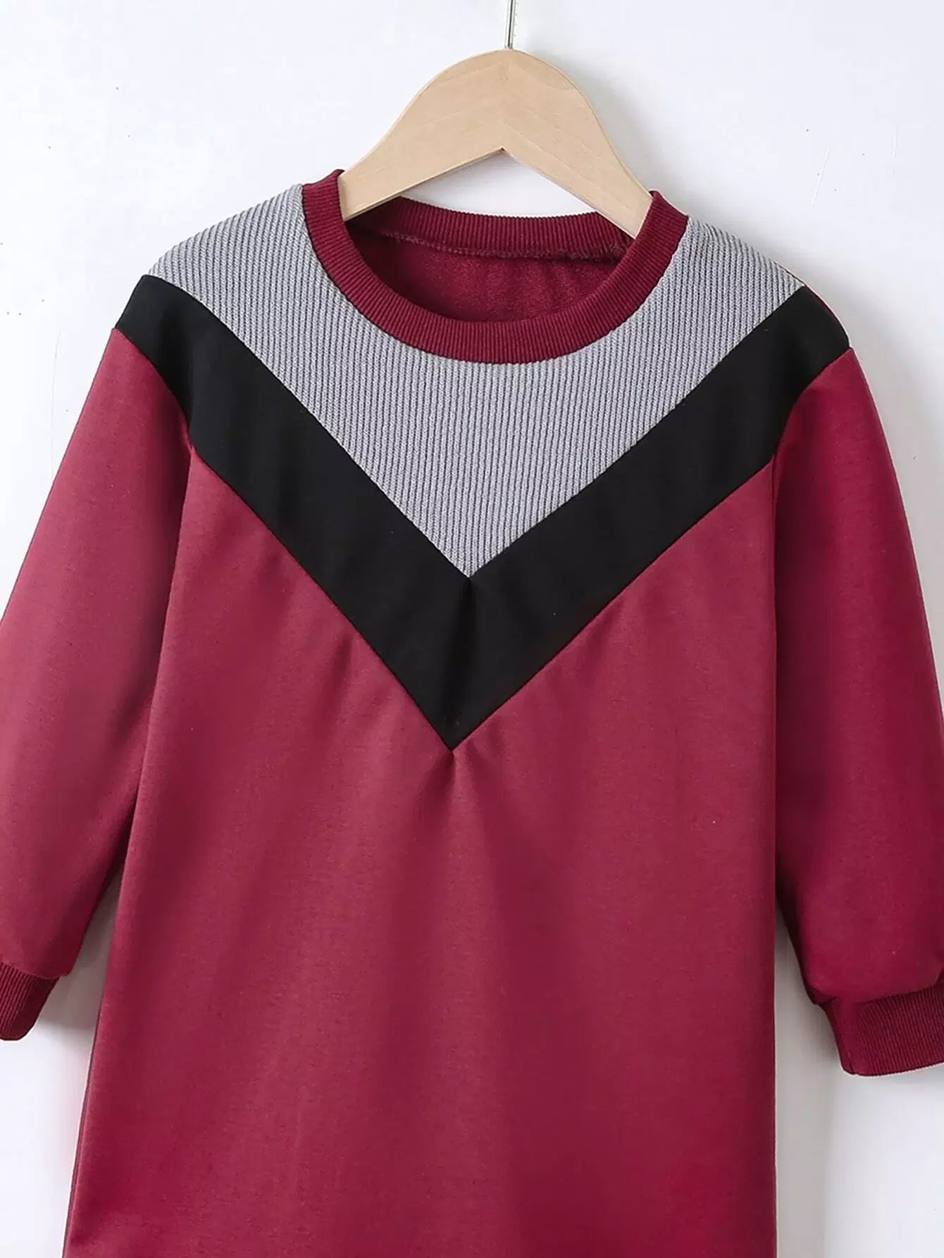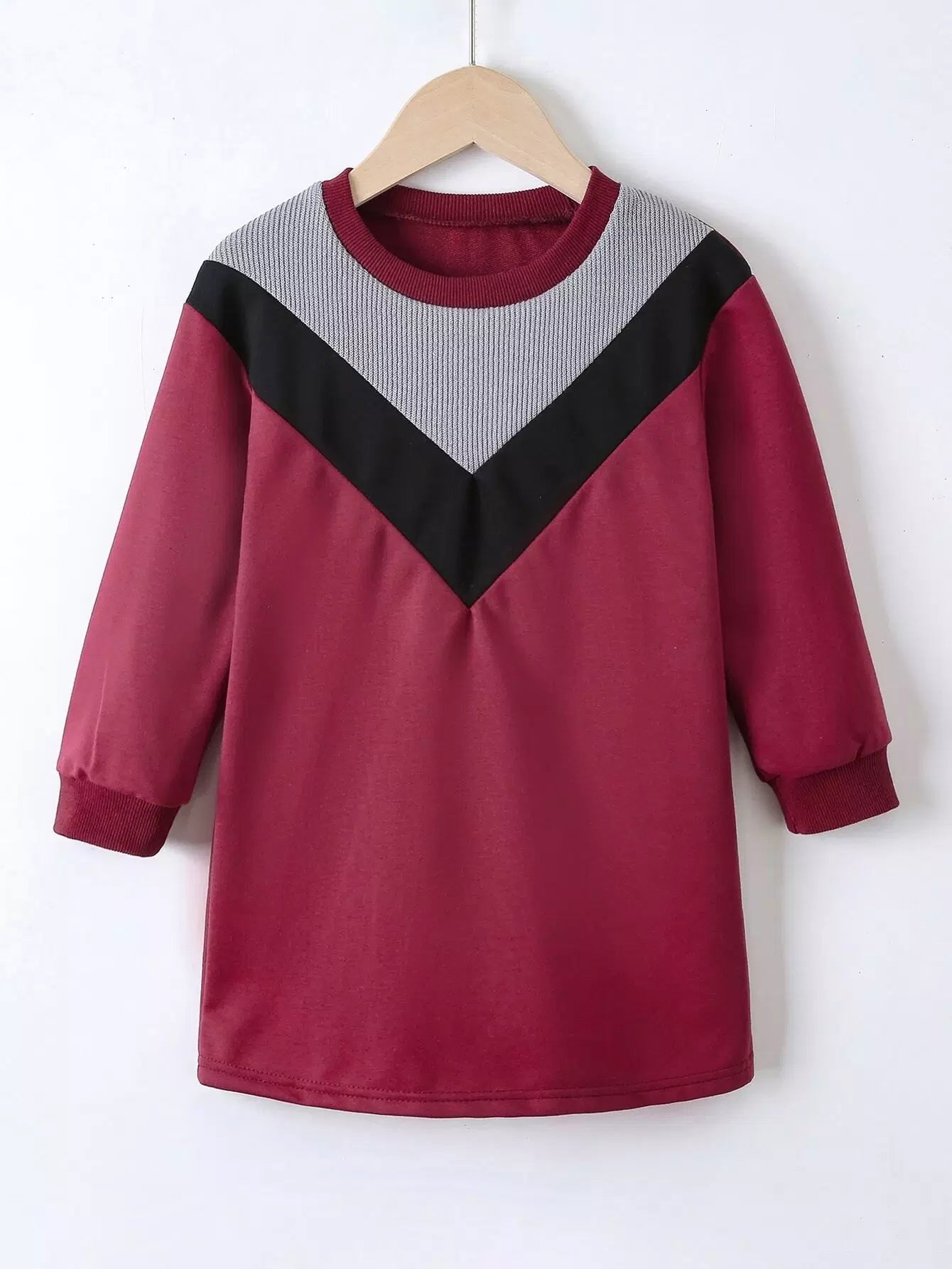 فستان سويت شيرت بطبعة شيفرون للبنات الصغار