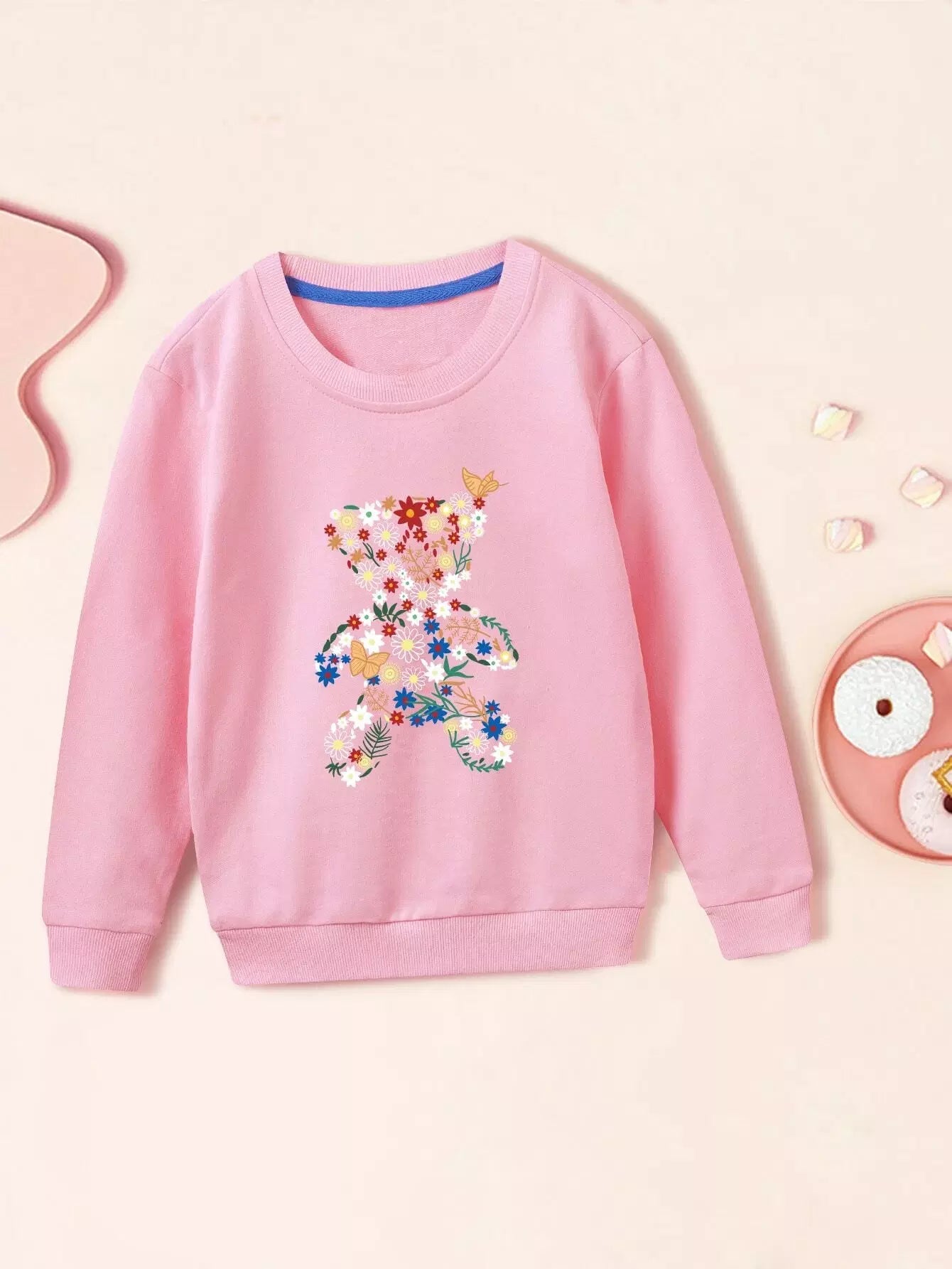 سويت شيرت بطبعة زهور وفراشات للبنات الصغار
