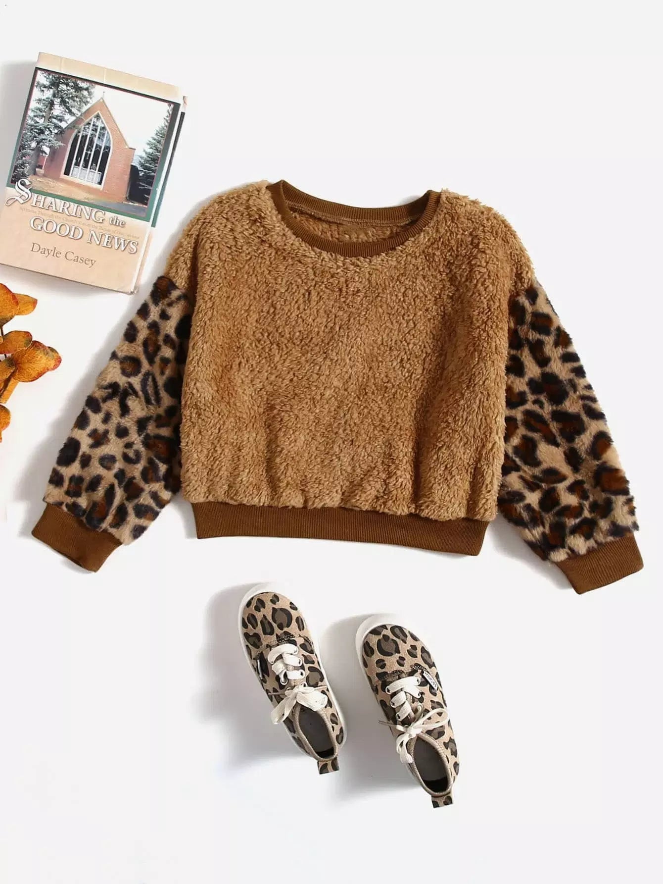 سويت شيرت تي شيرت بنقشة الفهد للبنات الصغار