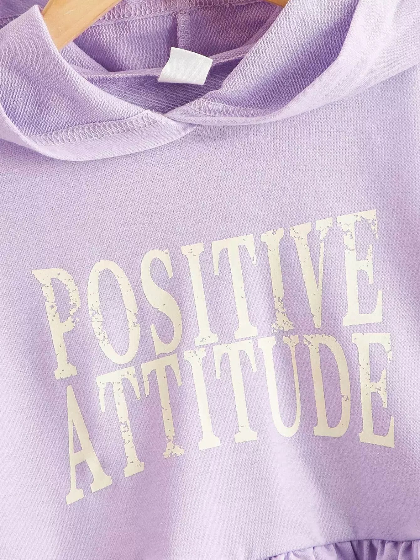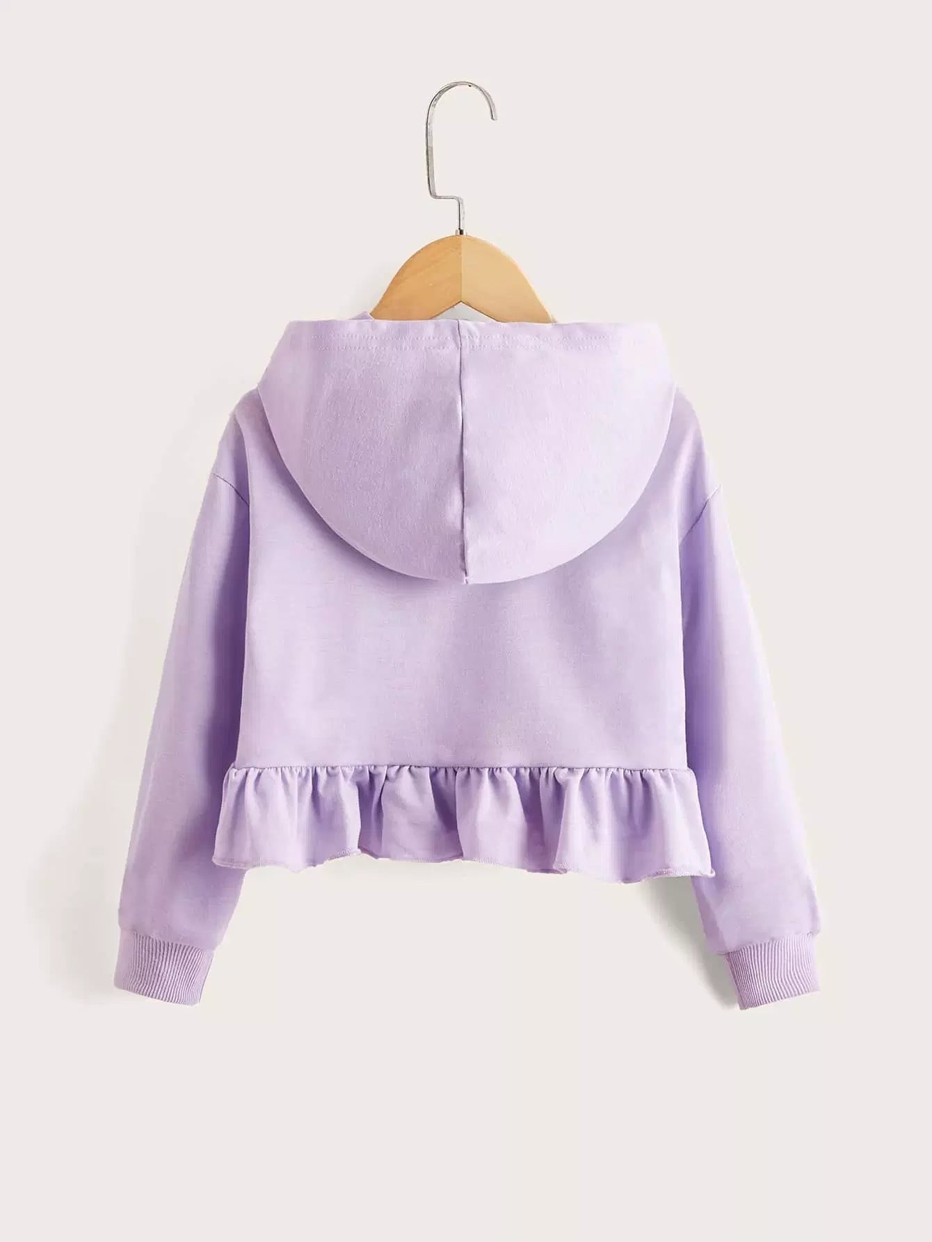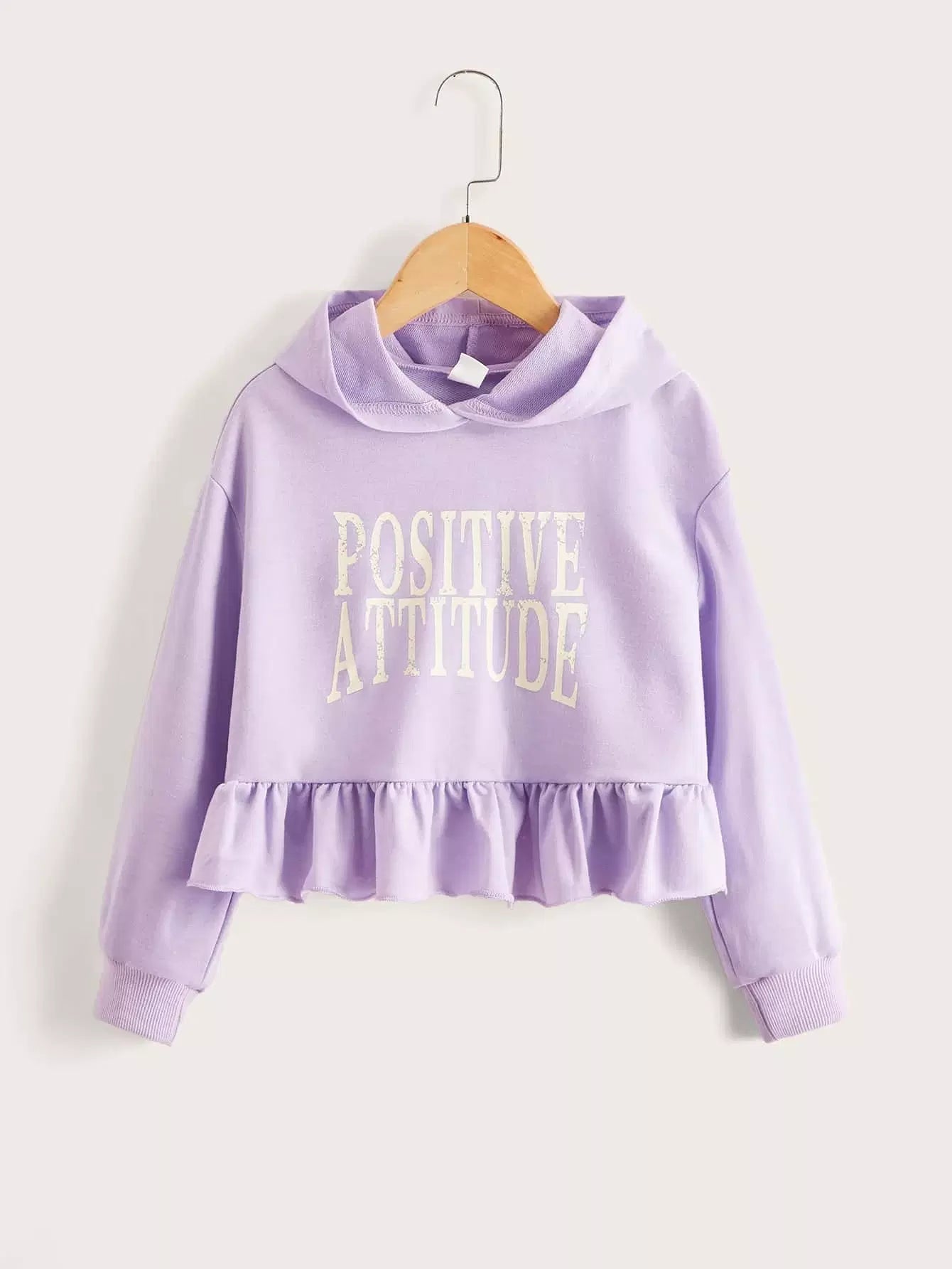 هودي بطبعة حروف جرافيكية وحواف مكشكشة للبنات الصغار