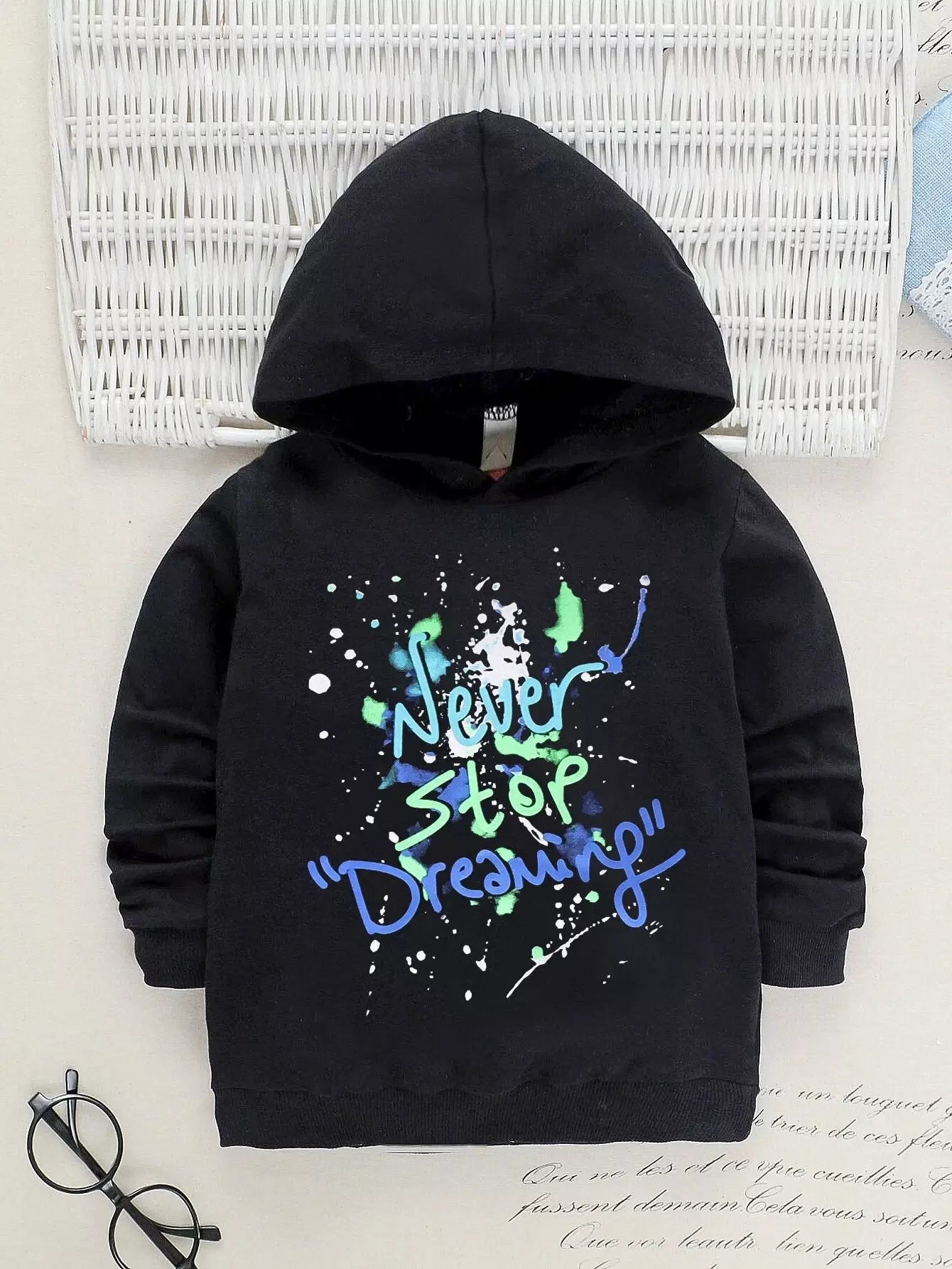 هودي بطبعة شعار وطلاء متناثر للبنات الصغار
