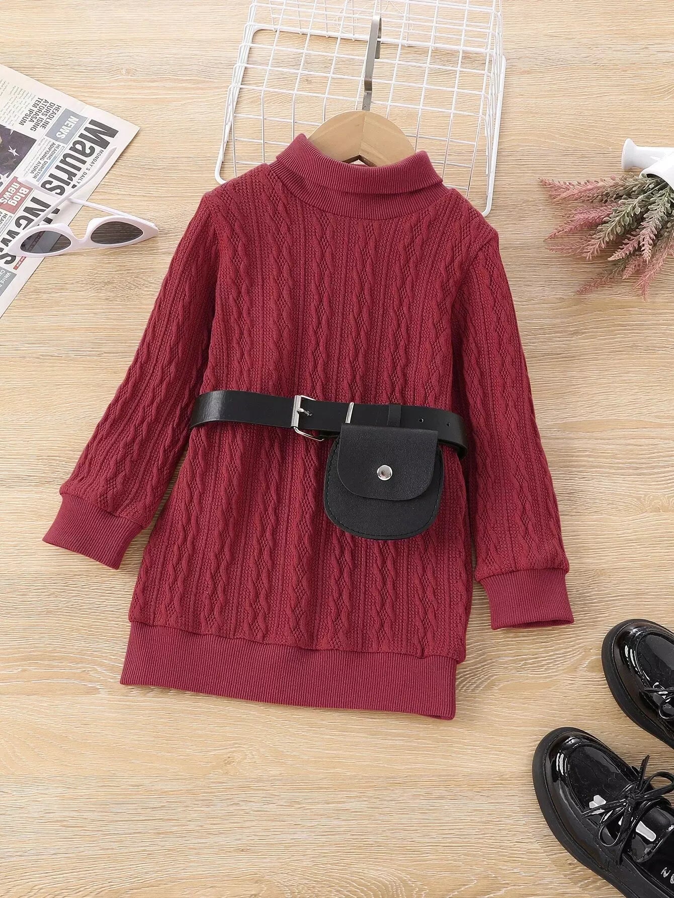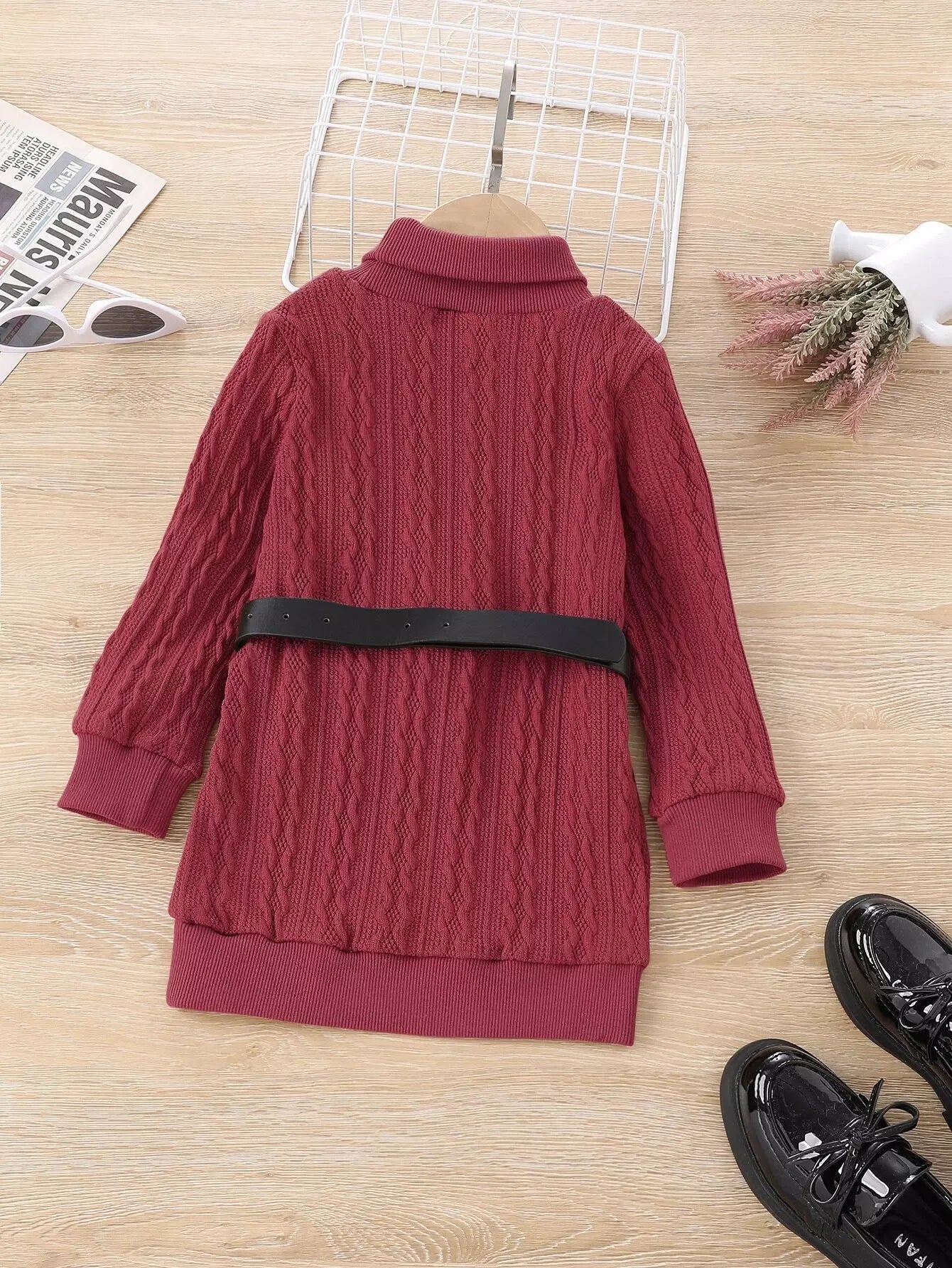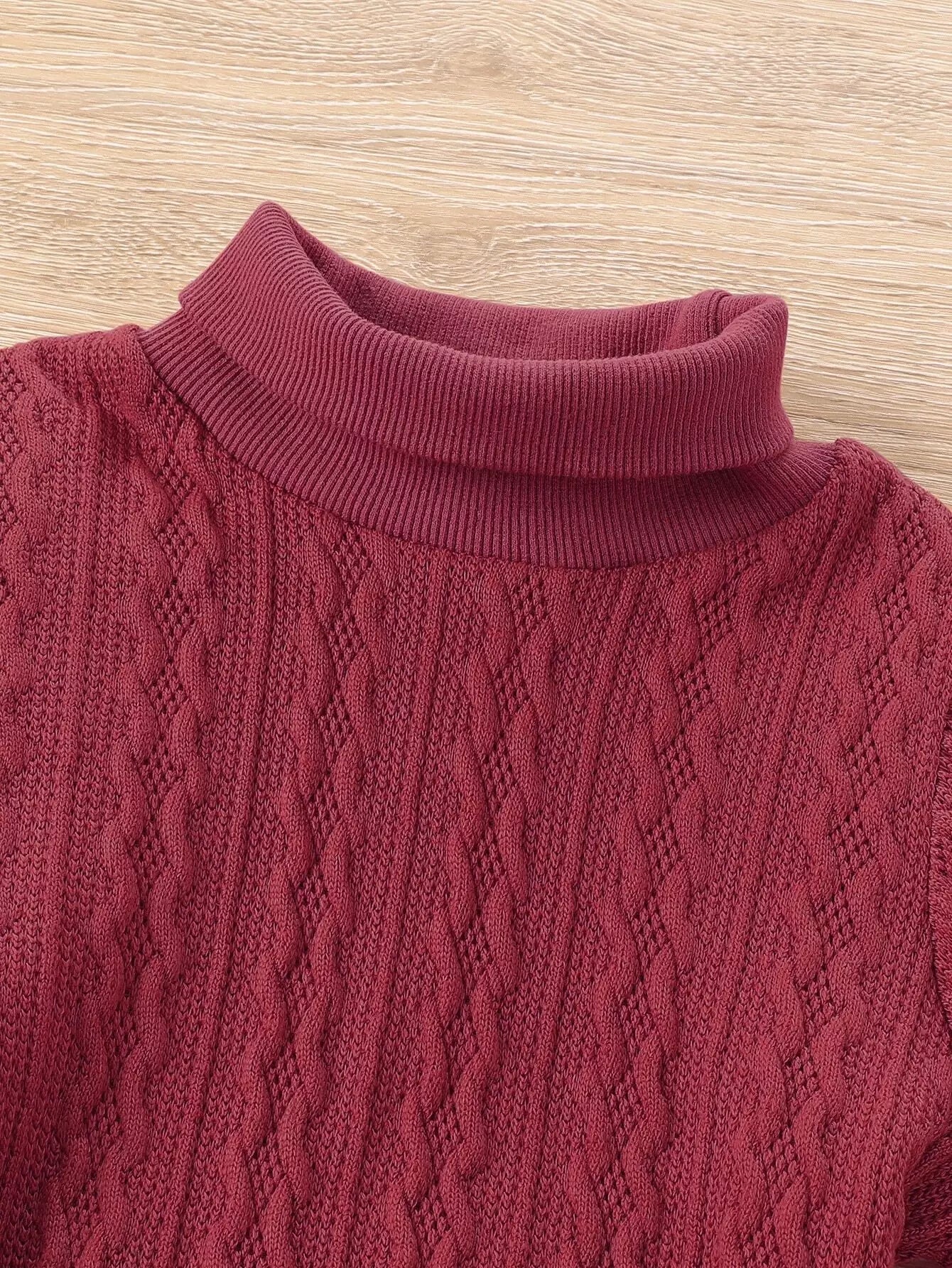 سويت شيرت سادة برقبة عالية للفتيات الصغيرات بدون حزام