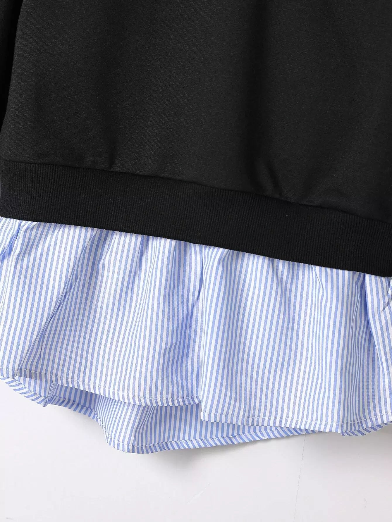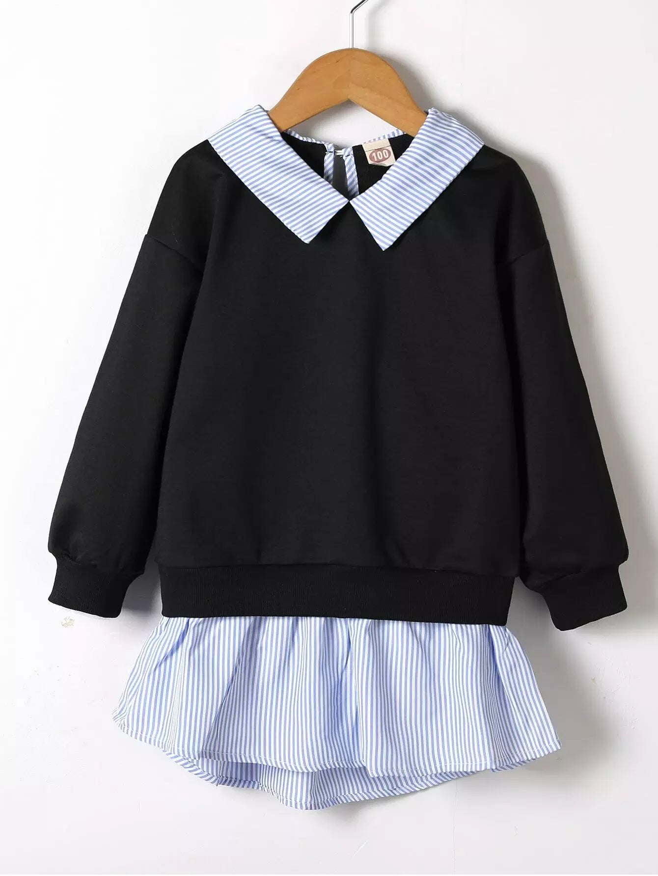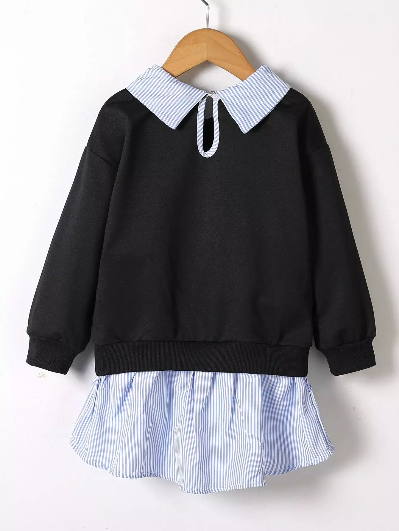 فستان بنات صغيرات مخطط منسدل الكتفين بحافة كشكش 2 في 1 فستان سويت شيرت مخطط للبنات
