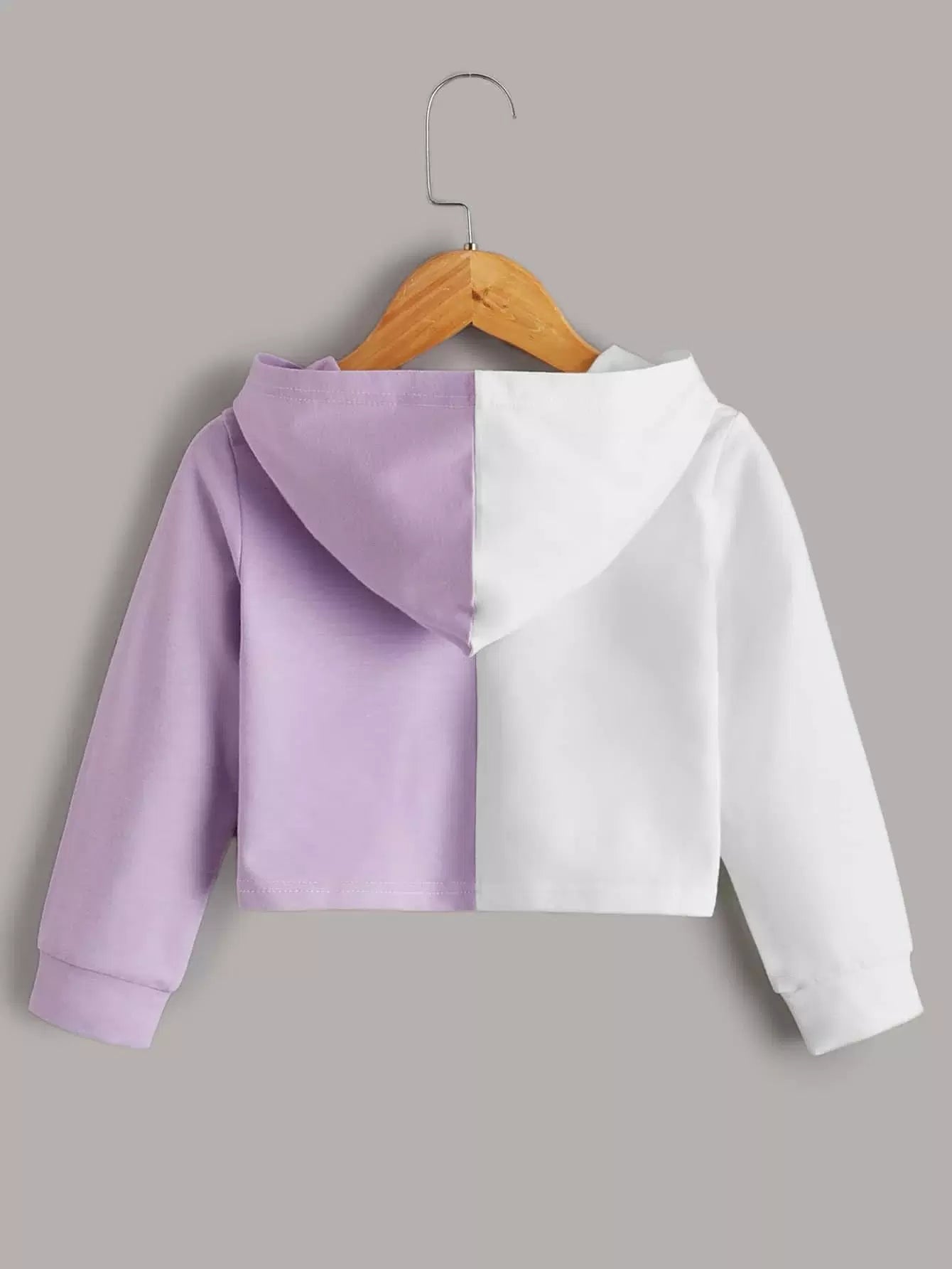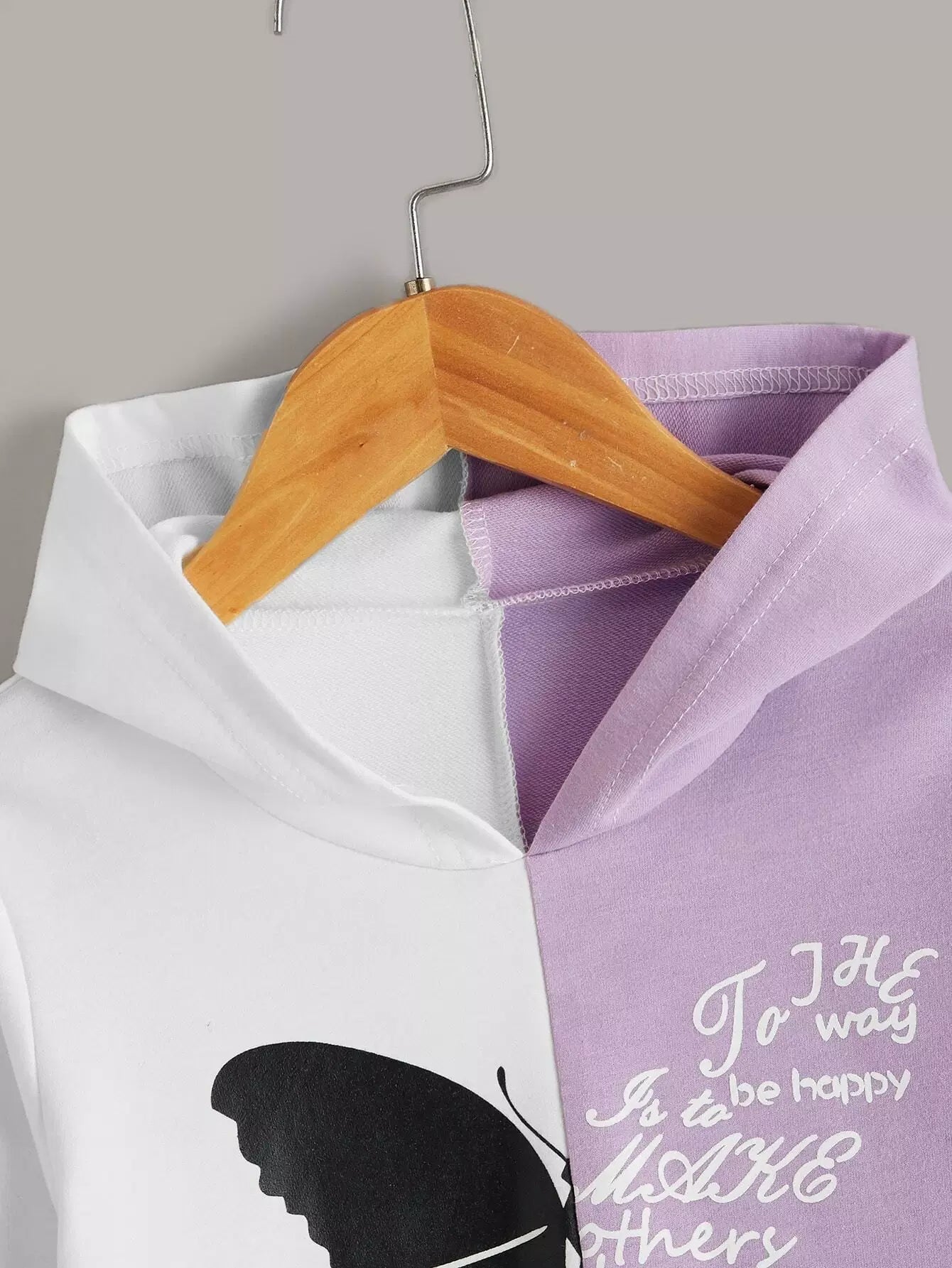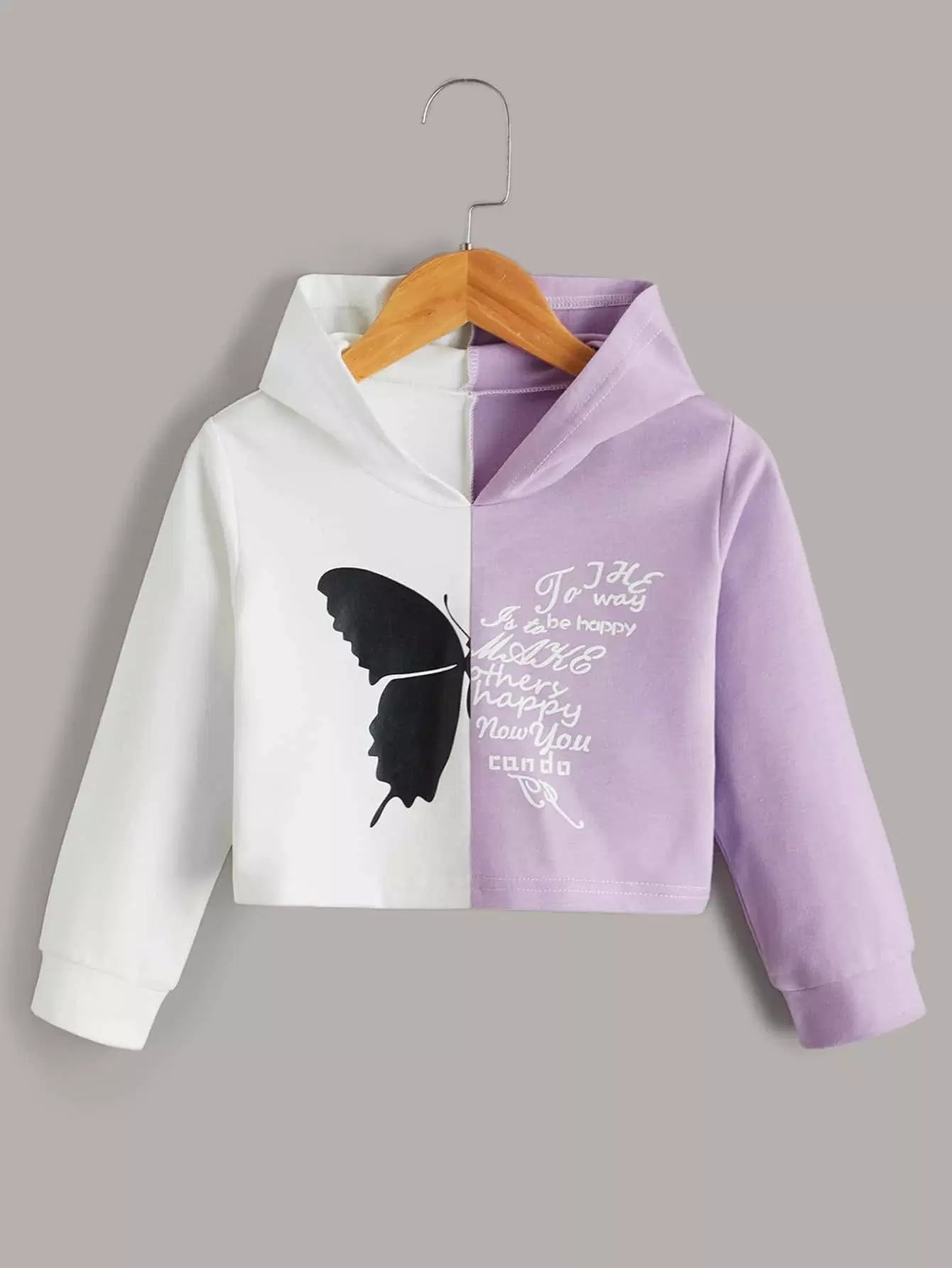 هودي بغطاء للرأس بلونين فراشة وشعار جرافيك للبنات الصغار