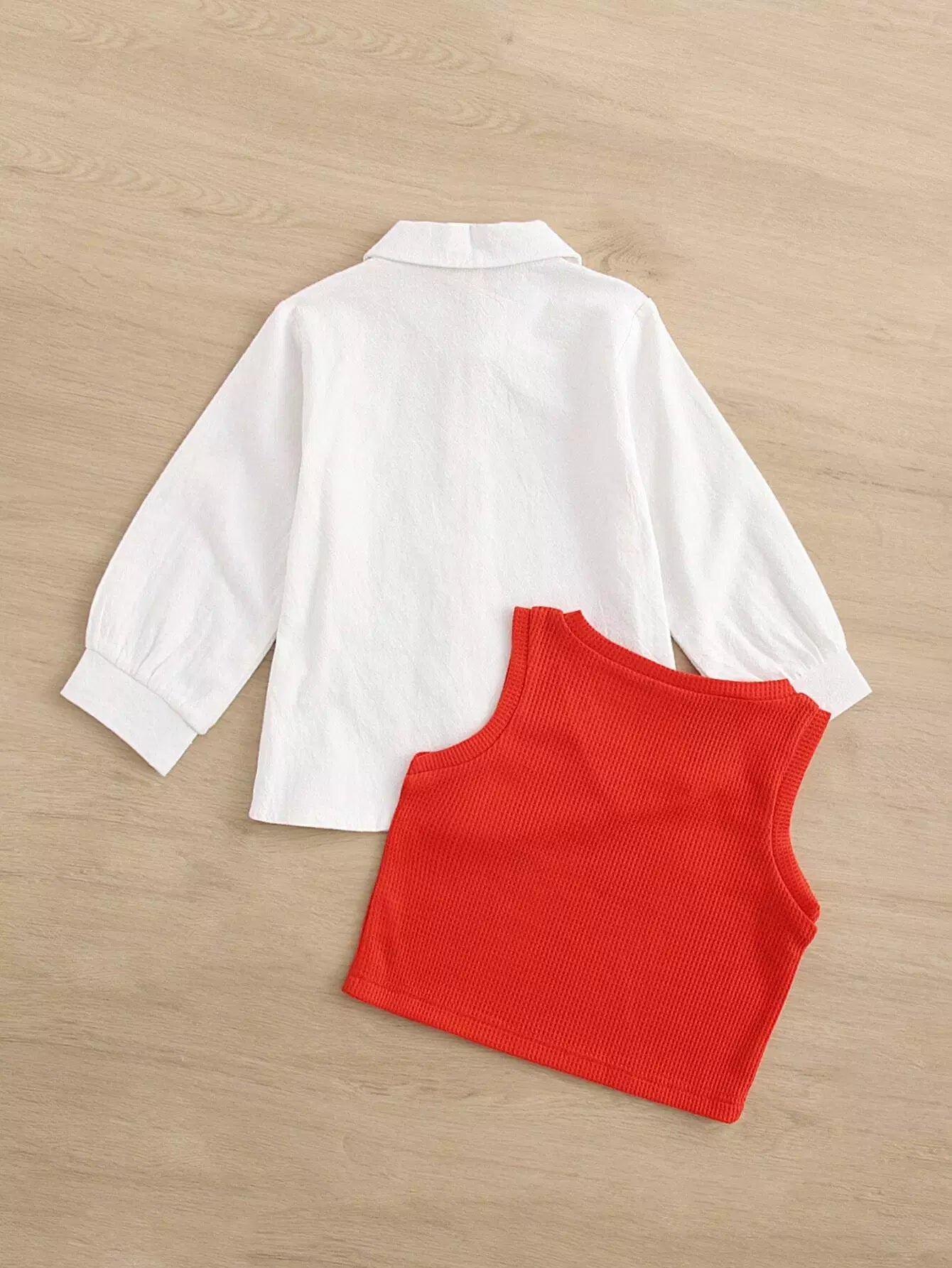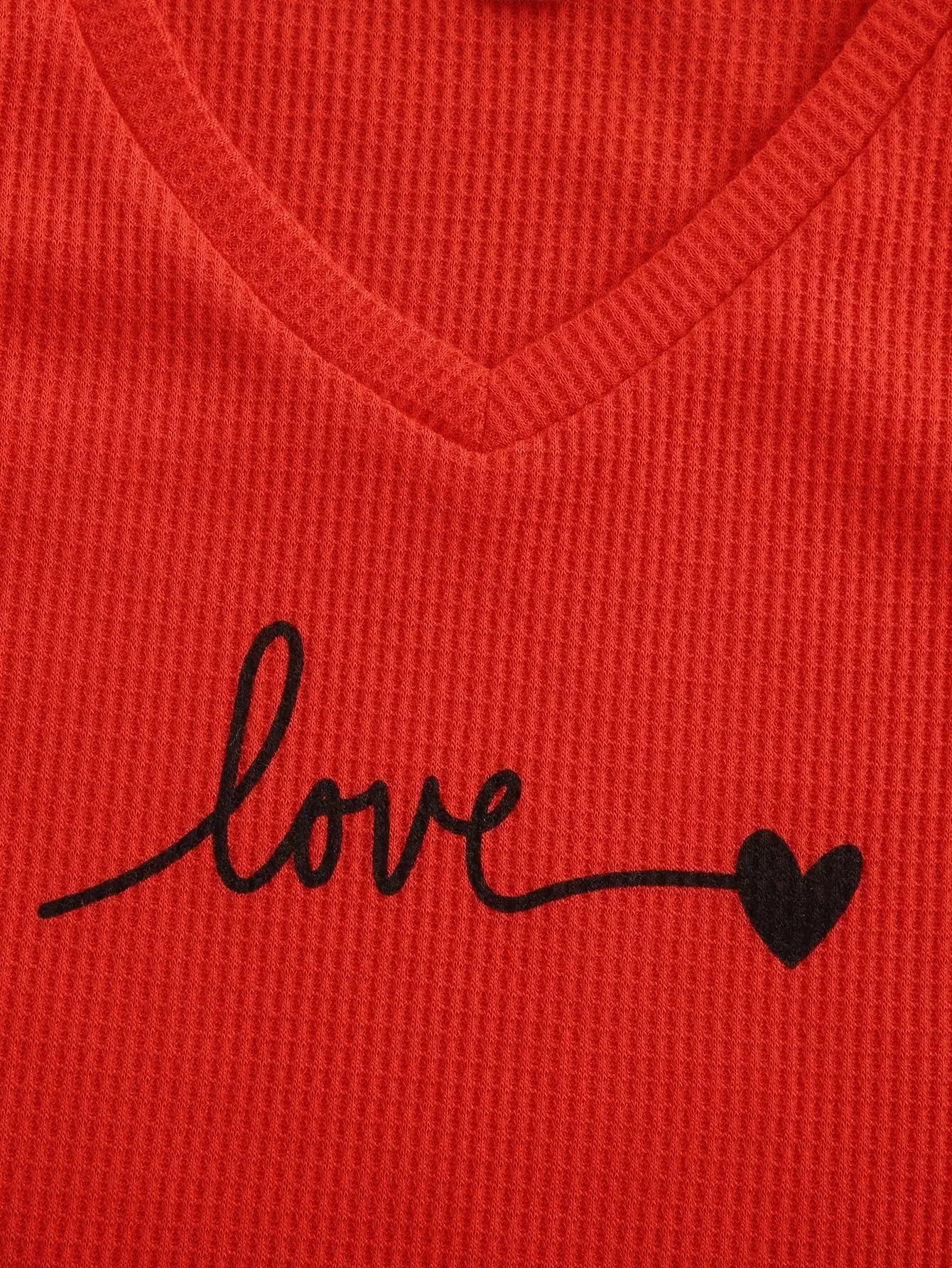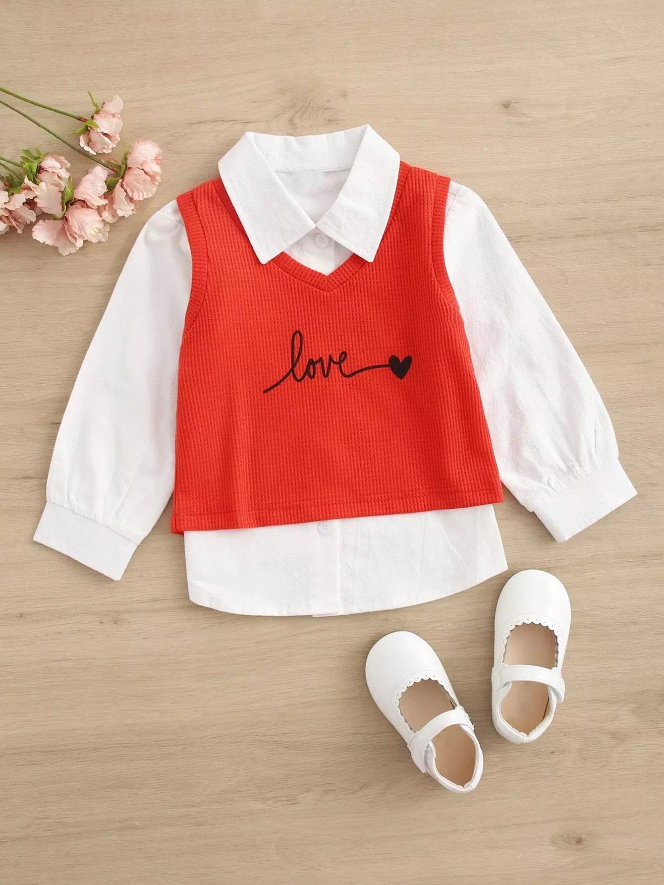 تيشيرت بدون أكمام بتصميم قلب ورسومات حروف لطفلة صغيرة مع بلوزة