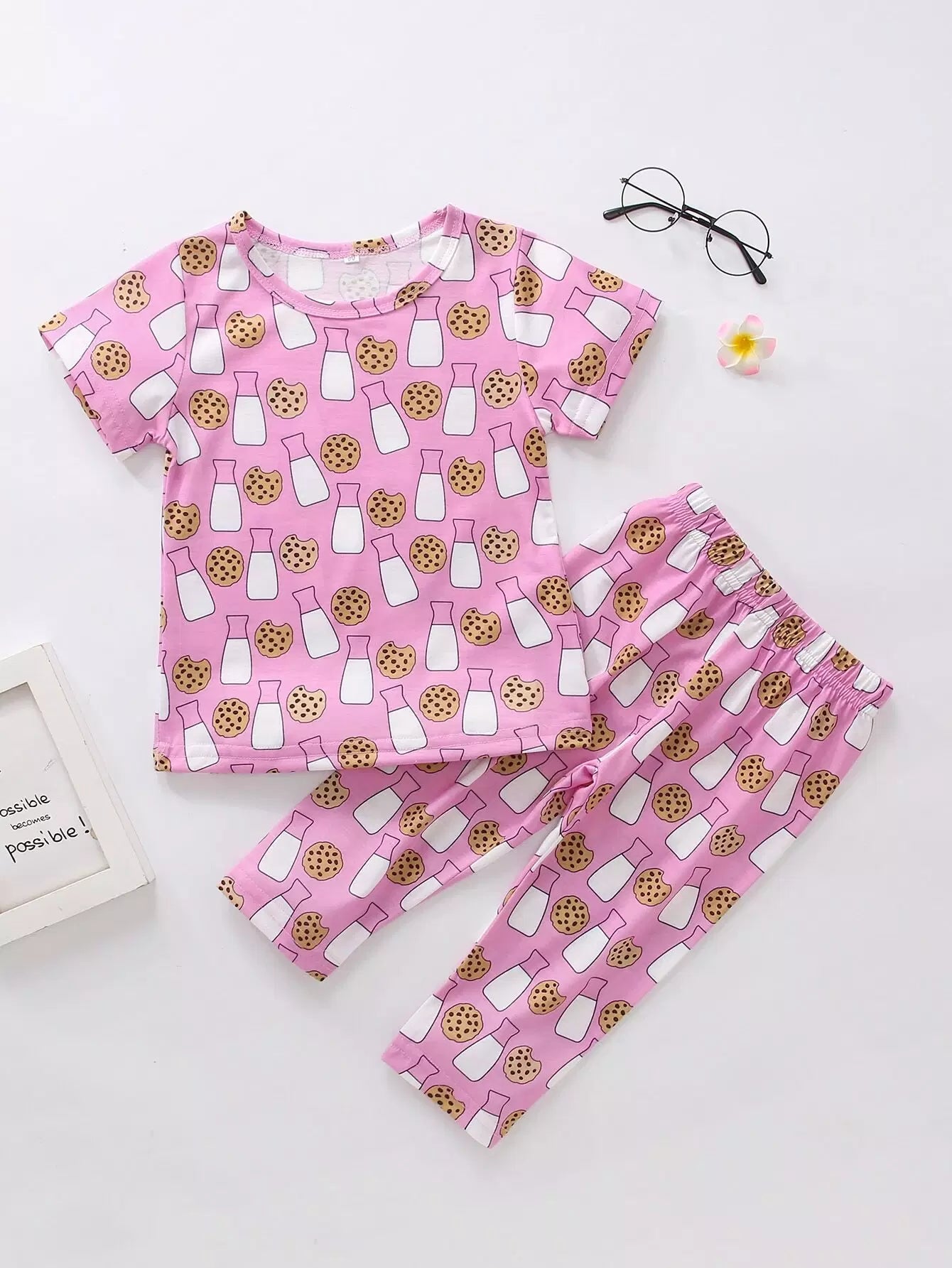 تي شيرت برسومات كرتونية بالكامل مع بنطلون للأطفال الصغار