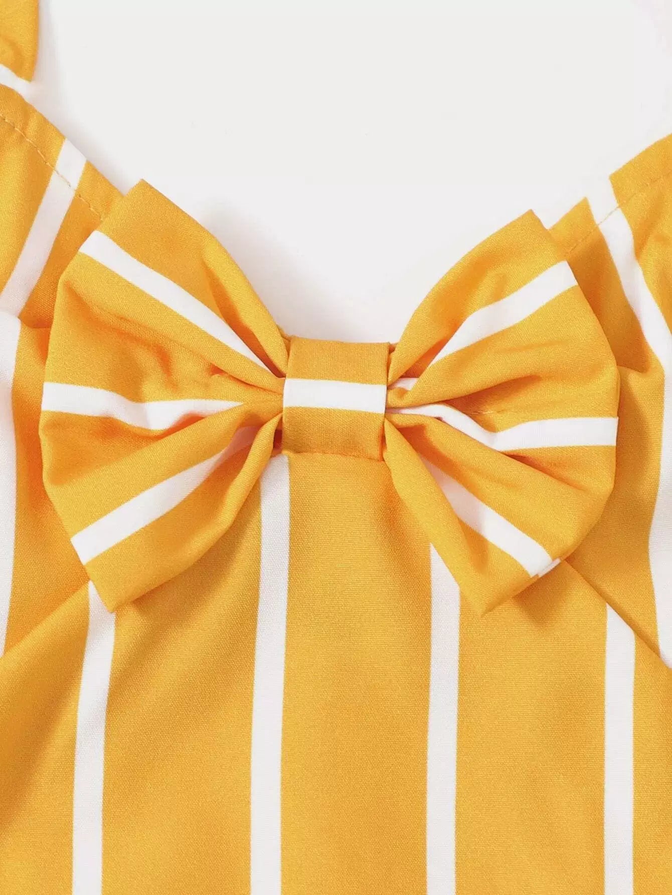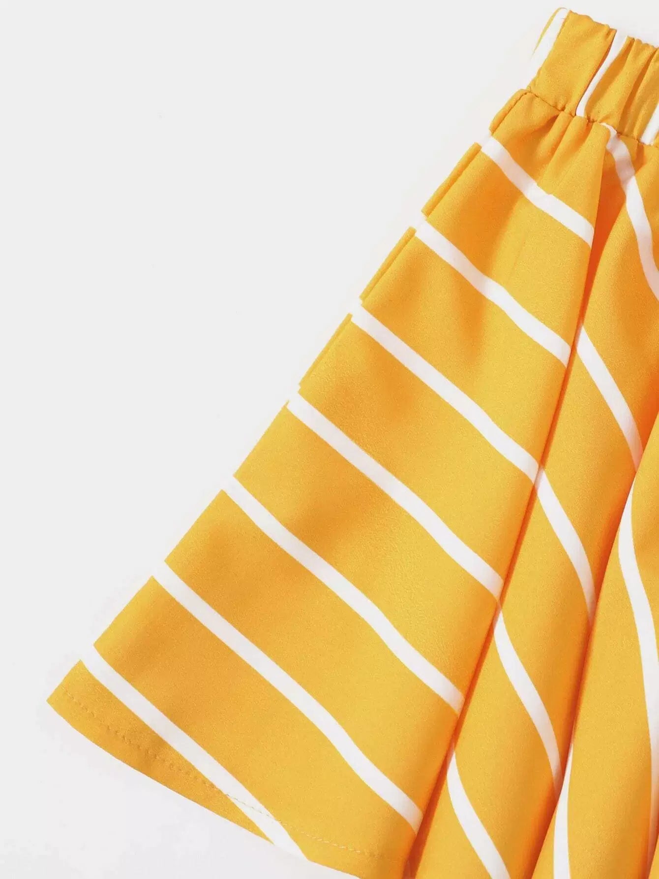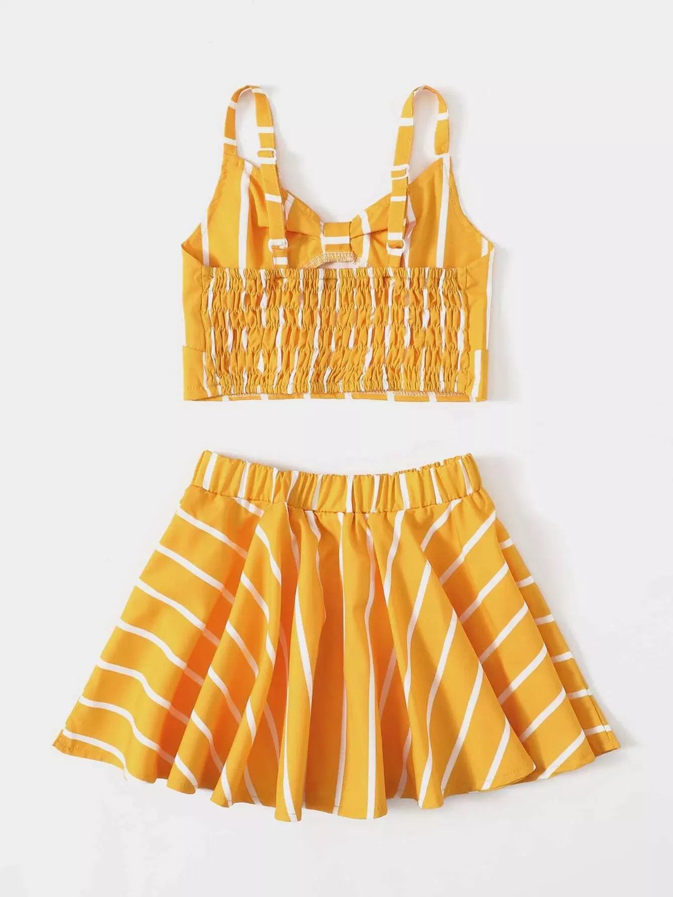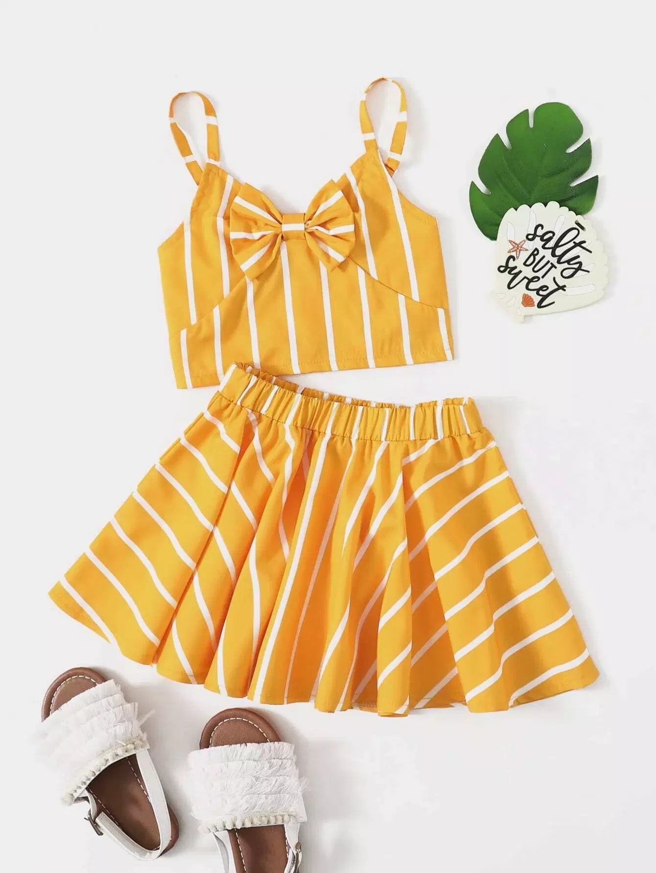 بلوزة وتنورة بناتي صغيرة مخططة بعقدة أمامية للبنات