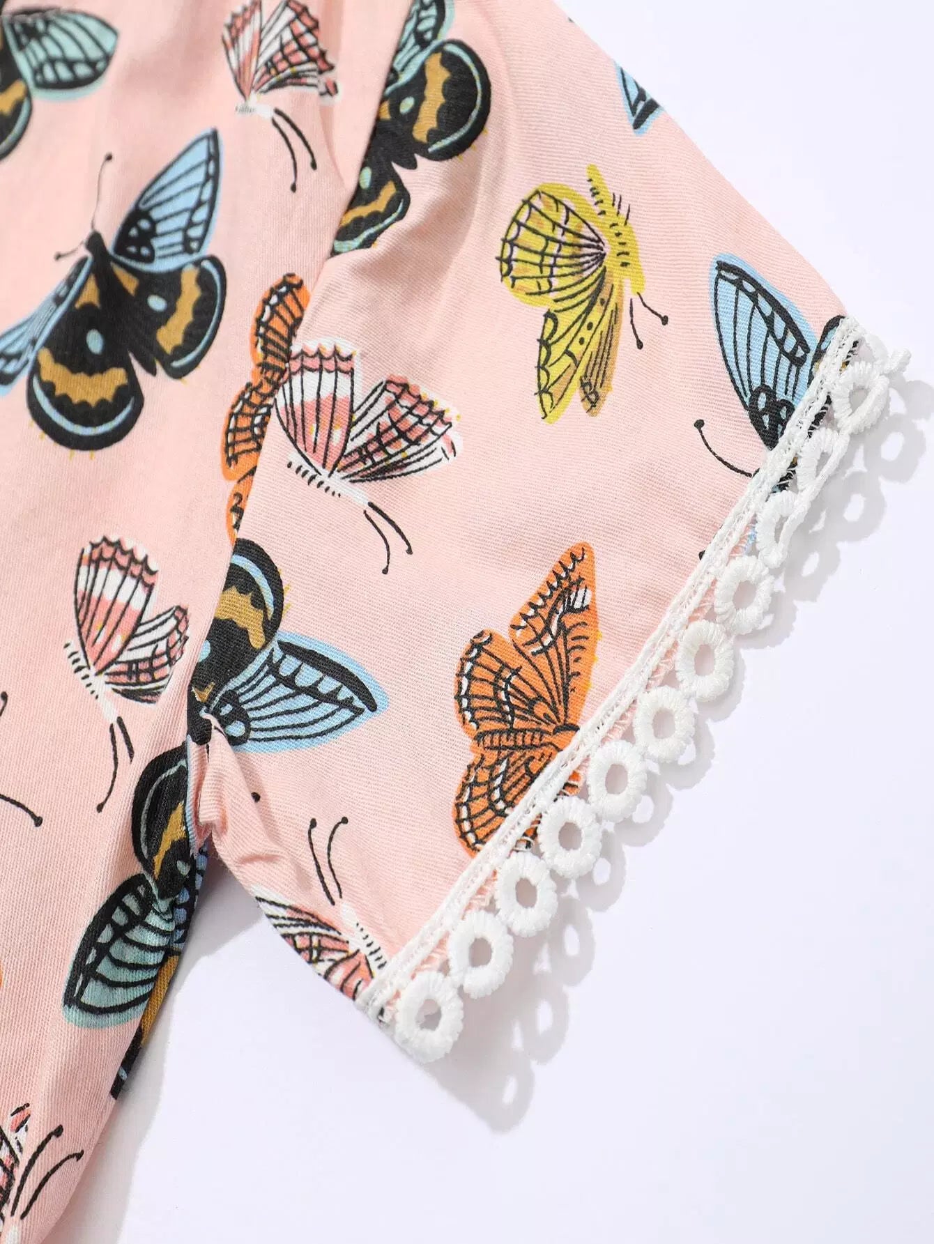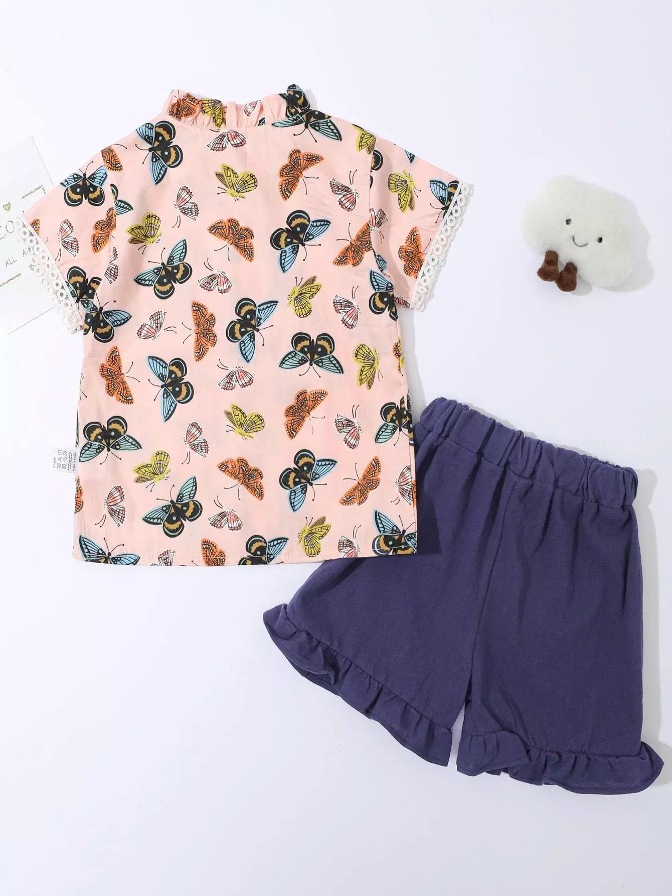 بلوزة بطبعة فراشات للبنات الصغار وشورت بحواف مكشكشة