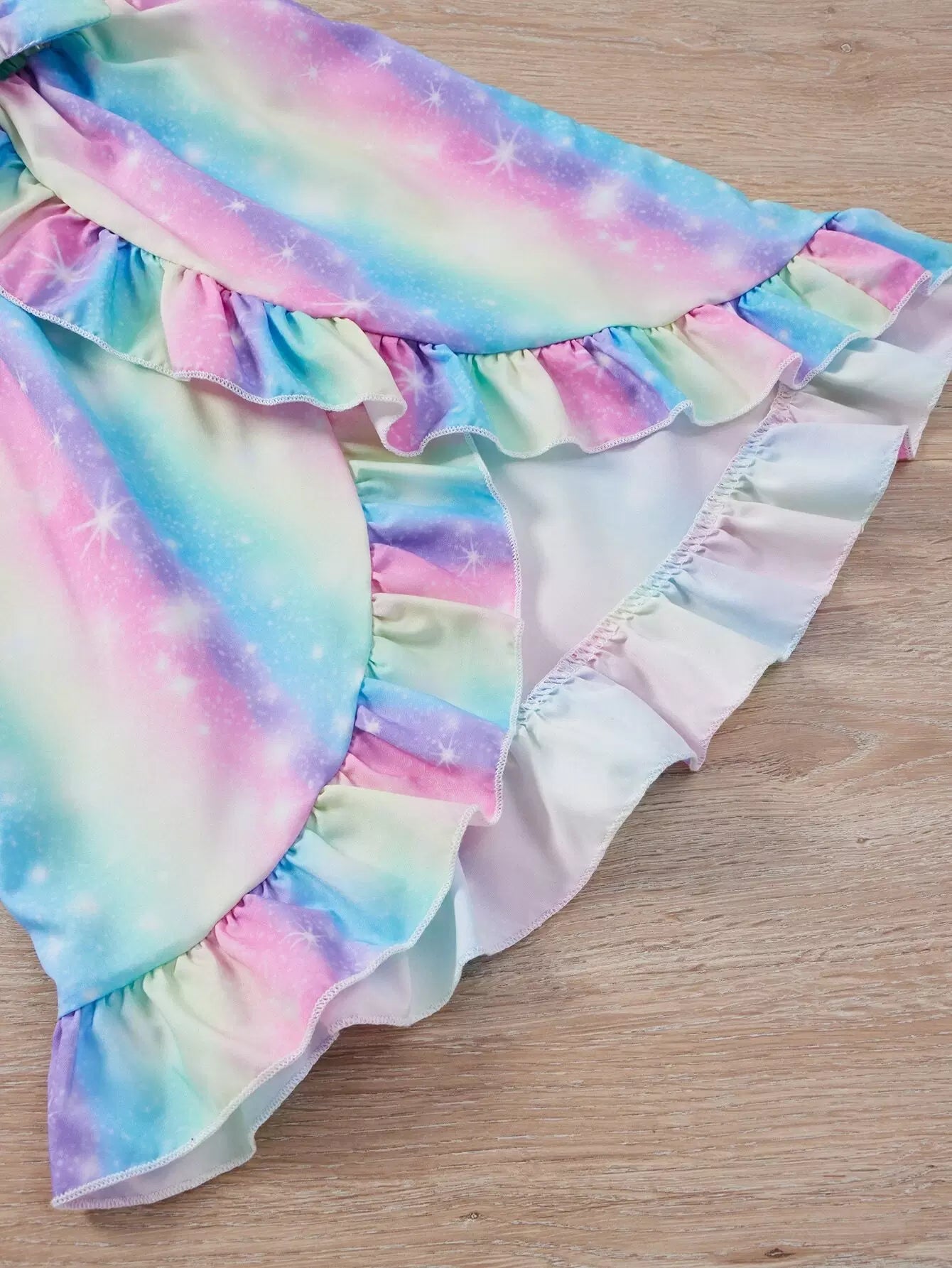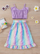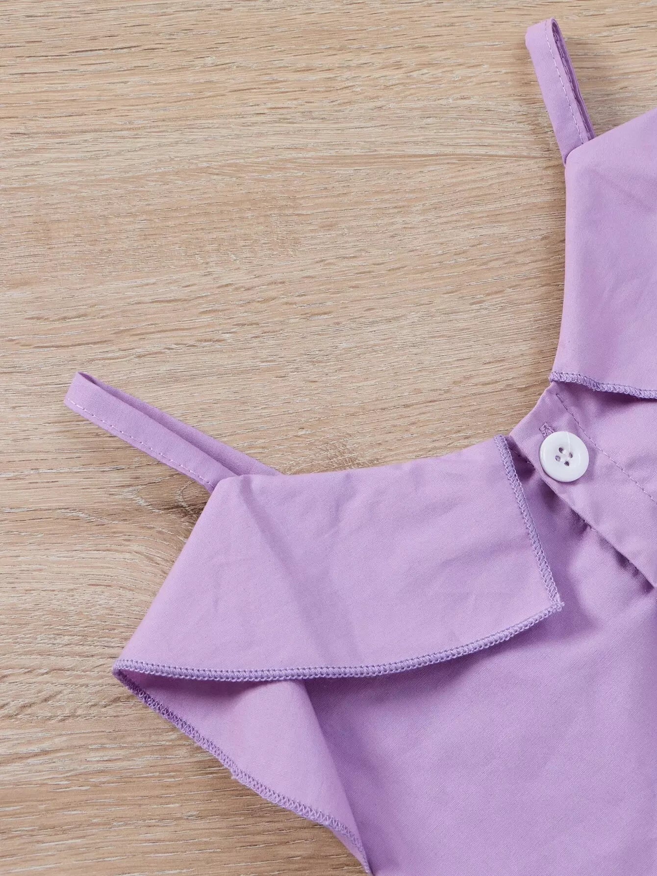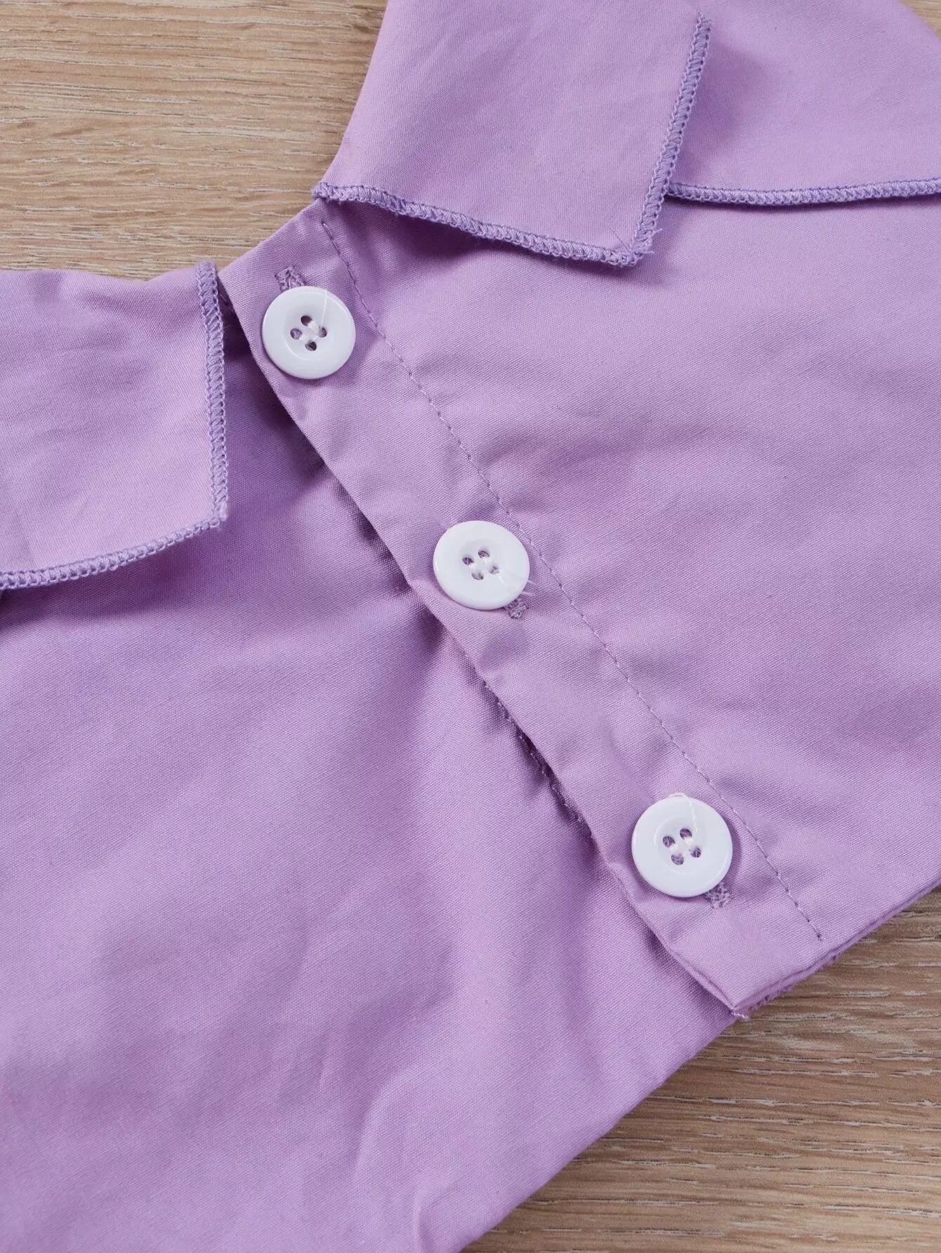 الأطفال - قميص علوي بأزرار أمامية للفتيات الصغيرات مع تنورة ملفوفة