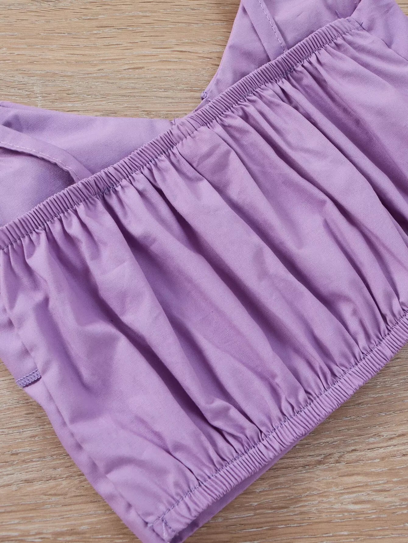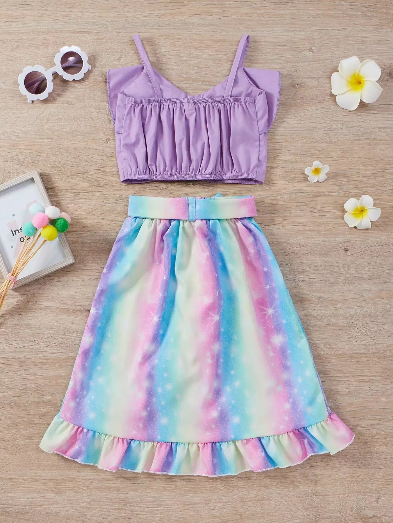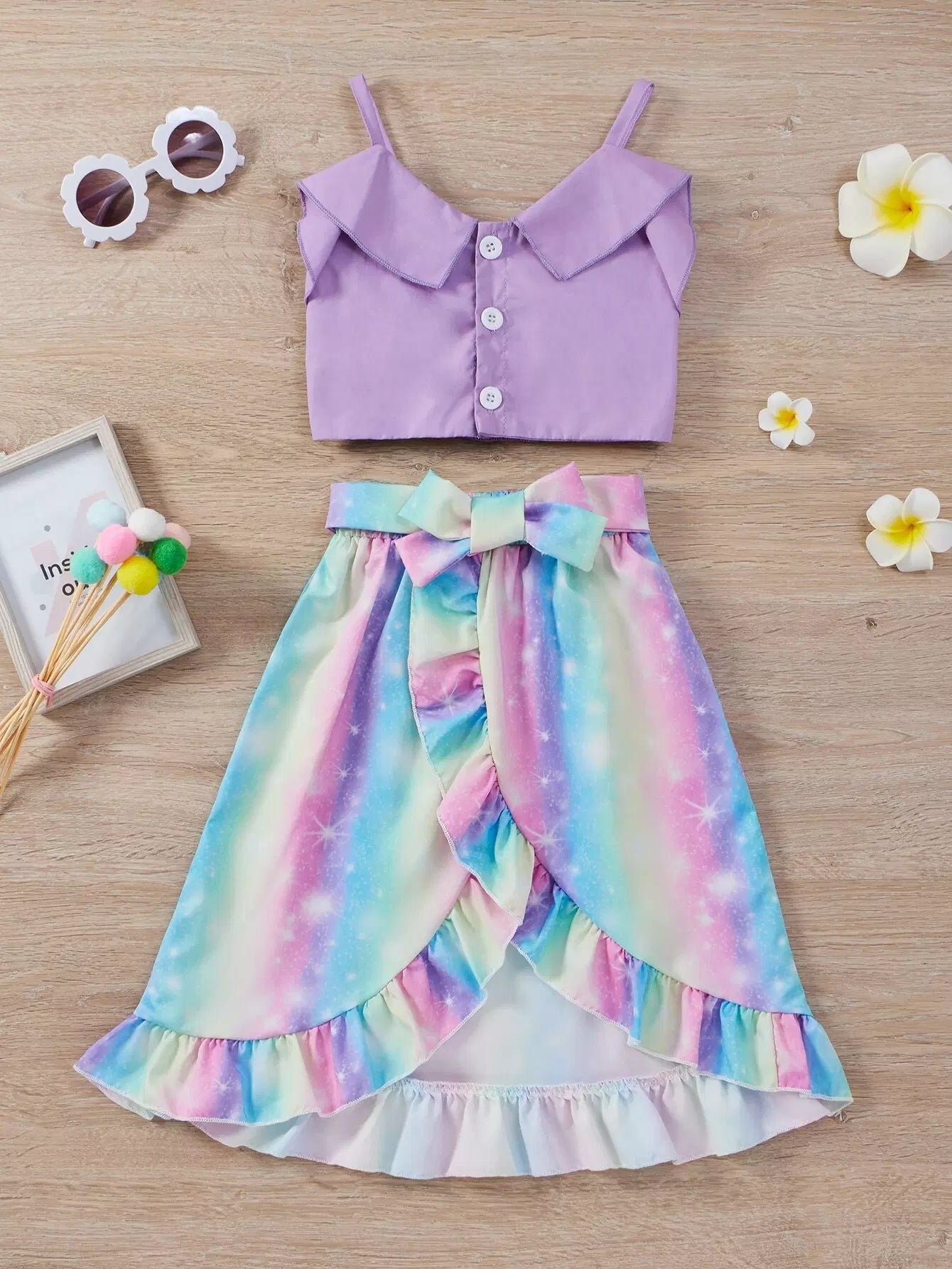 بلوزة كامى بأزرار أمامية للبنات الصغار مع تنورة ملفوفة