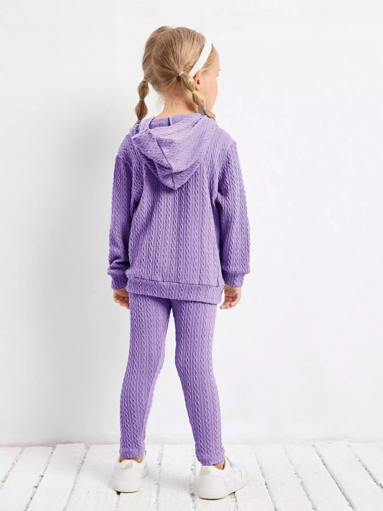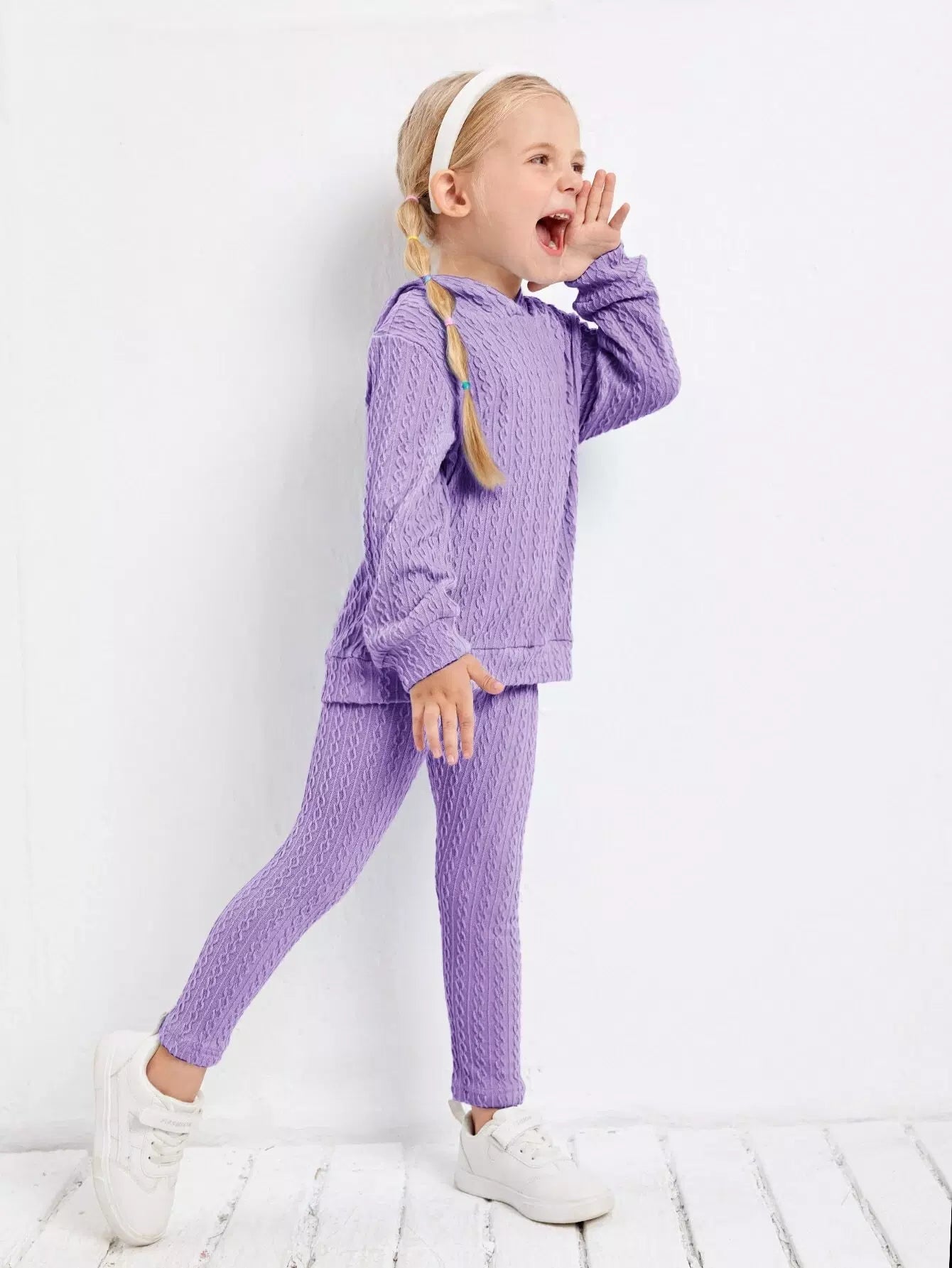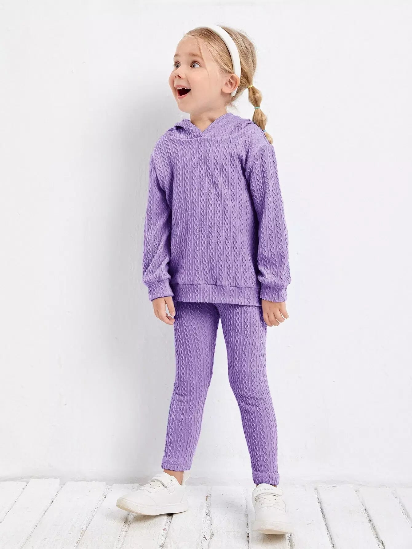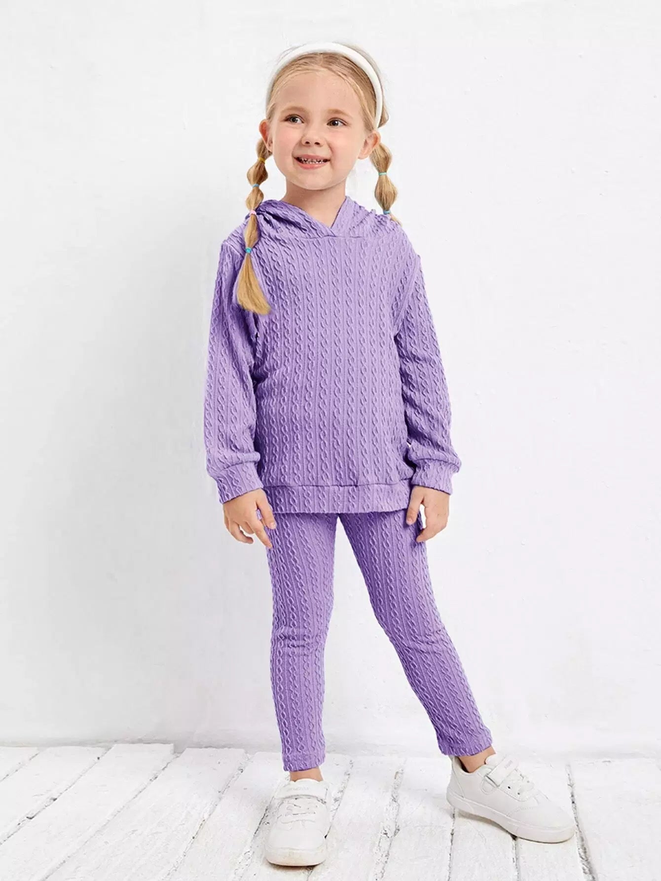 هودي وبنطال ضيق محبوك بكابل للبنات الصغار