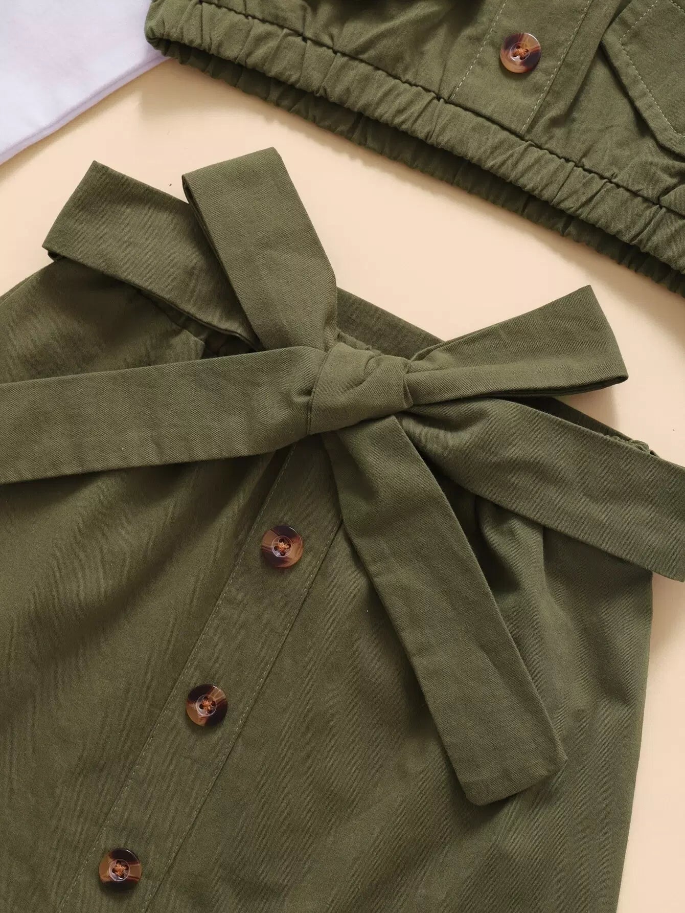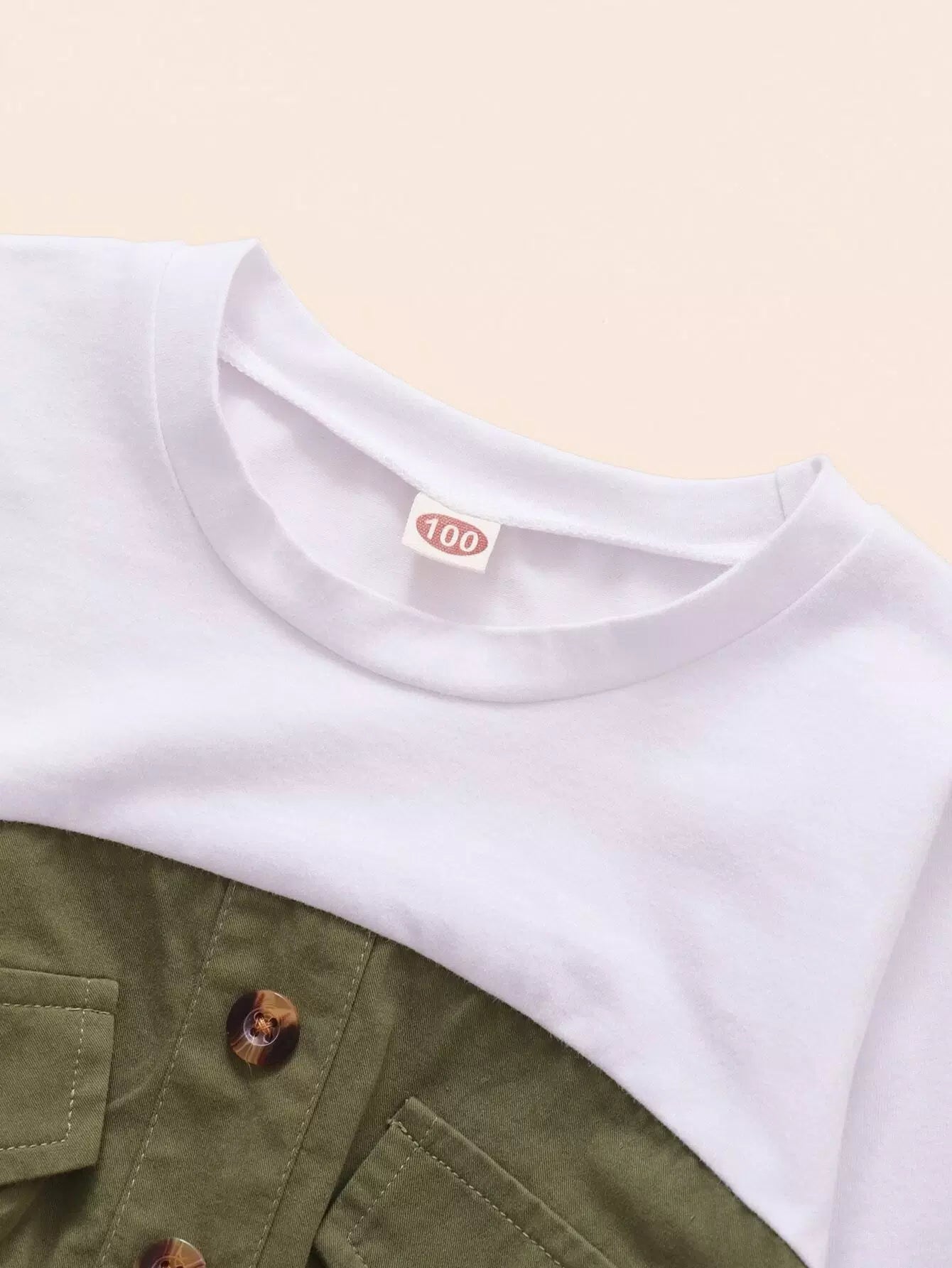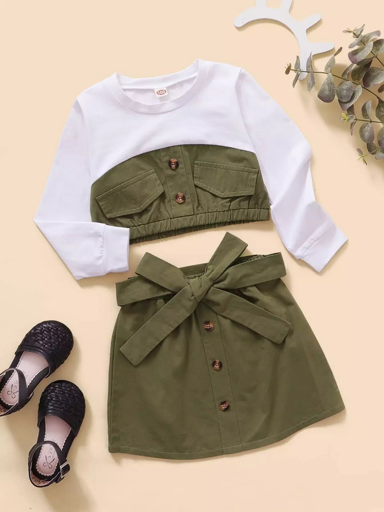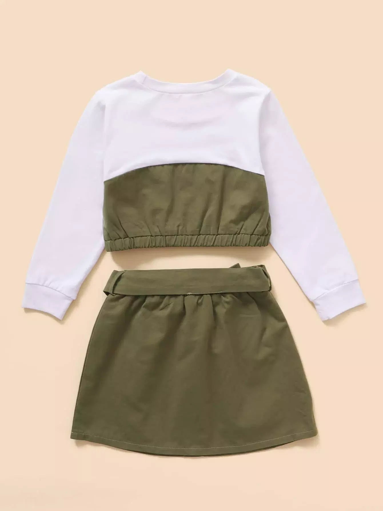 سويت شيرت وتنورة للفتيات الصغيرات بلوحة متباينة بدون حزام