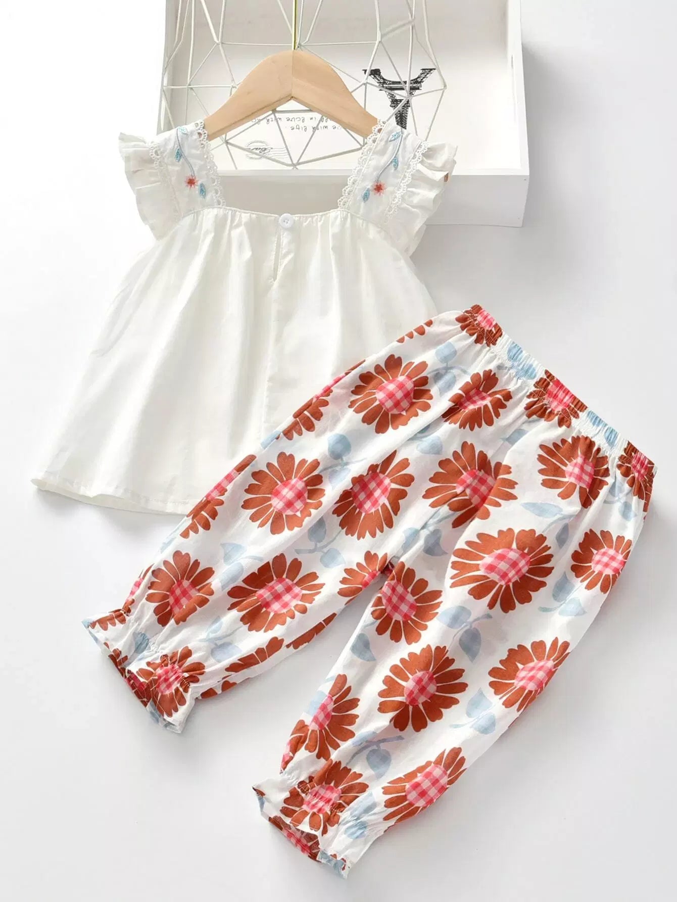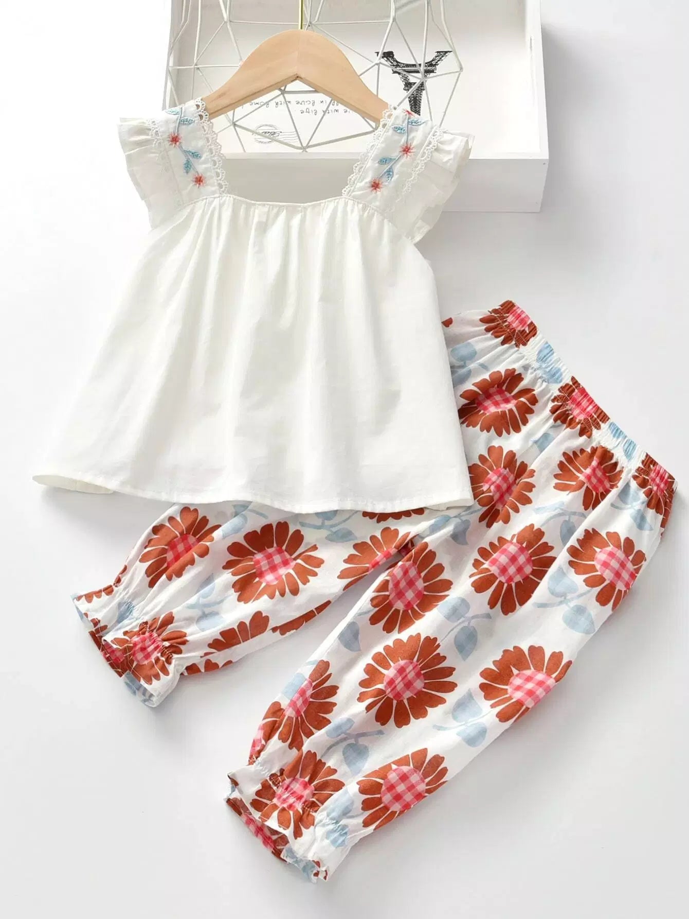 بلوزة مطرزة بتطريزات البنات الصغار مع بنطلون مزين بالزهور
