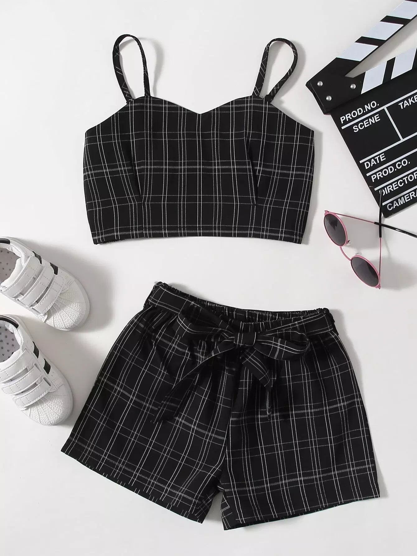 بلوزة وسروال قصير للفتيات الصغيرات بدون حزام