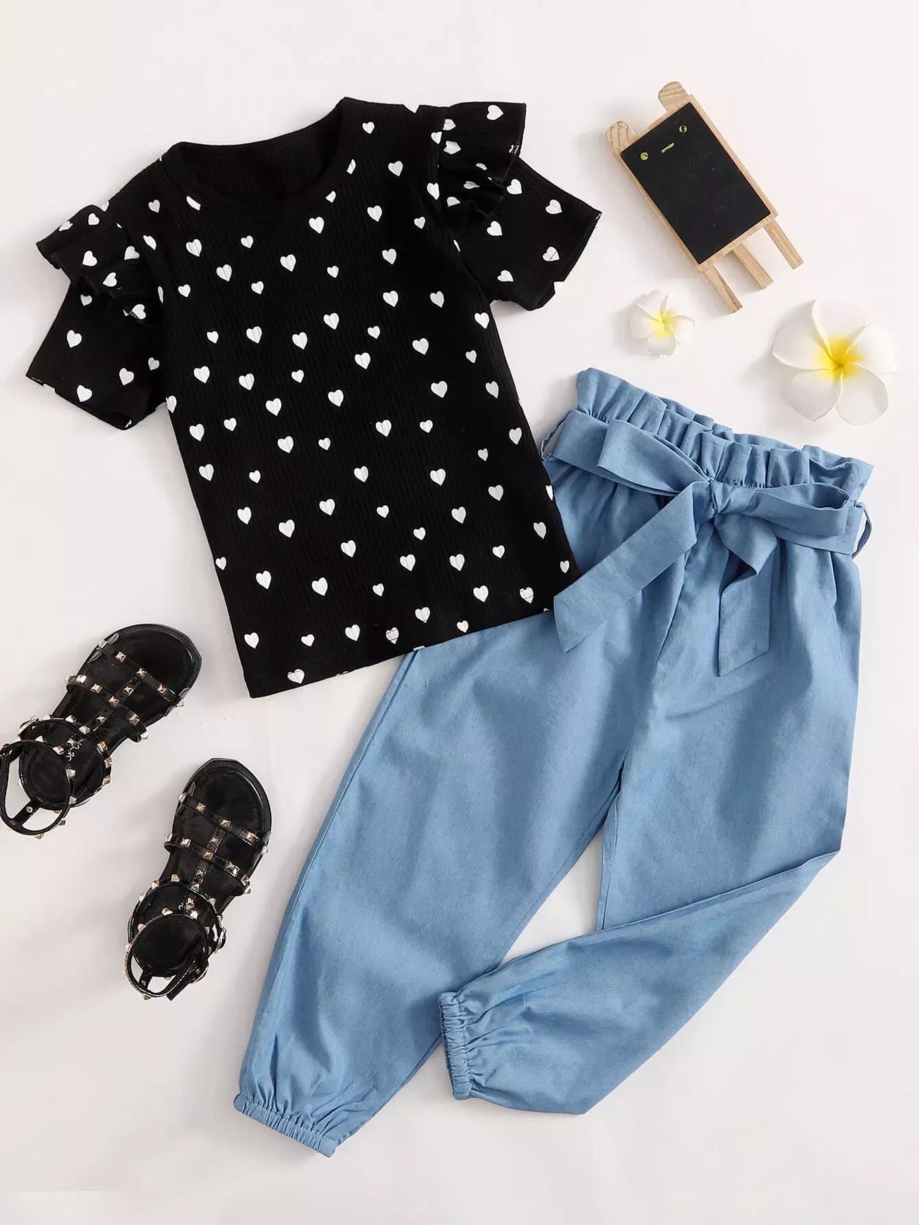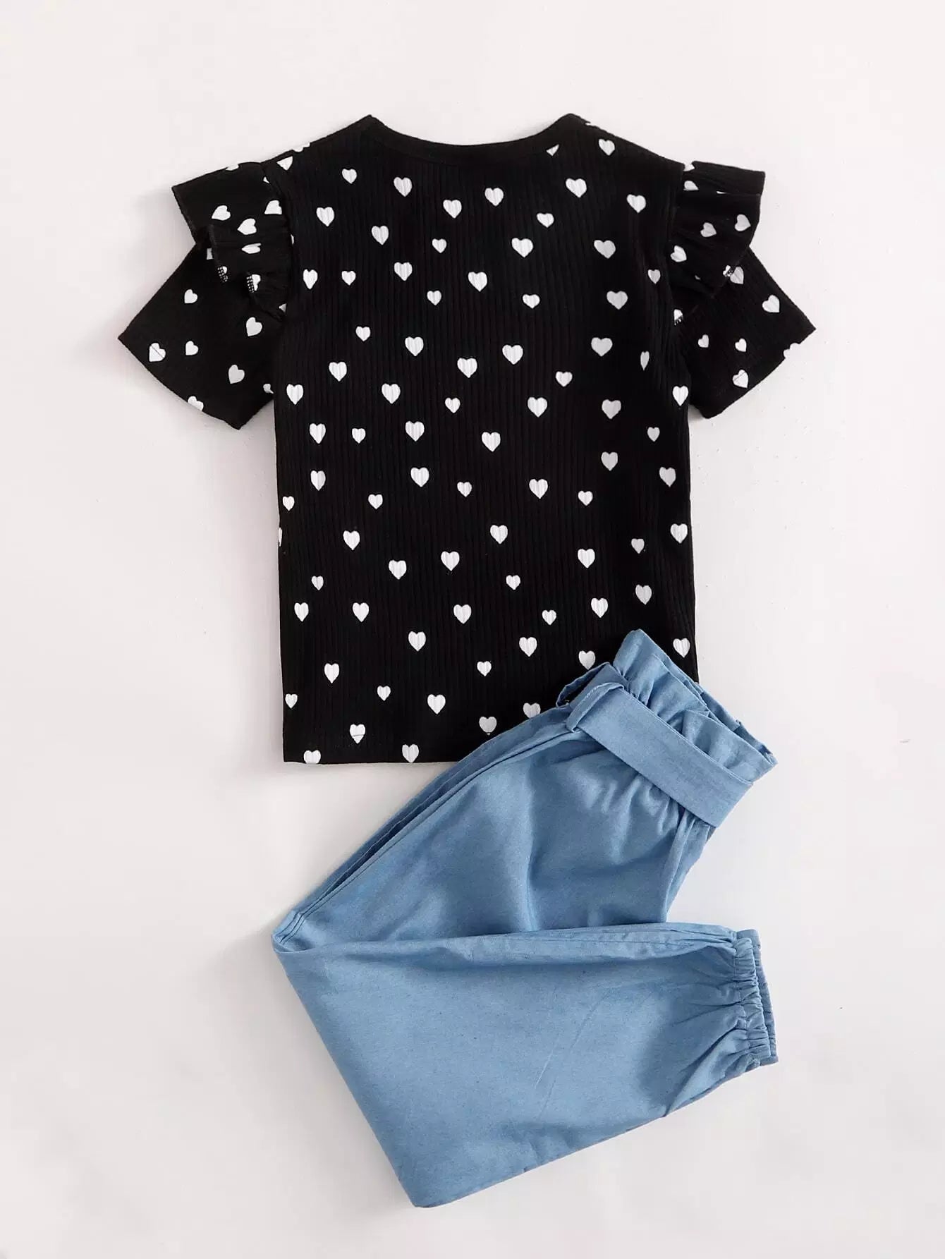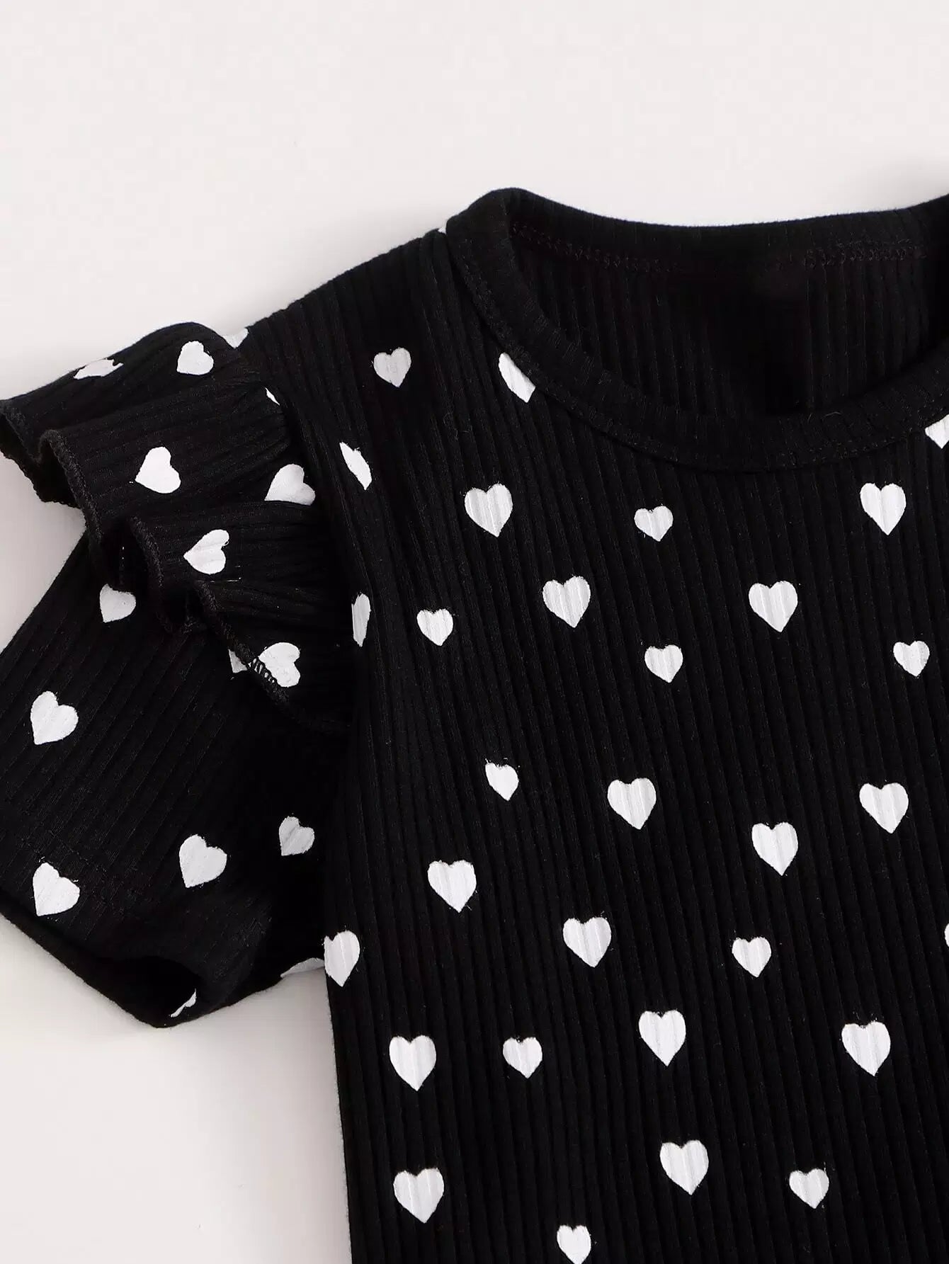 تي شيرت وسروال بطبعة قلب للفتيات الصغيرات بدون حزام