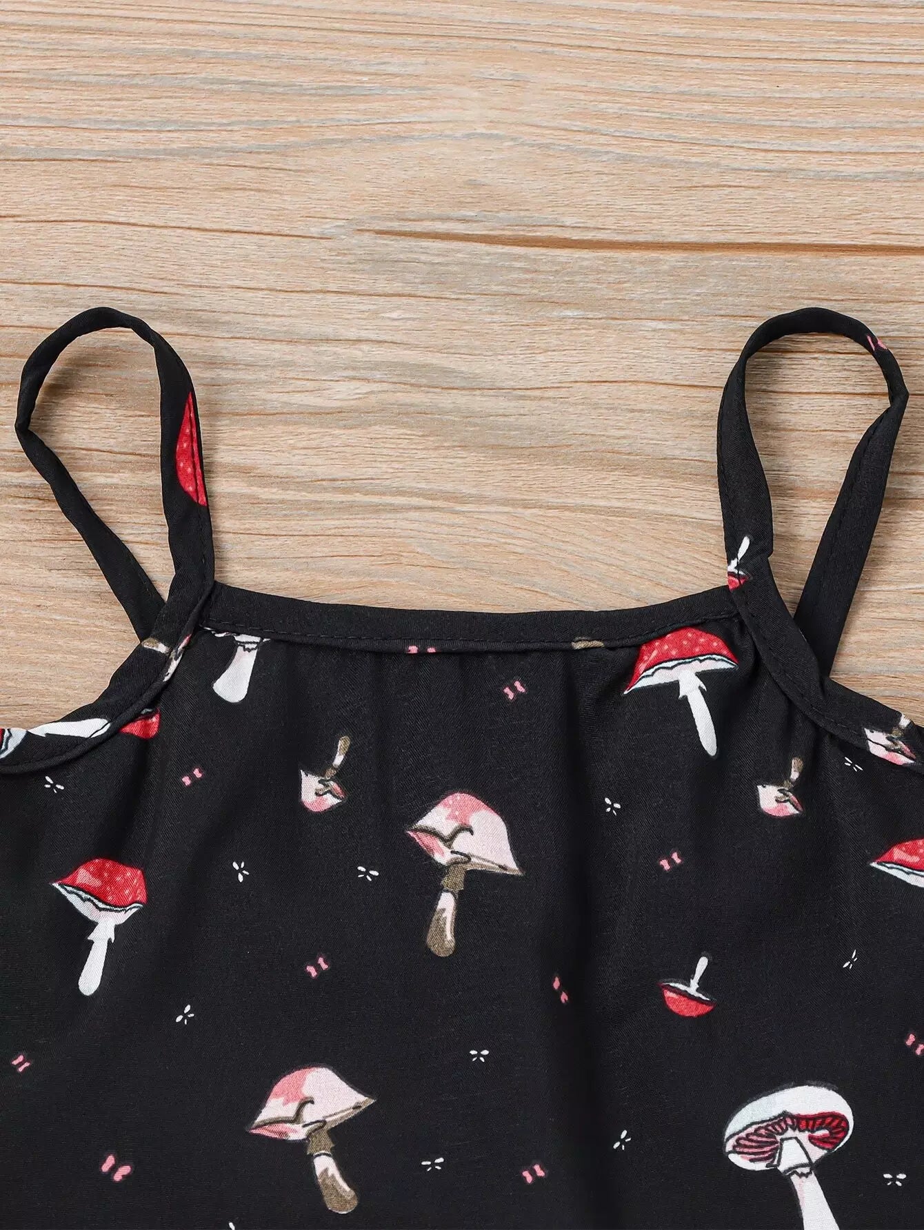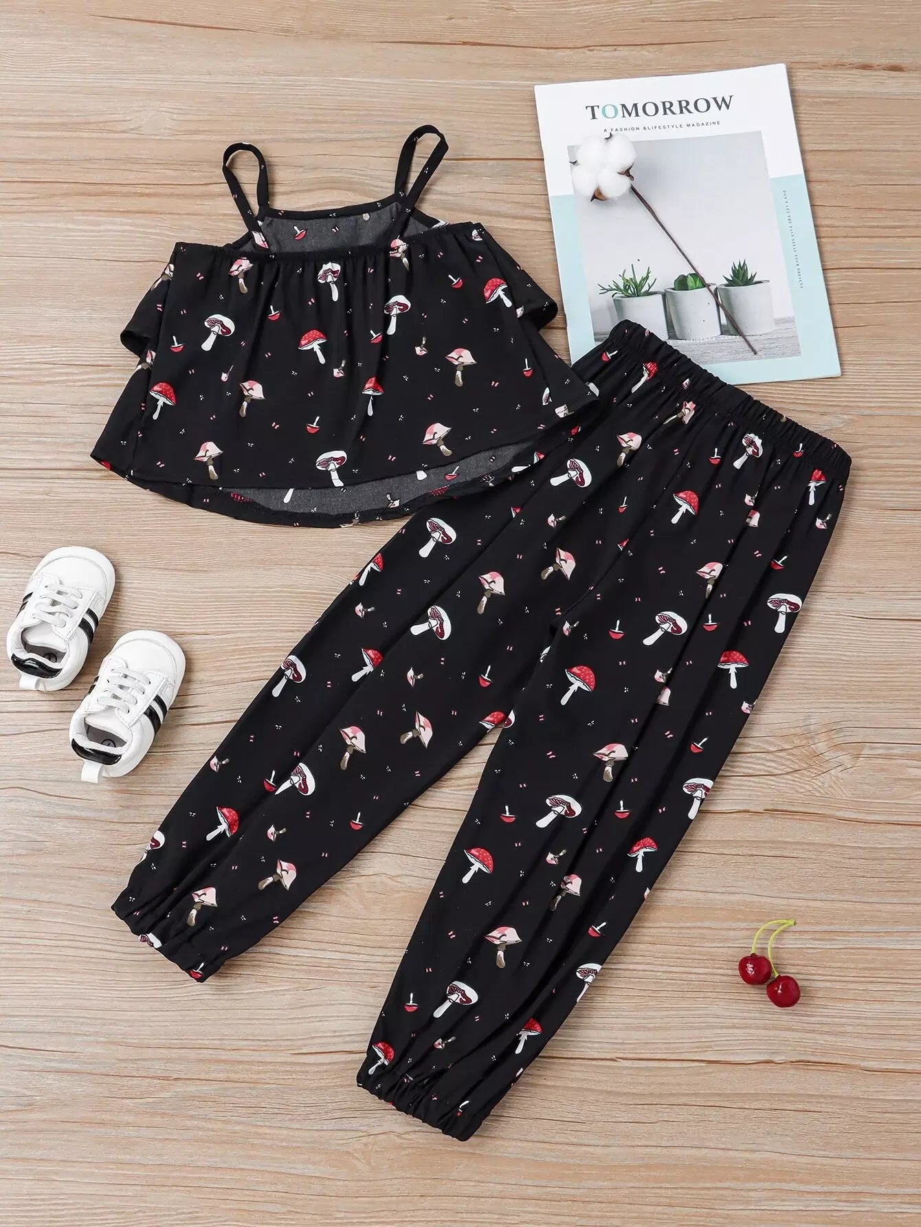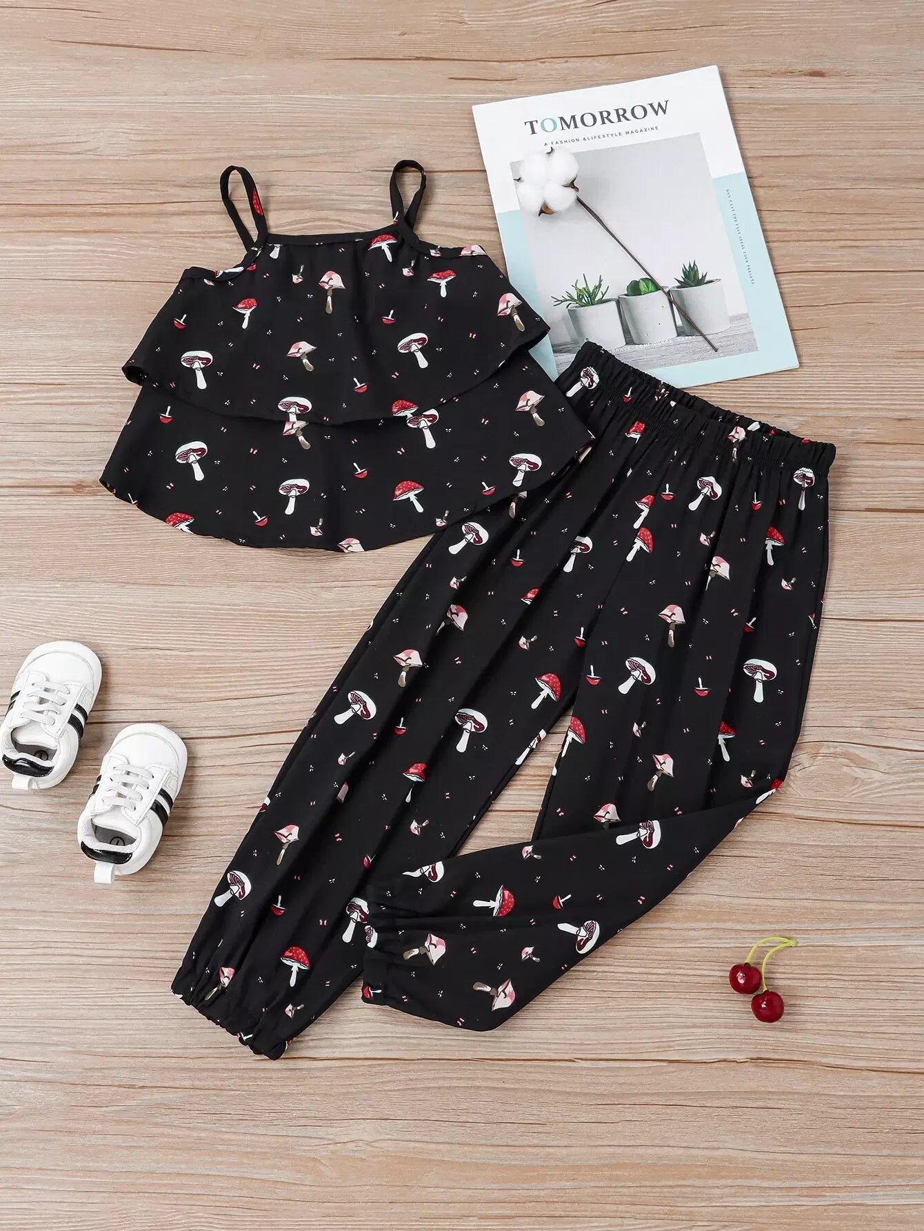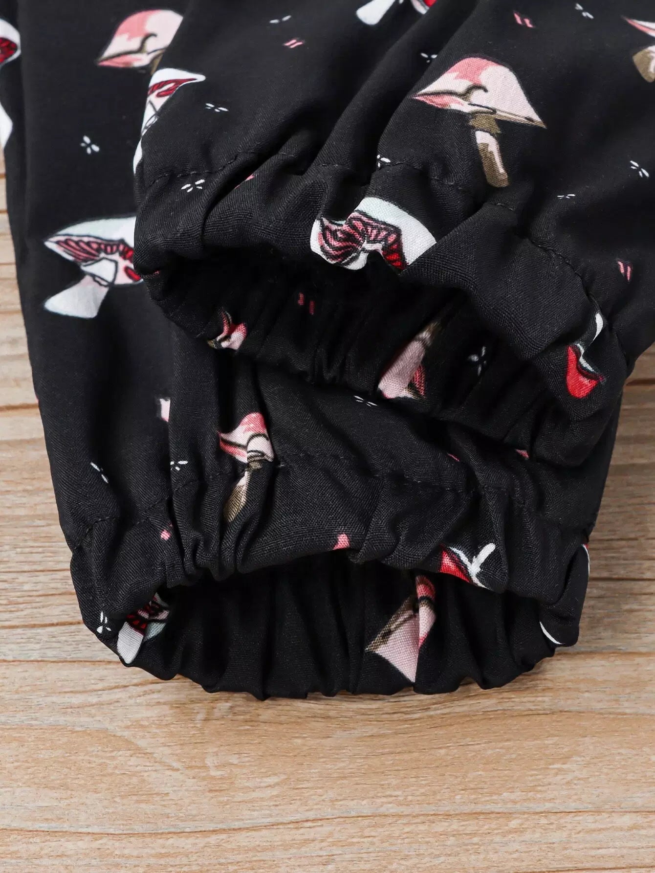 بلوزة وبنطال كامى بطبعة فطر للبنات الصغار