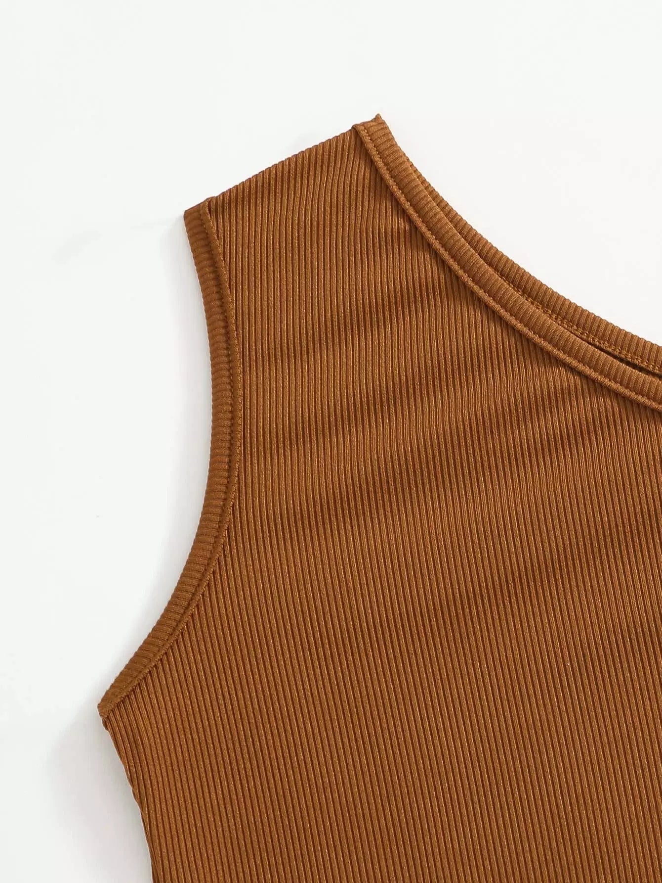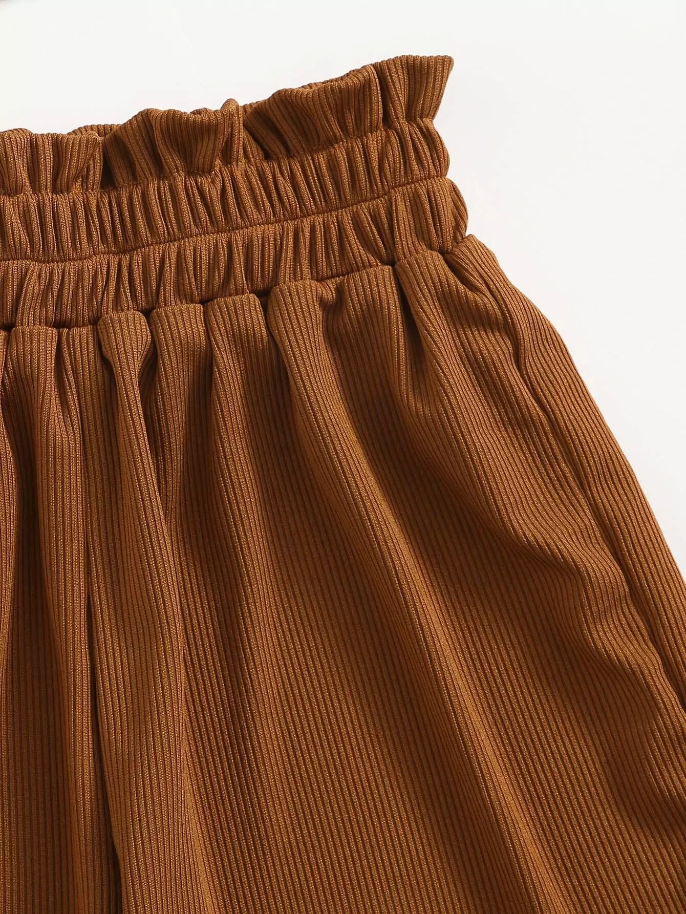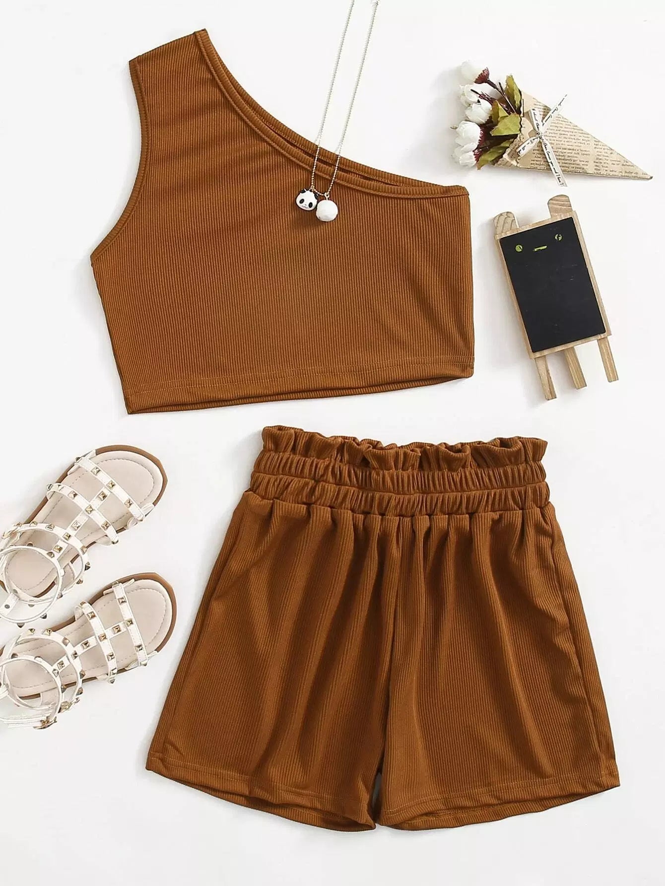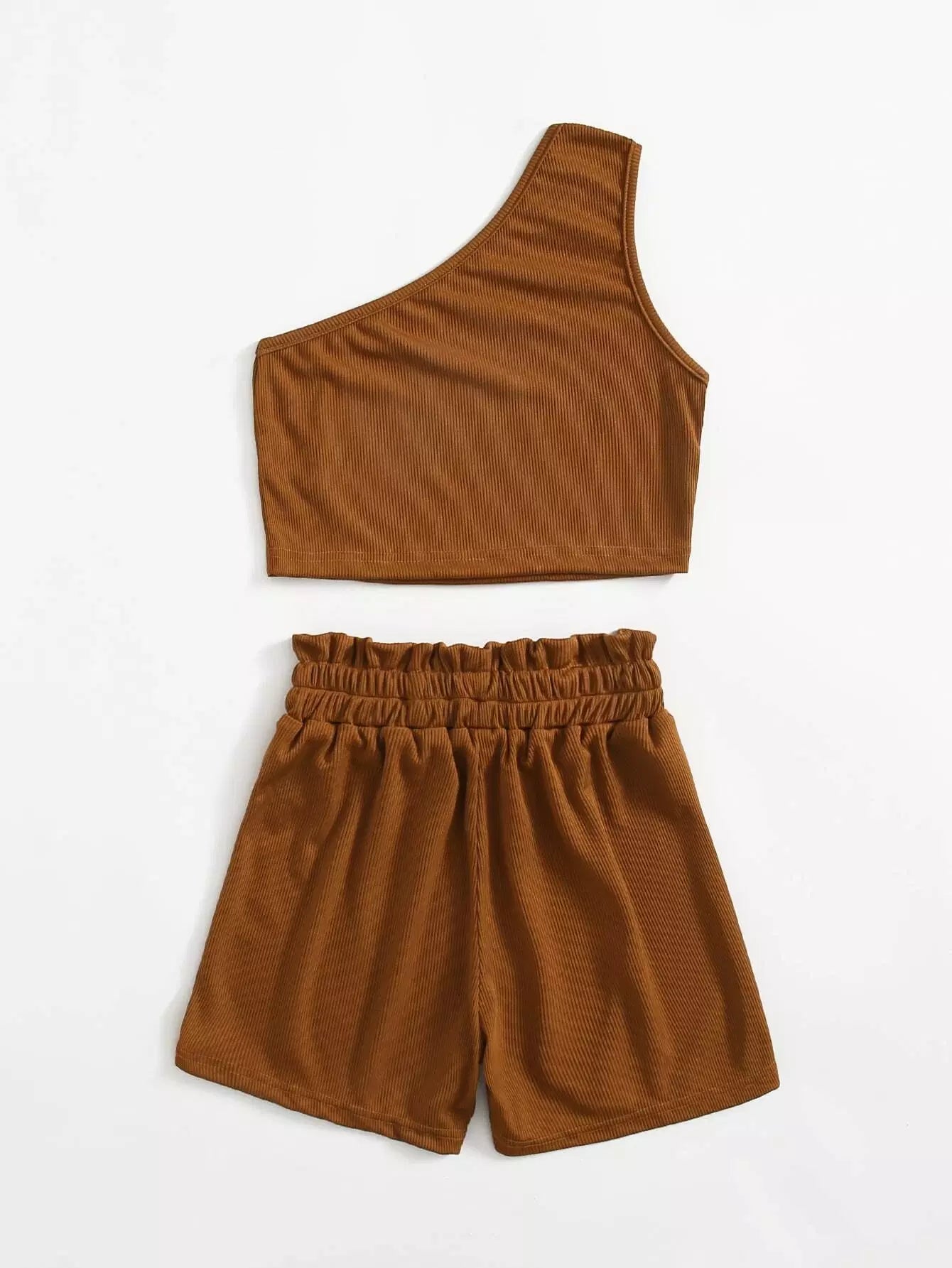 بلوزة بكتف واحد للبنات الصغيرات وشورت بخصر كيس ورقي