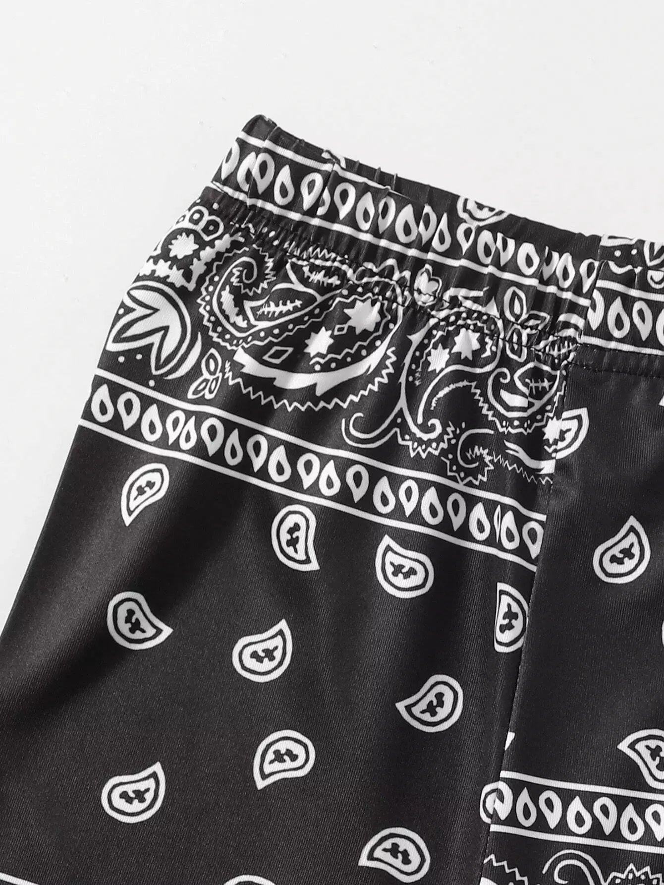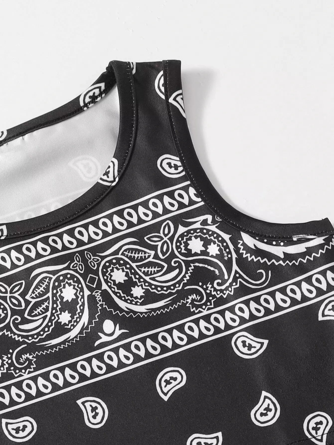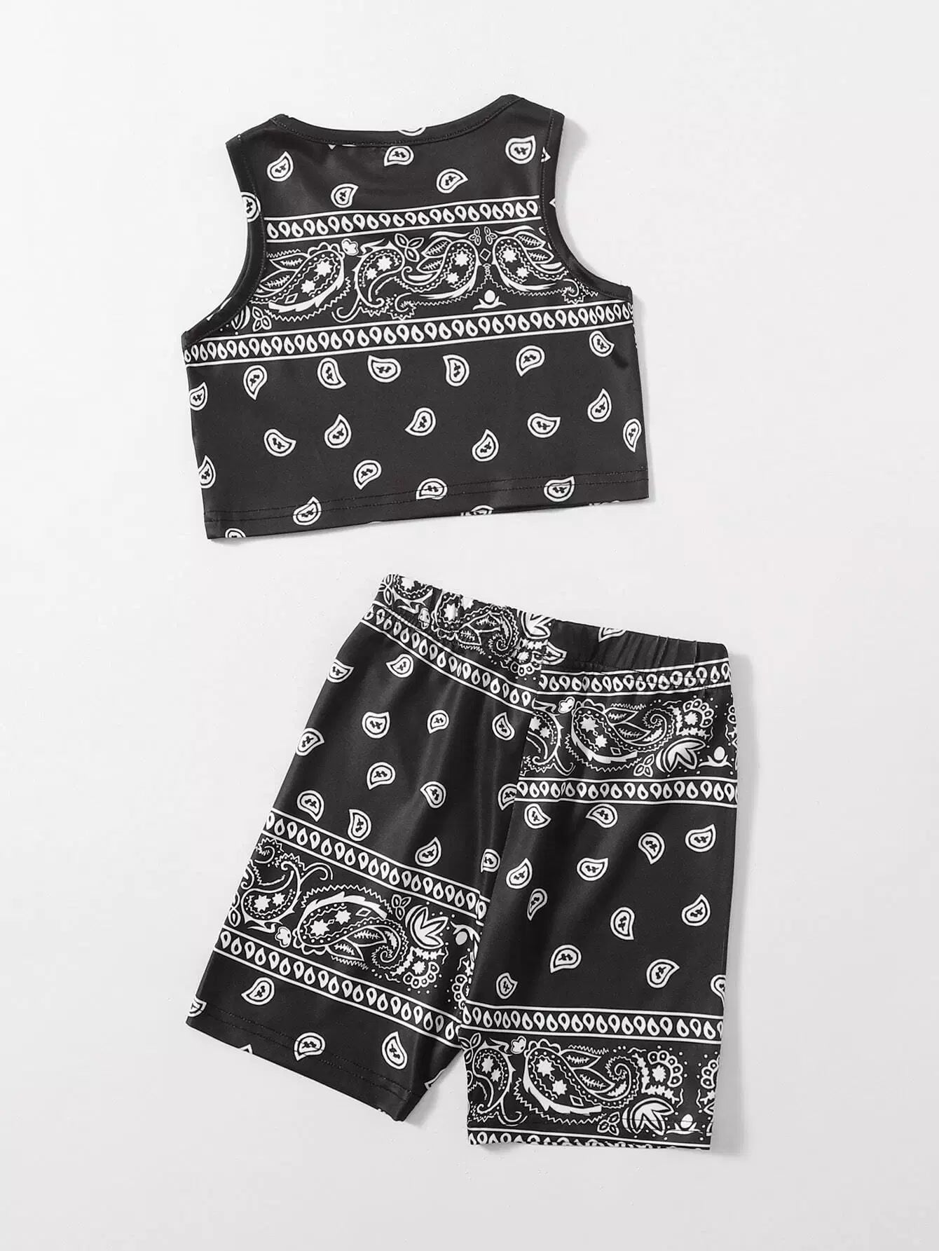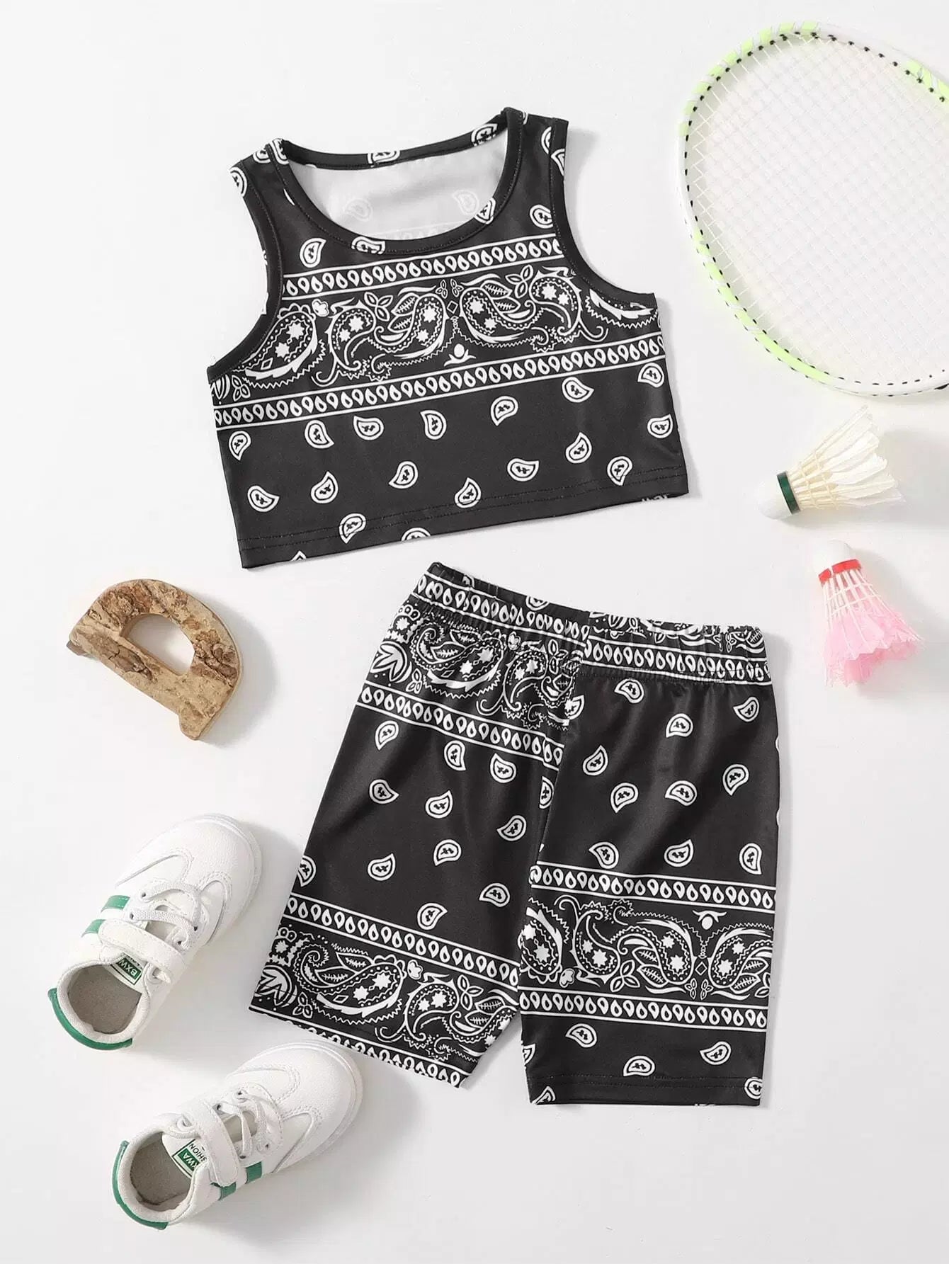 قميص بدون أكمام وشورت بدون أكمام بطبعة بيزلي للبنات الصغار