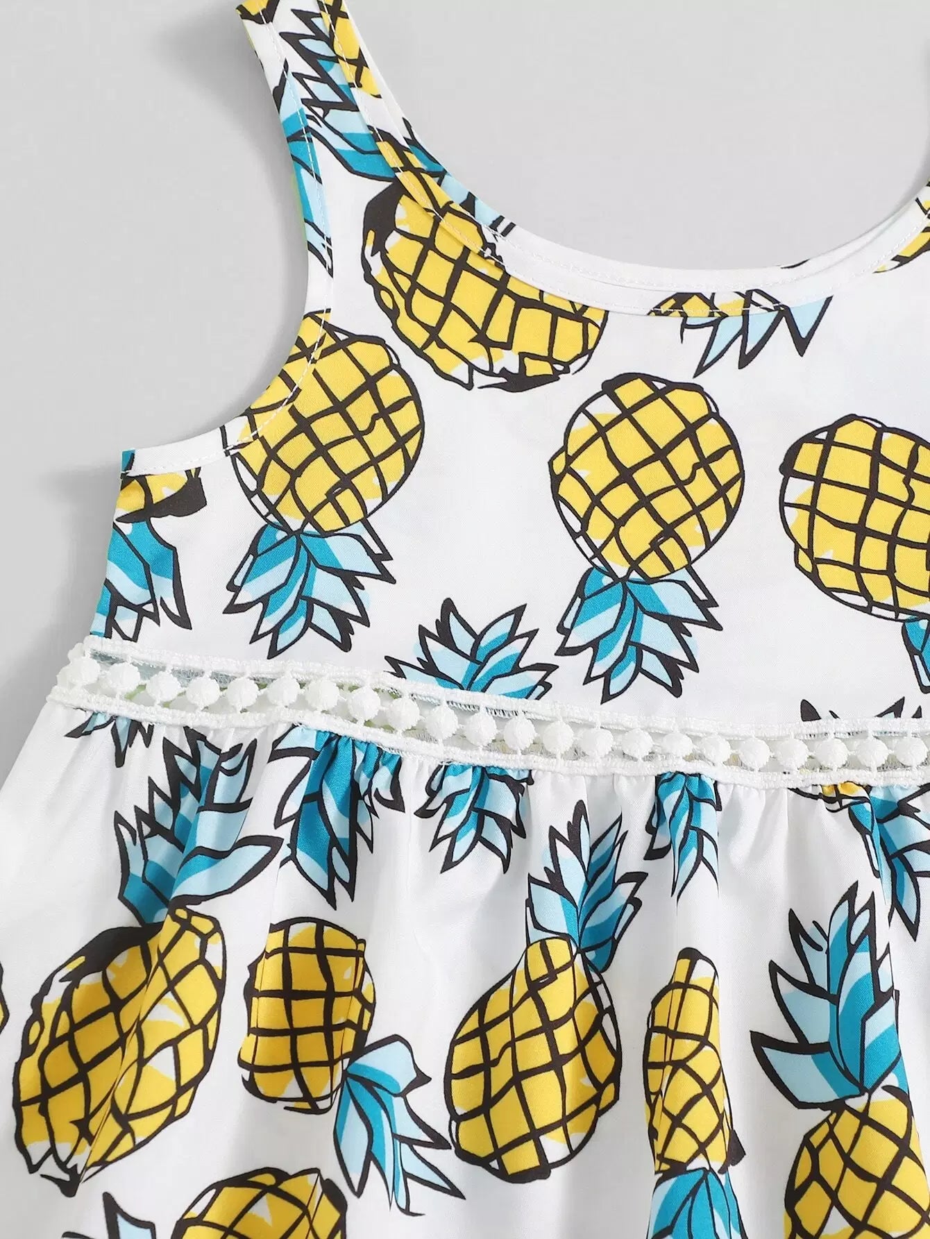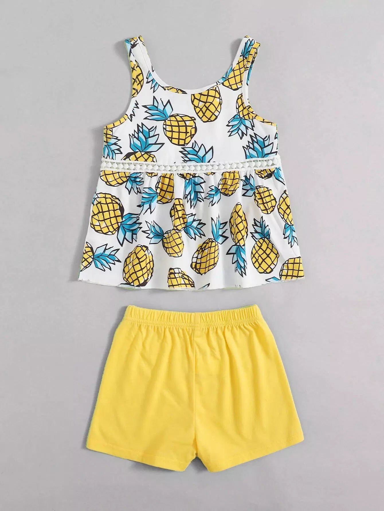 الأطفال - طقم شورت وقميص بطبعة أناناس للفتيات الصغيرات