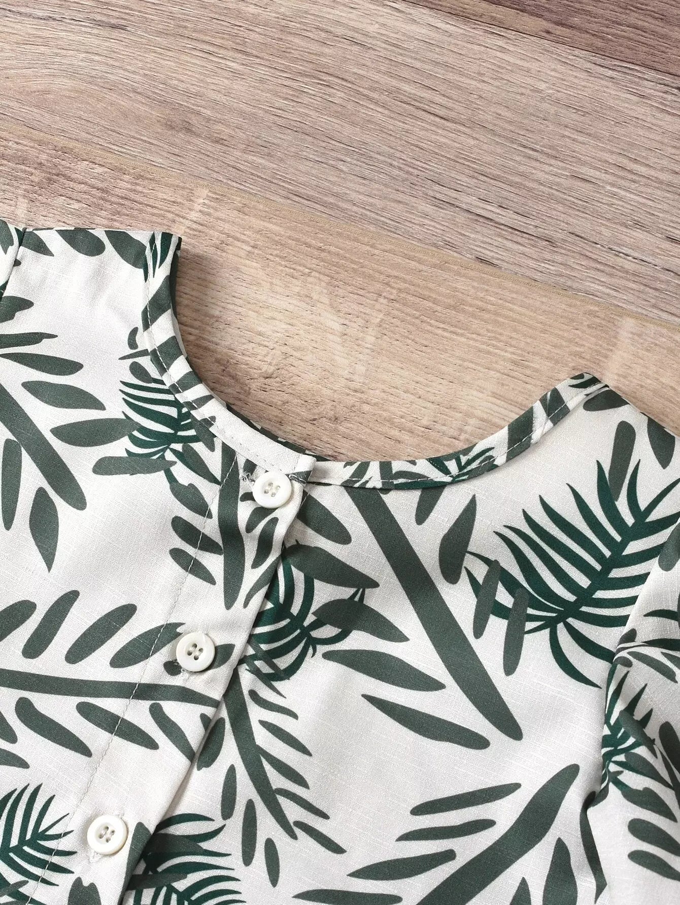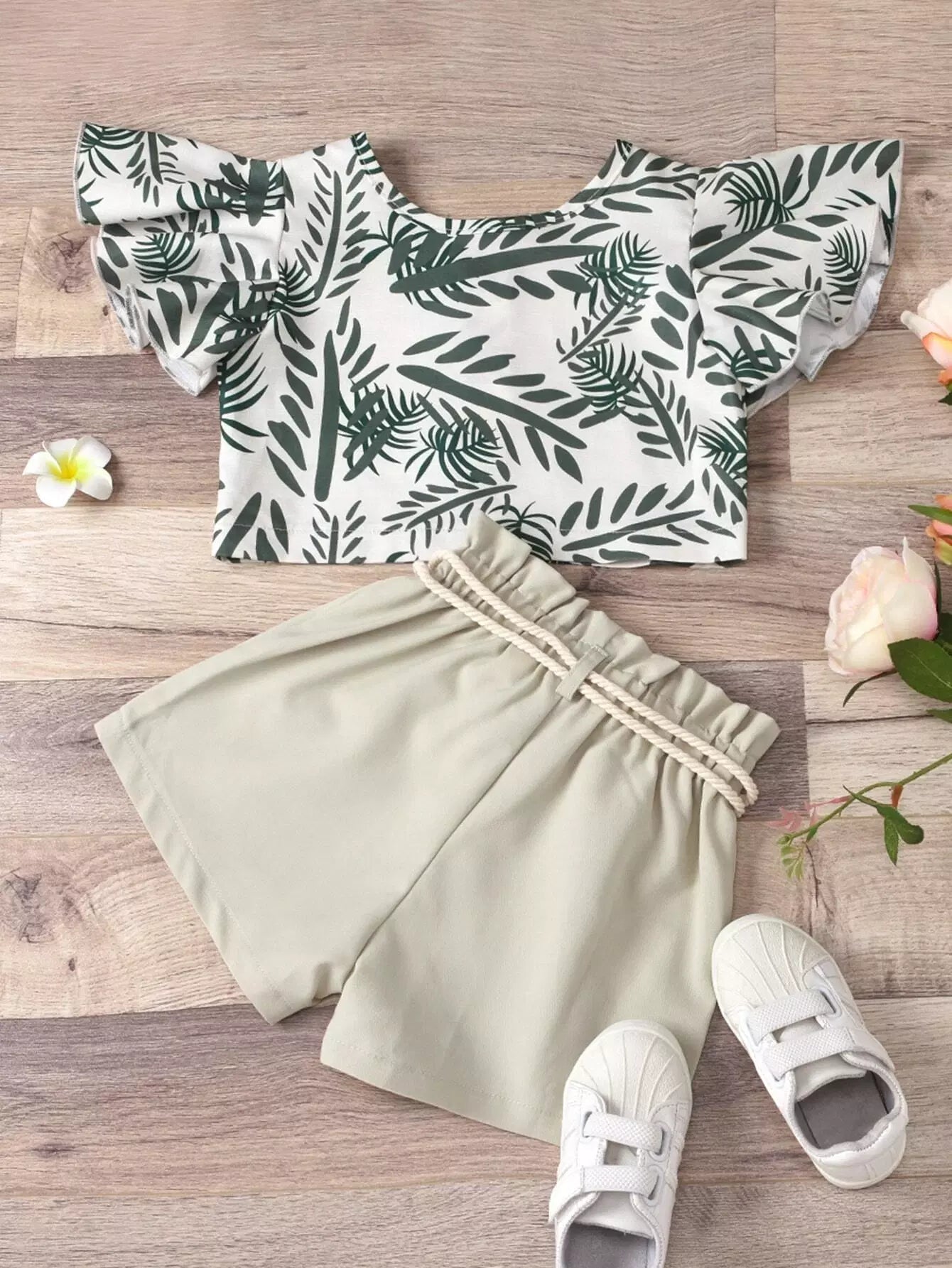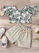 شورت علوي مطبوع عليه نباتات للفتيات الصغيرات بدون حزام