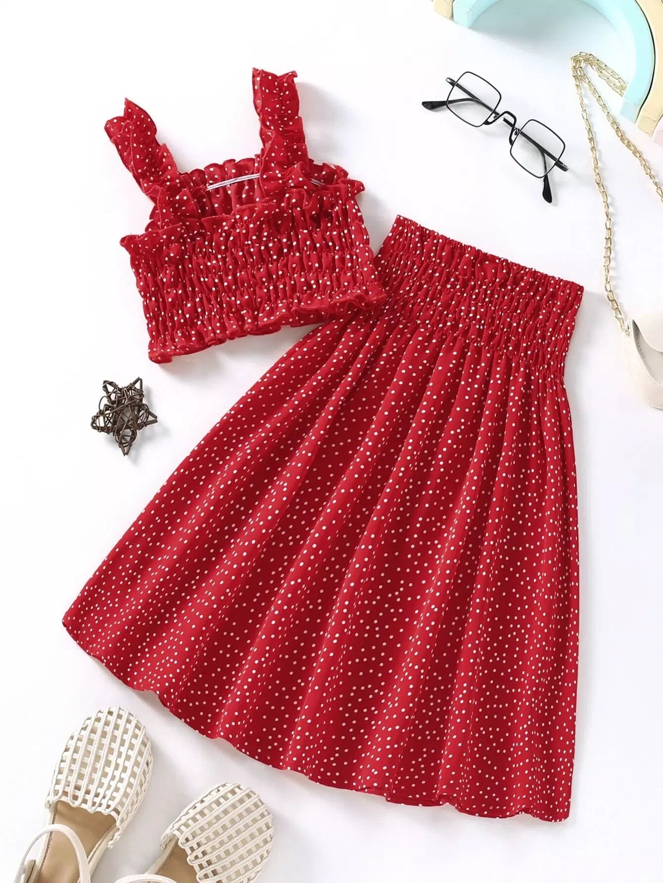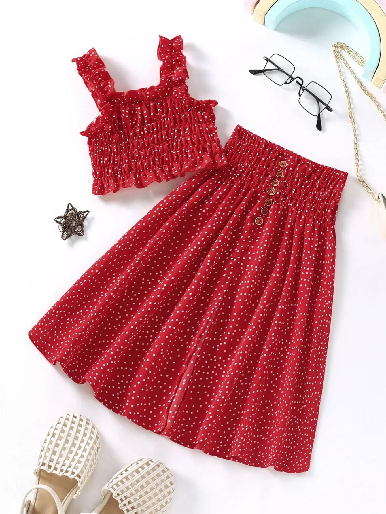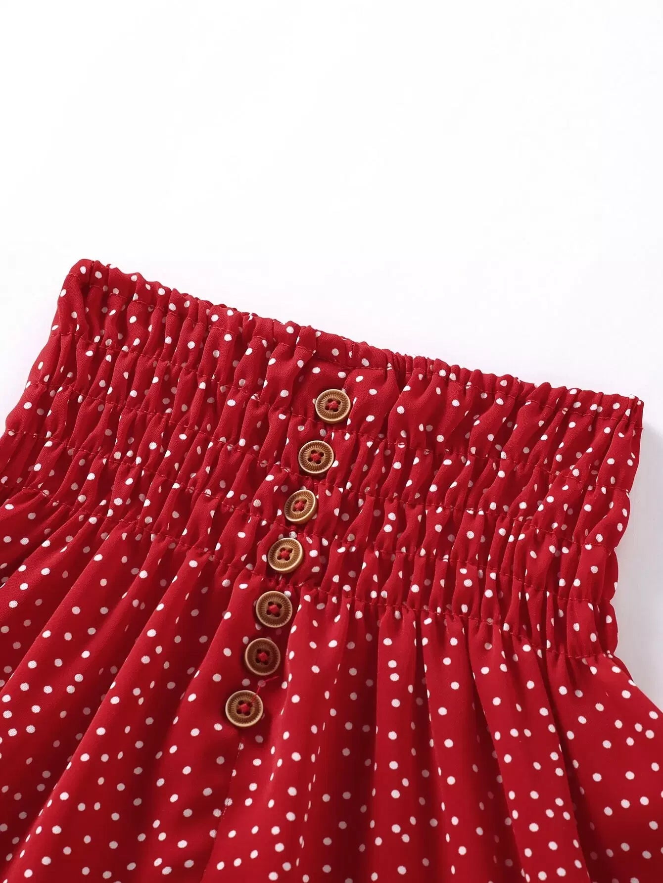 قميص قصير بناتي صغيرات منقّط بنقشة بولكا دوت بنطلون قصير وتنورة