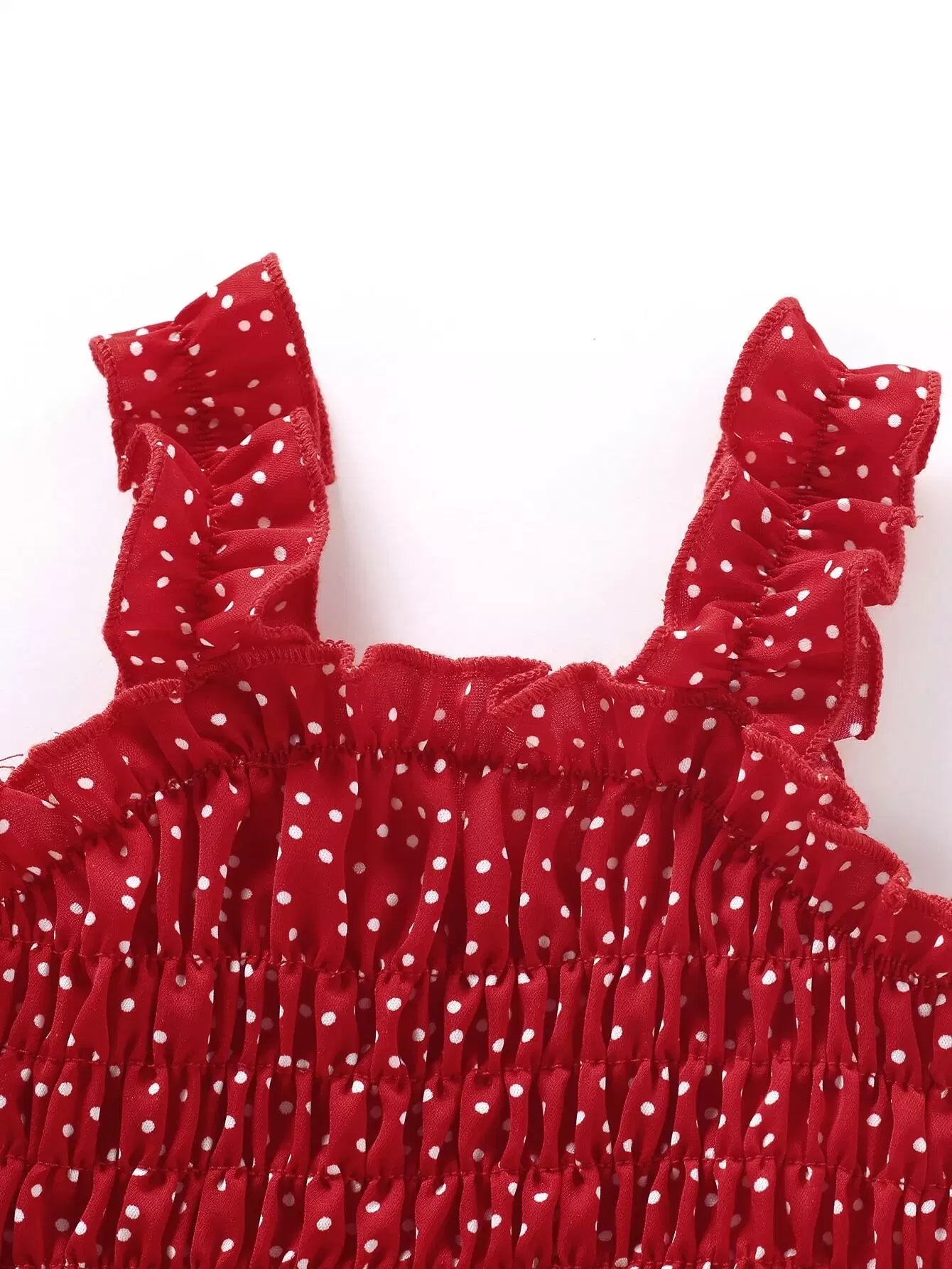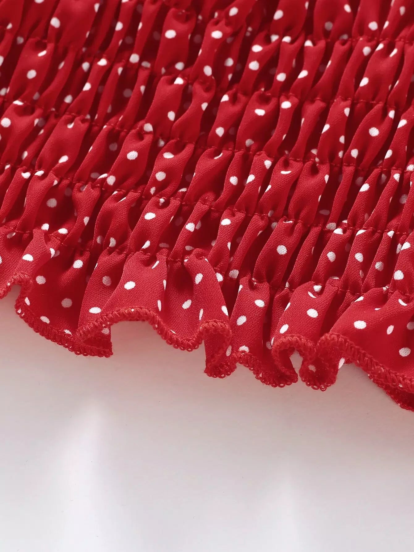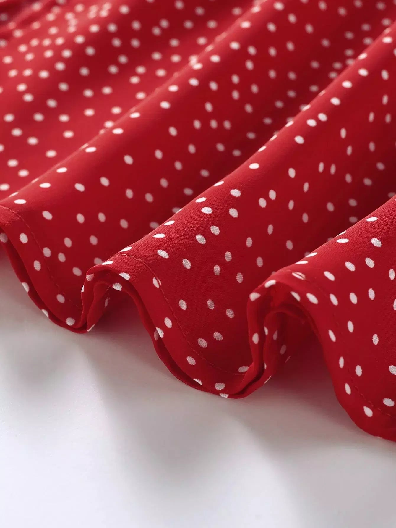 قميص قصير بناتي صغيرات منقّط بنقشة بولكا دوت بنطلون قصير وتنورة
