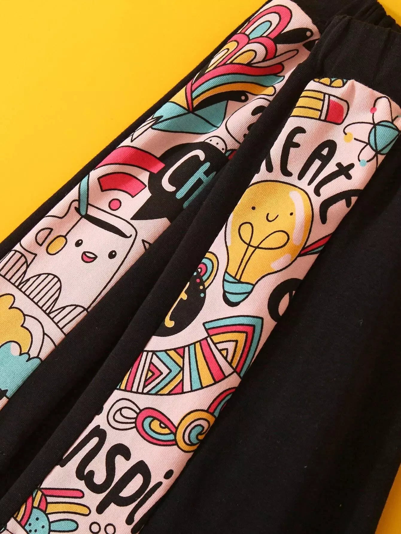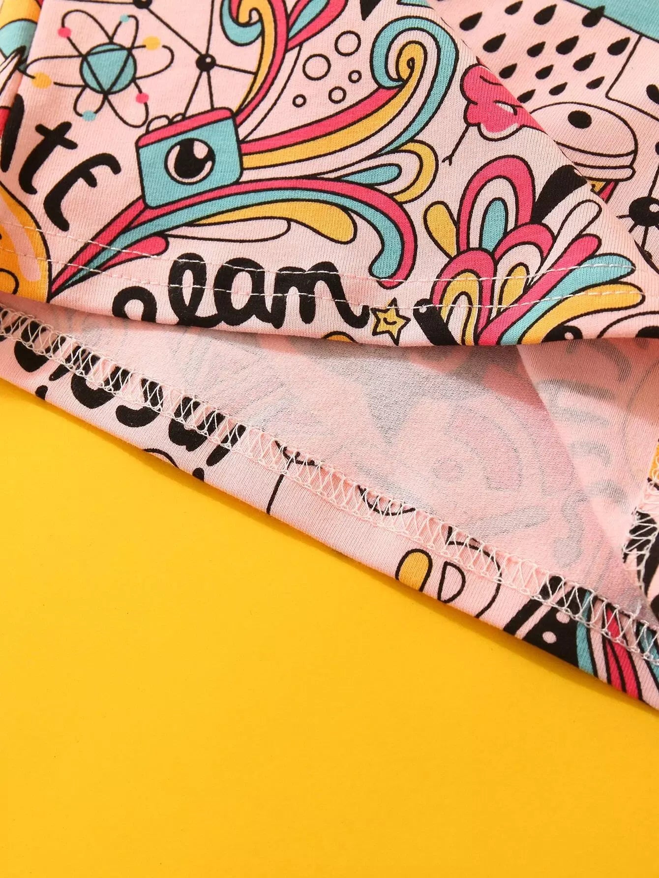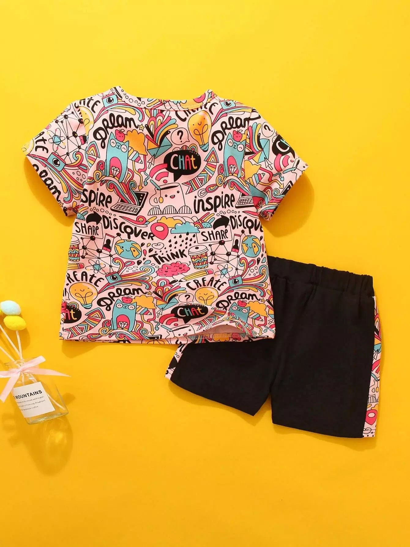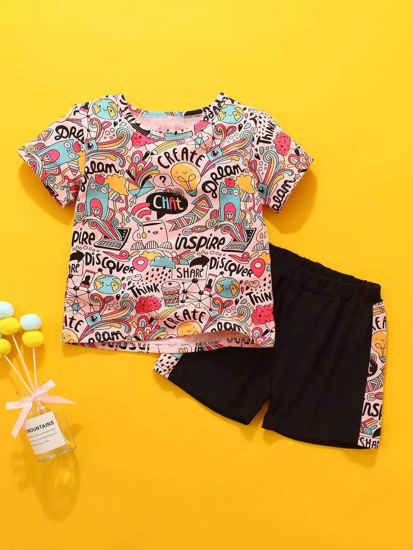 تي شيرت بطبعة فن البوب للفتيات الصغيرات مع شورت تراك