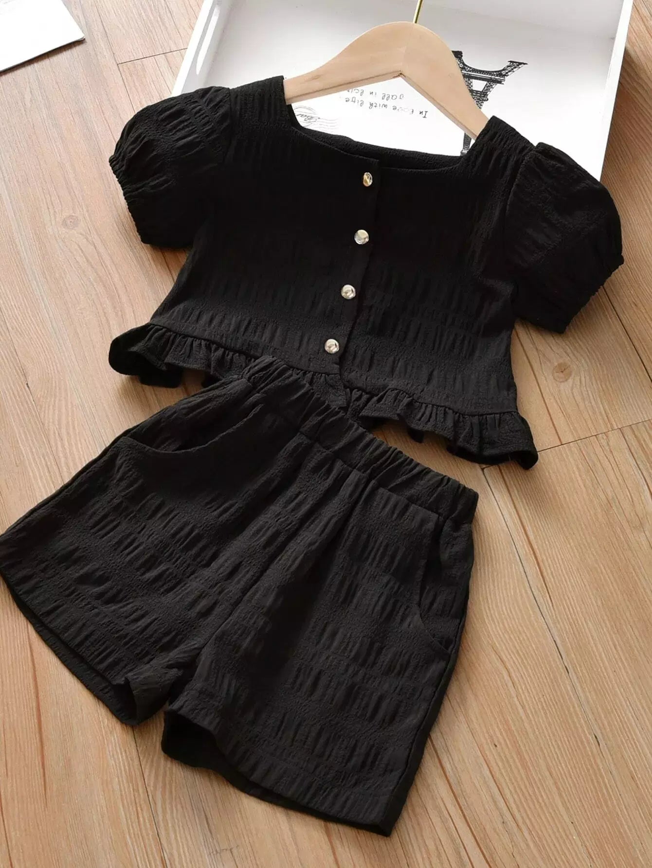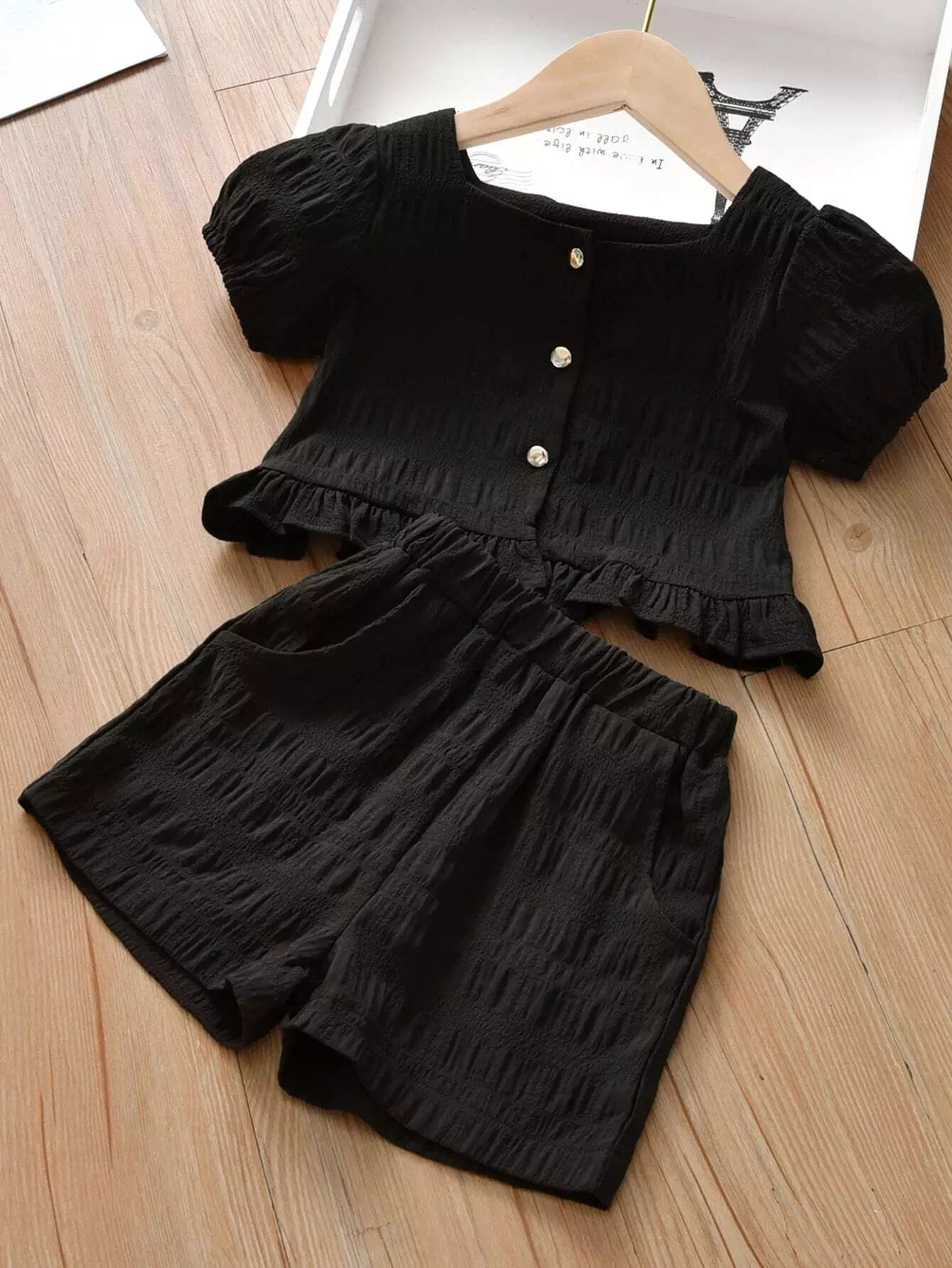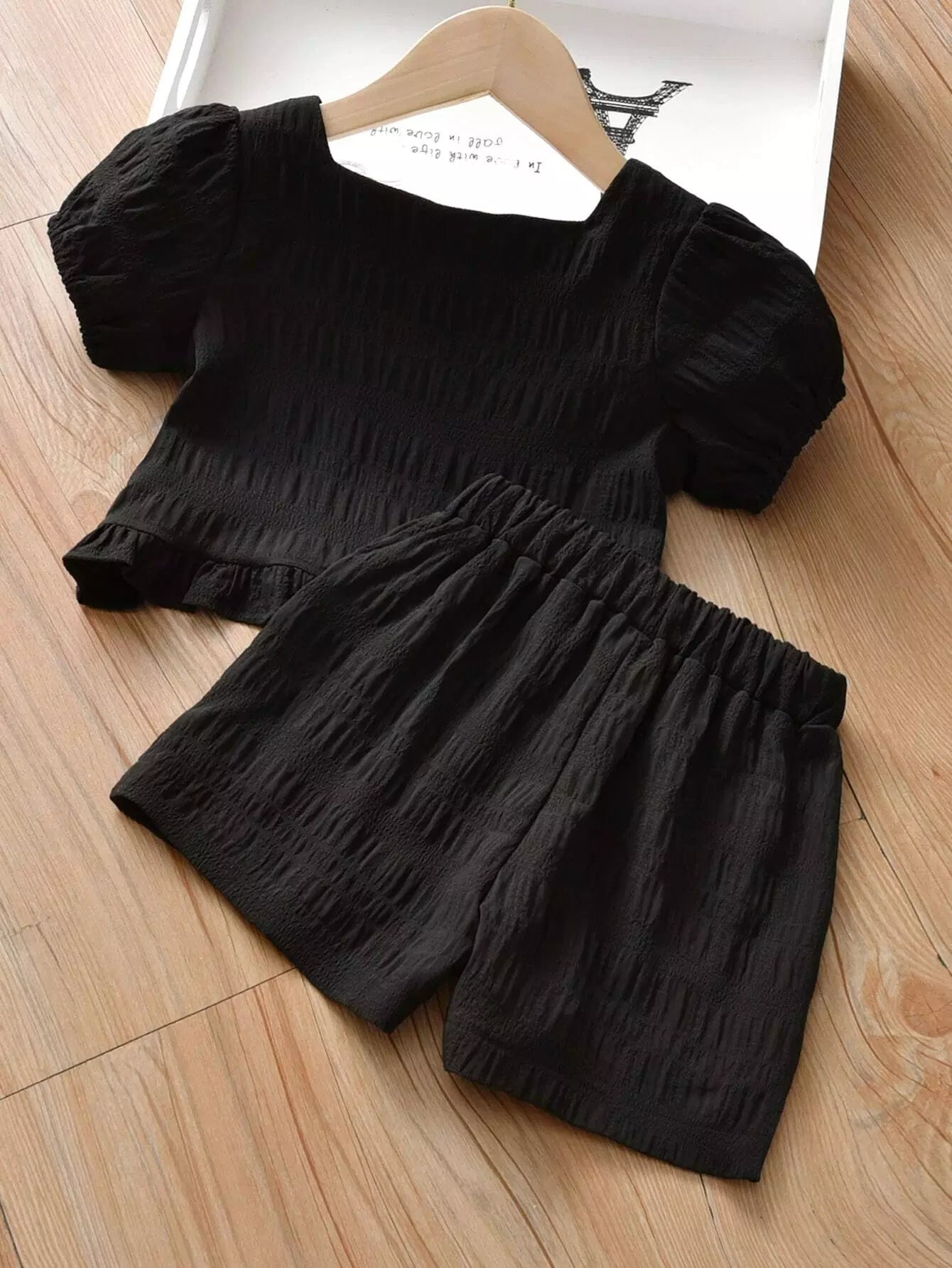 بلوزة بأكمام منتفخة للبنات الصغار مع شورت قصير