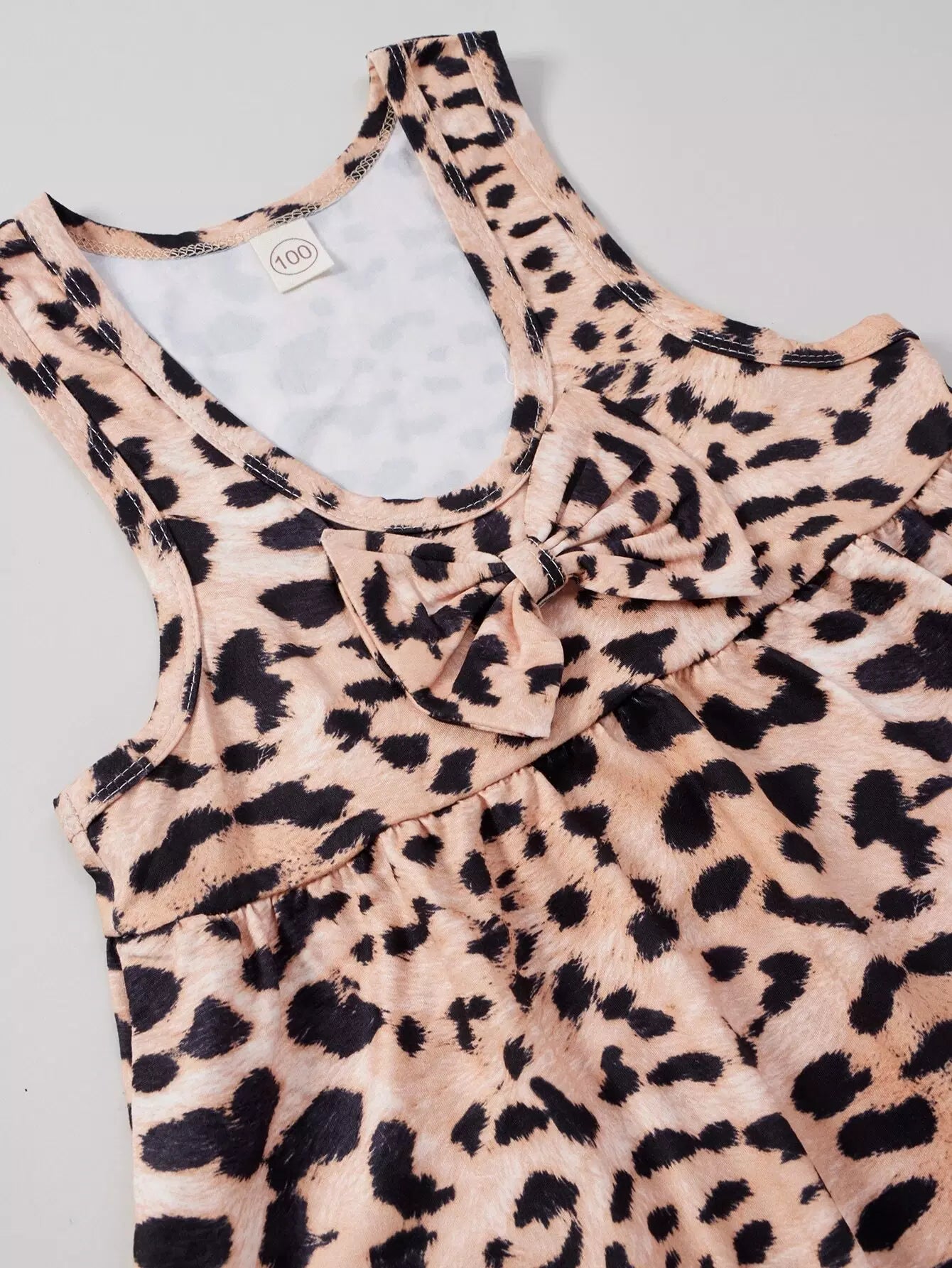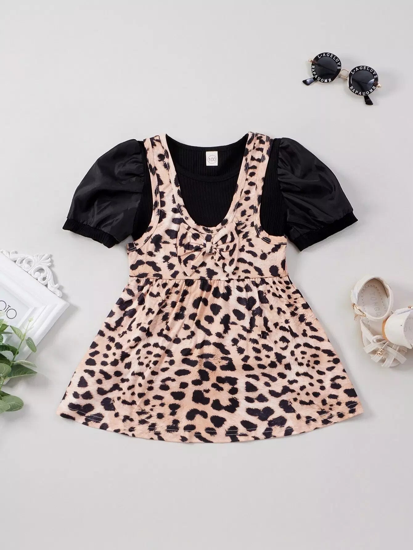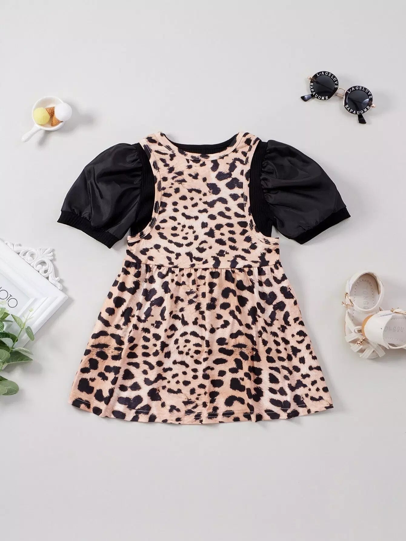 تي شيرت سادة بأكمام منفوشة للبنات الصغار وفستان بأكمام منفوشة بأكمام سادة وفستان بنقشة جلد النمر