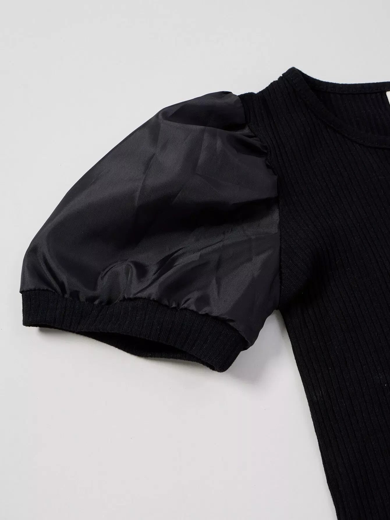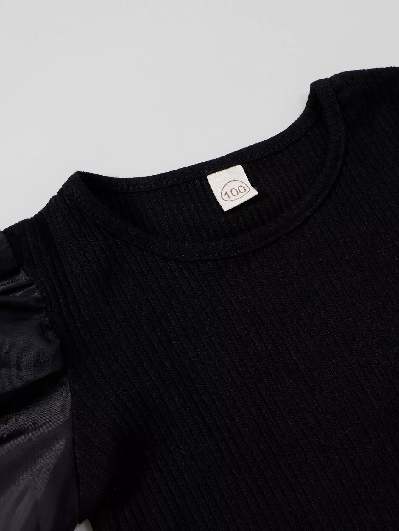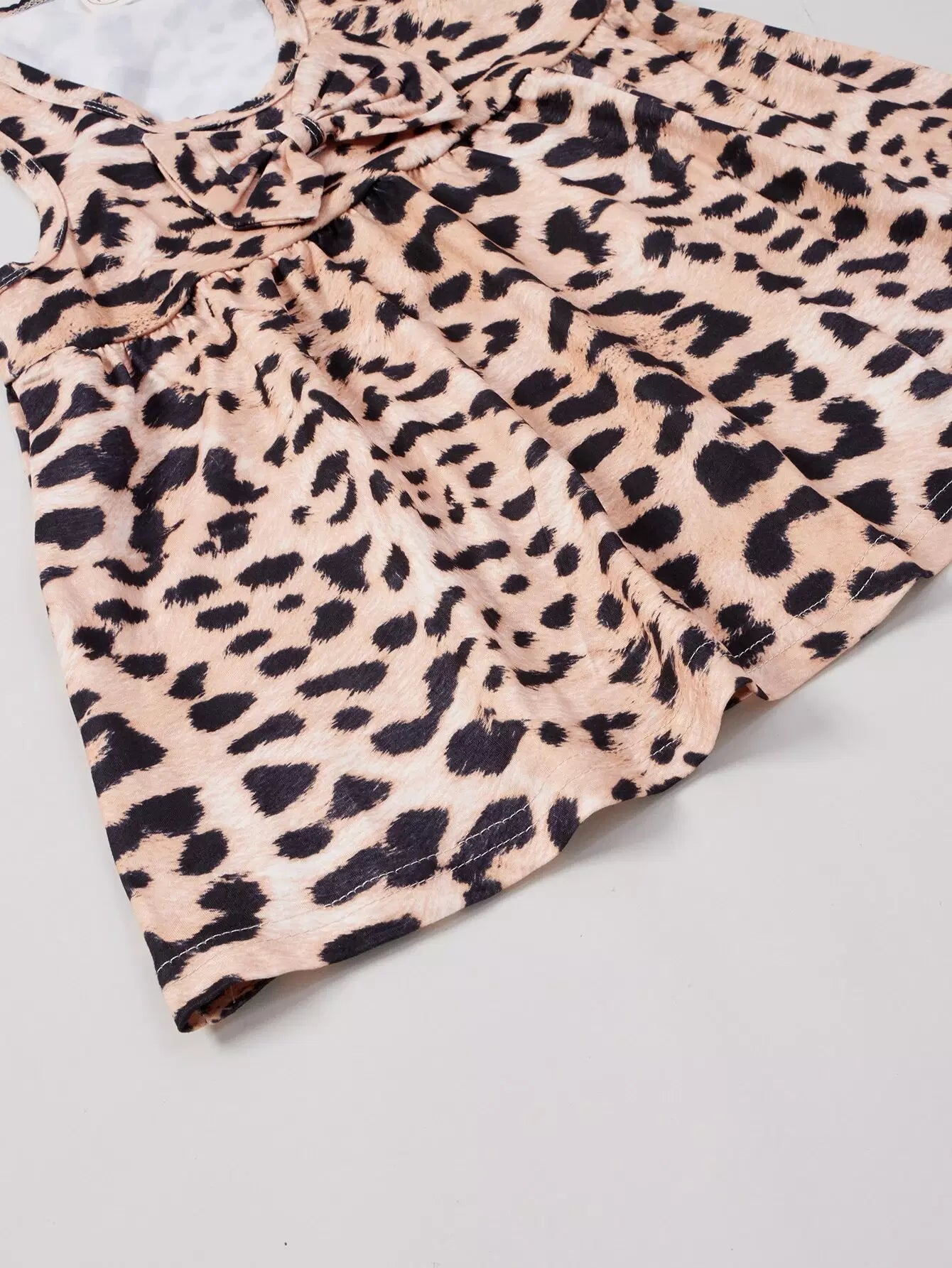 تي شيرت سادة بأكمام منفوشة للبنات الصغار وفستان بأكمام منفوشة بأكمام سادة وفستان بنقشة جلد النمر