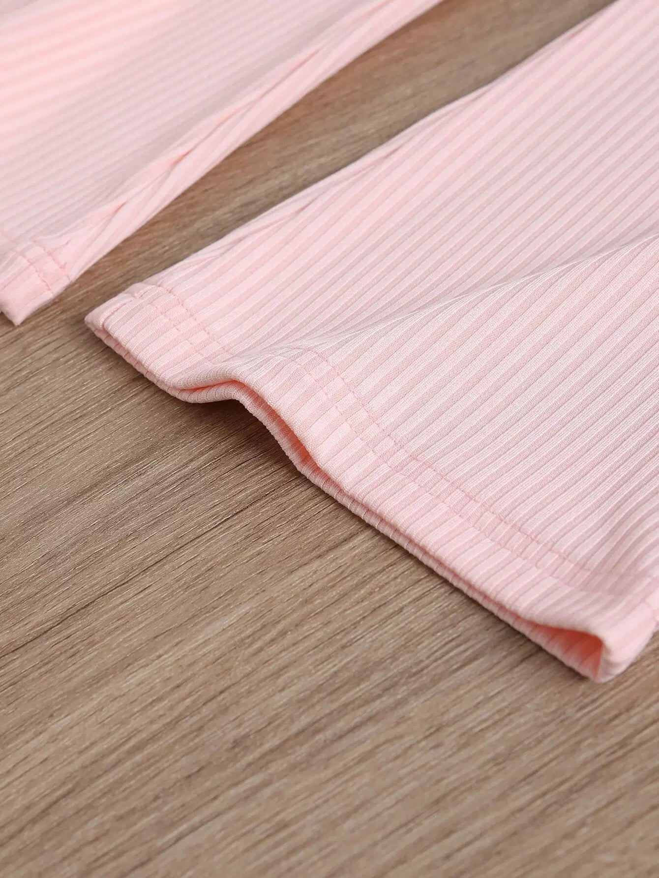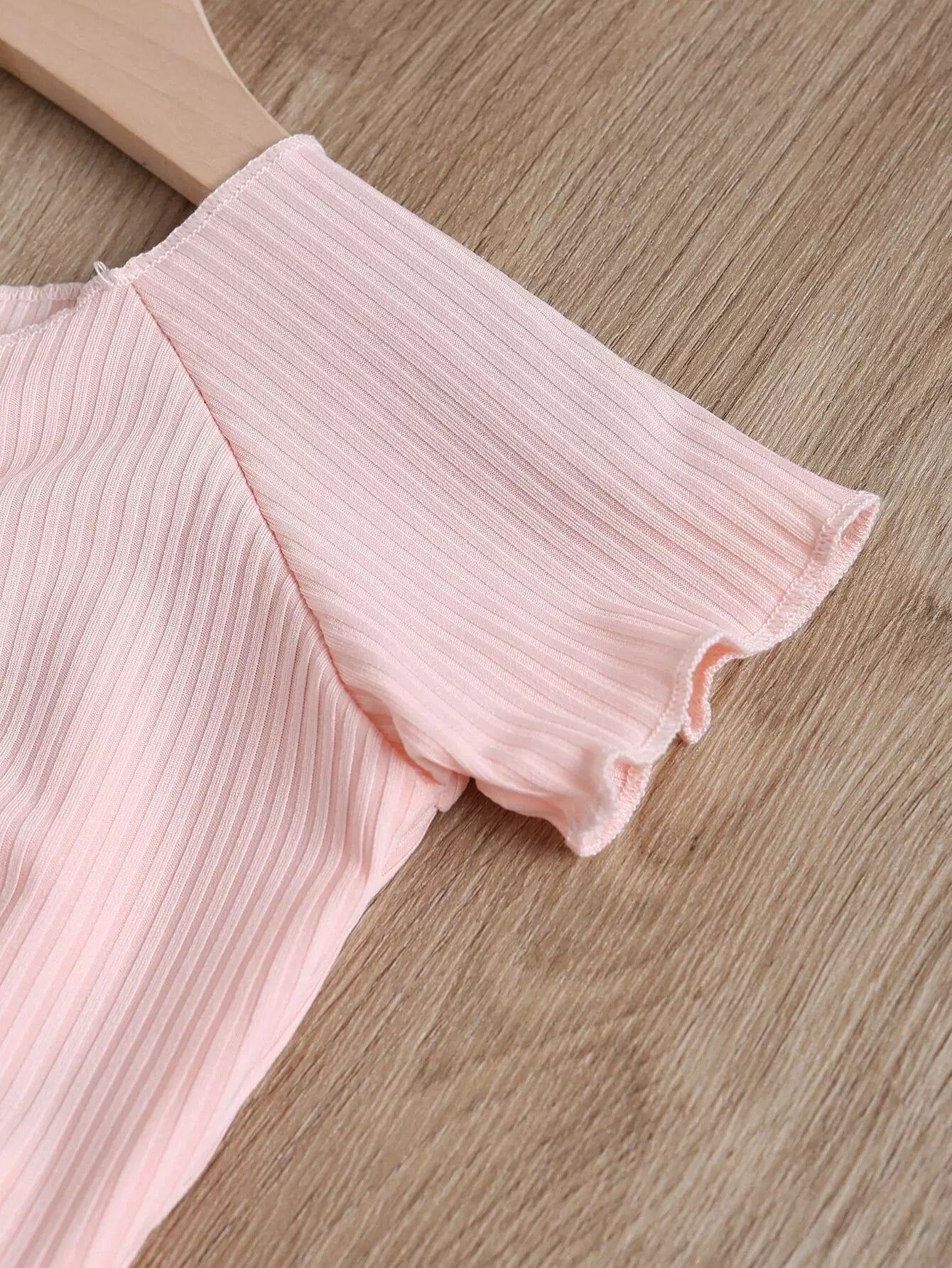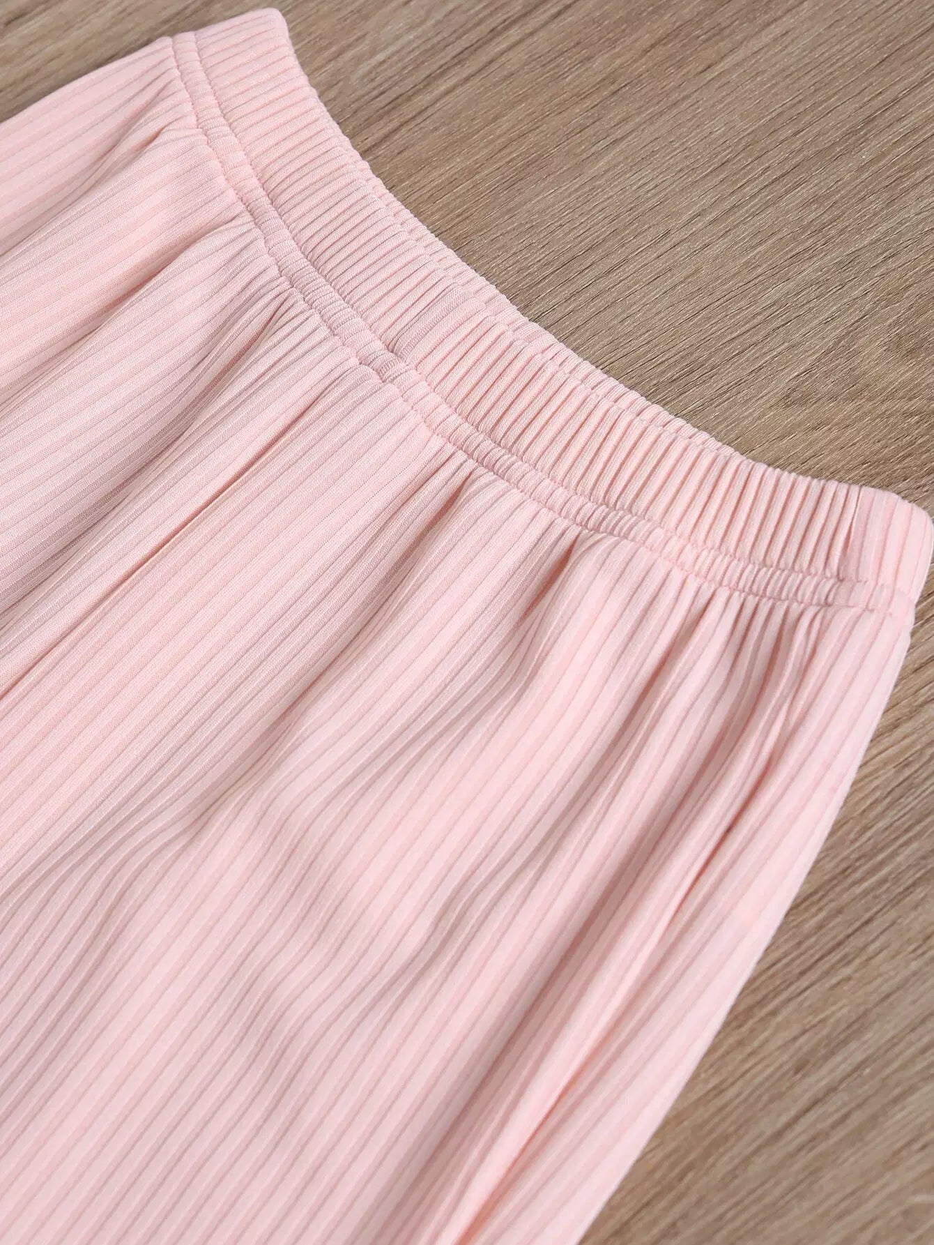 تي شيرت بفيونكة أمامية مجعدة مع بنطلون واسع الساق للفتيات الصغيرات