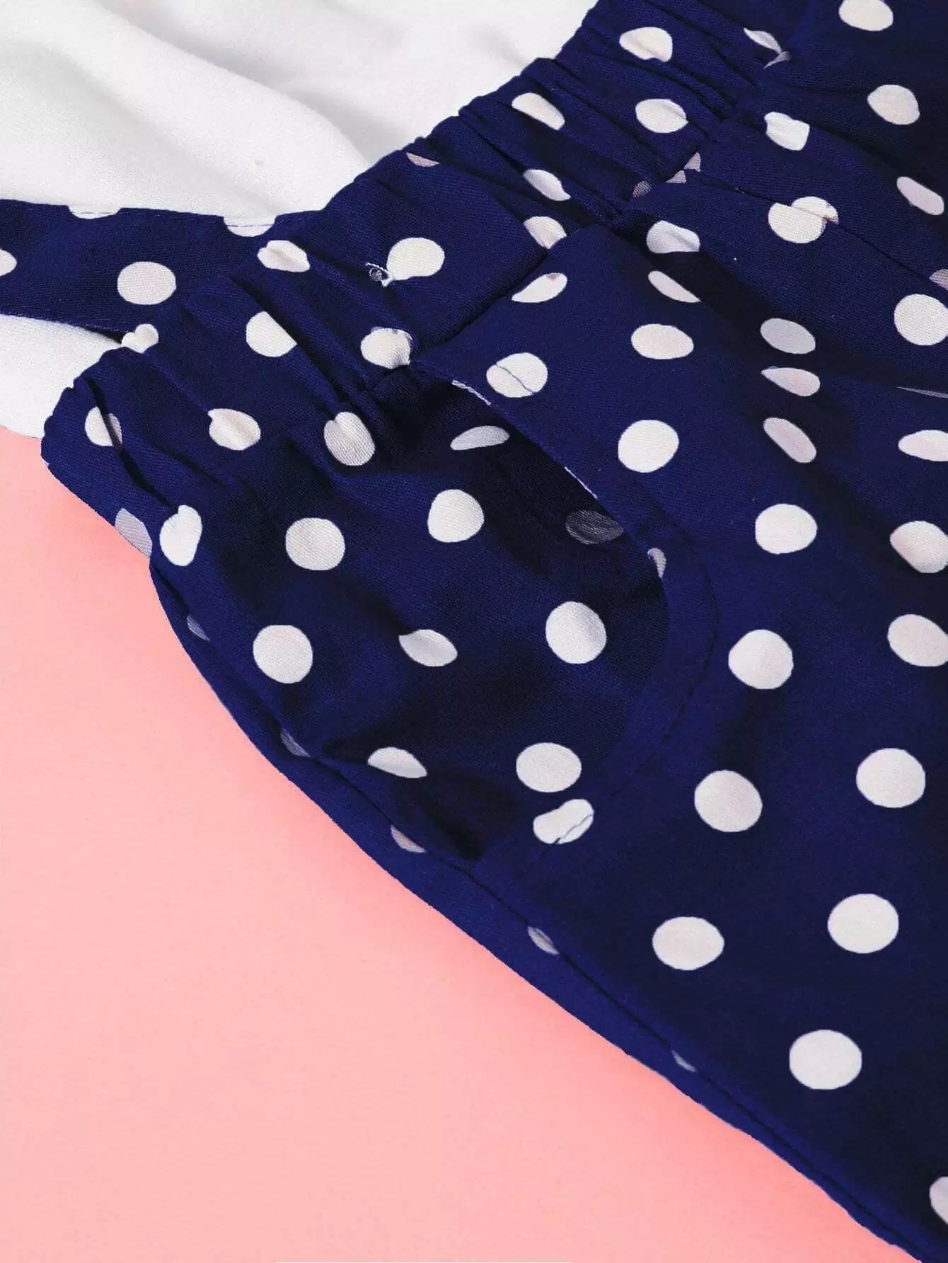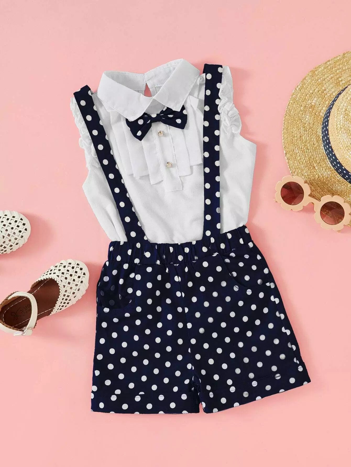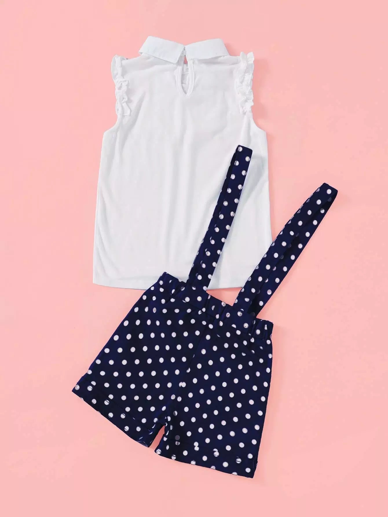 بلوزة بأكمام كشكش بأكمام مكشكشة للبنات الصغار مع شورت قصير منقّط