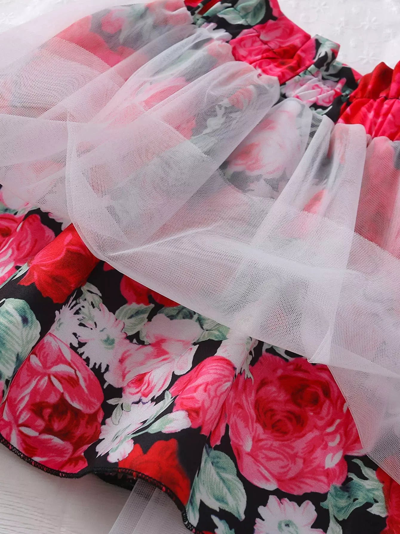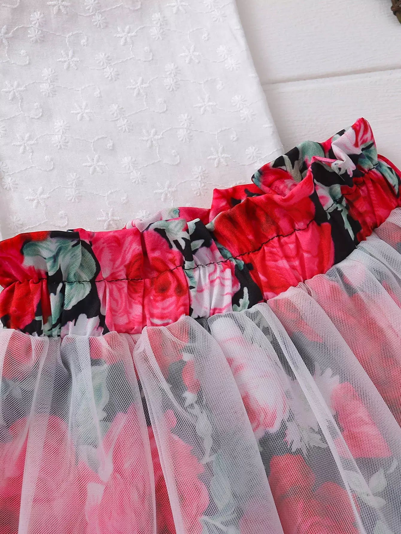بلوزة مطرزة بتطريز كشكش للبنات الصغار وتنورة شبكية مزينة بالزهور