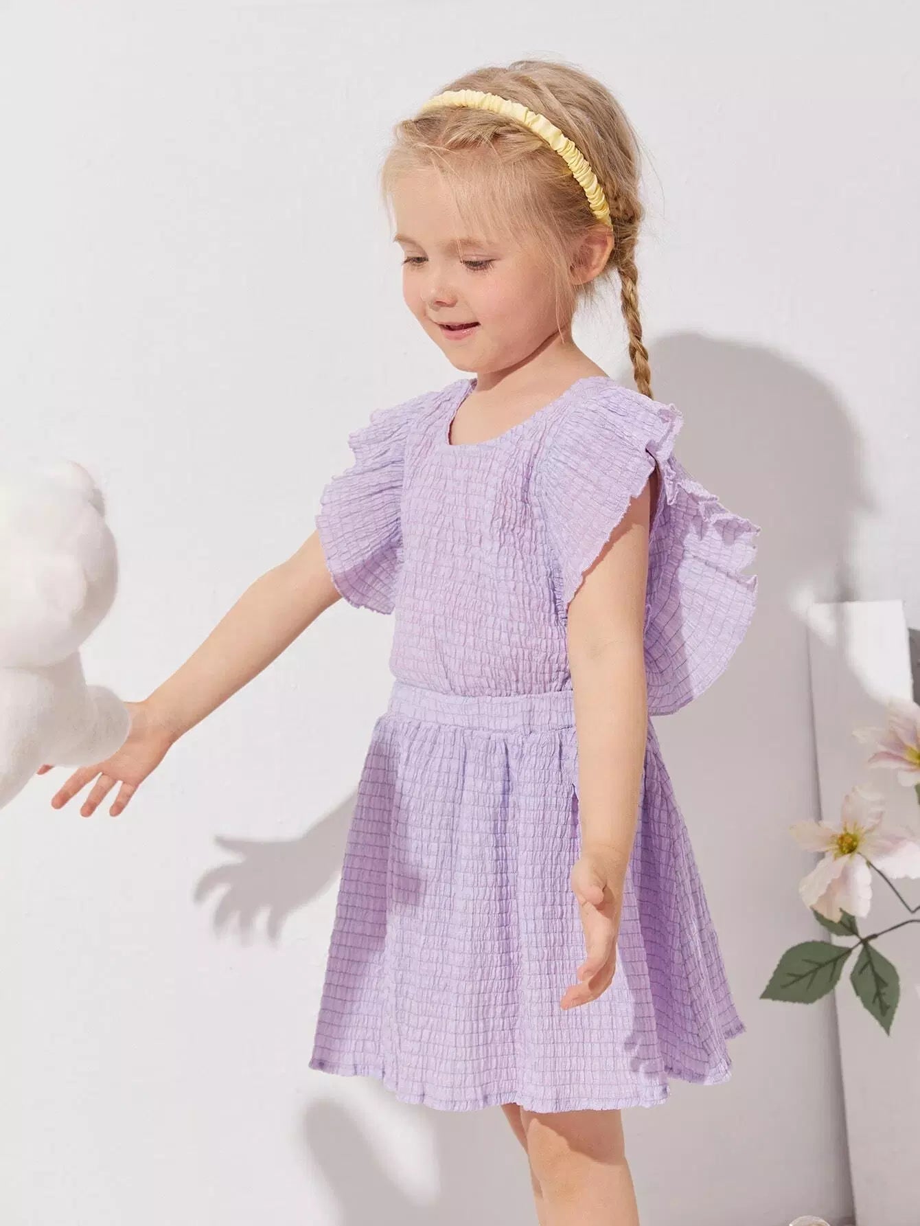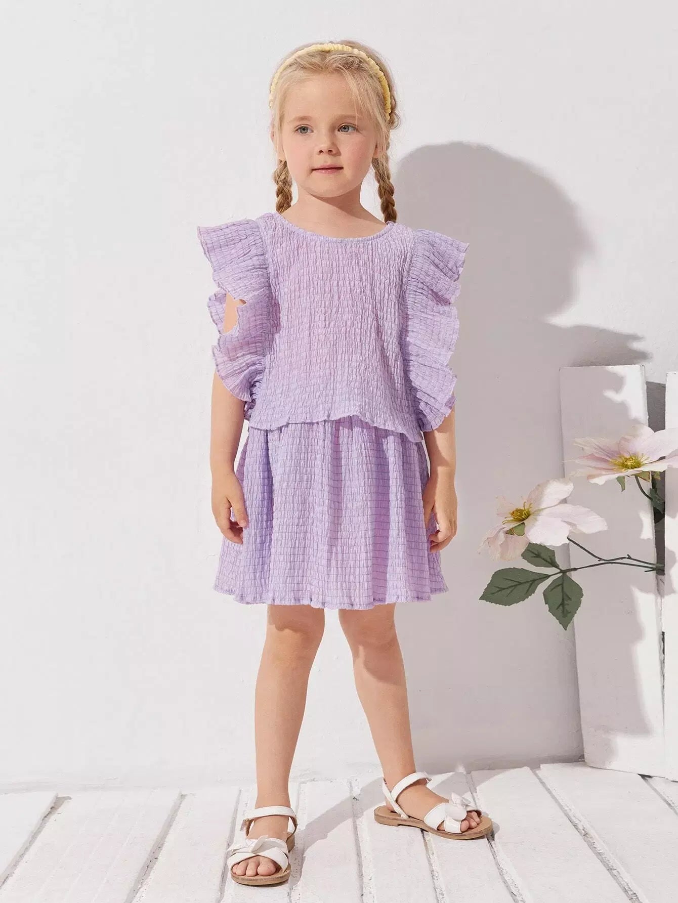 طقم بلوزة وتنورة بحواف مكشكشة للبنات الصغار