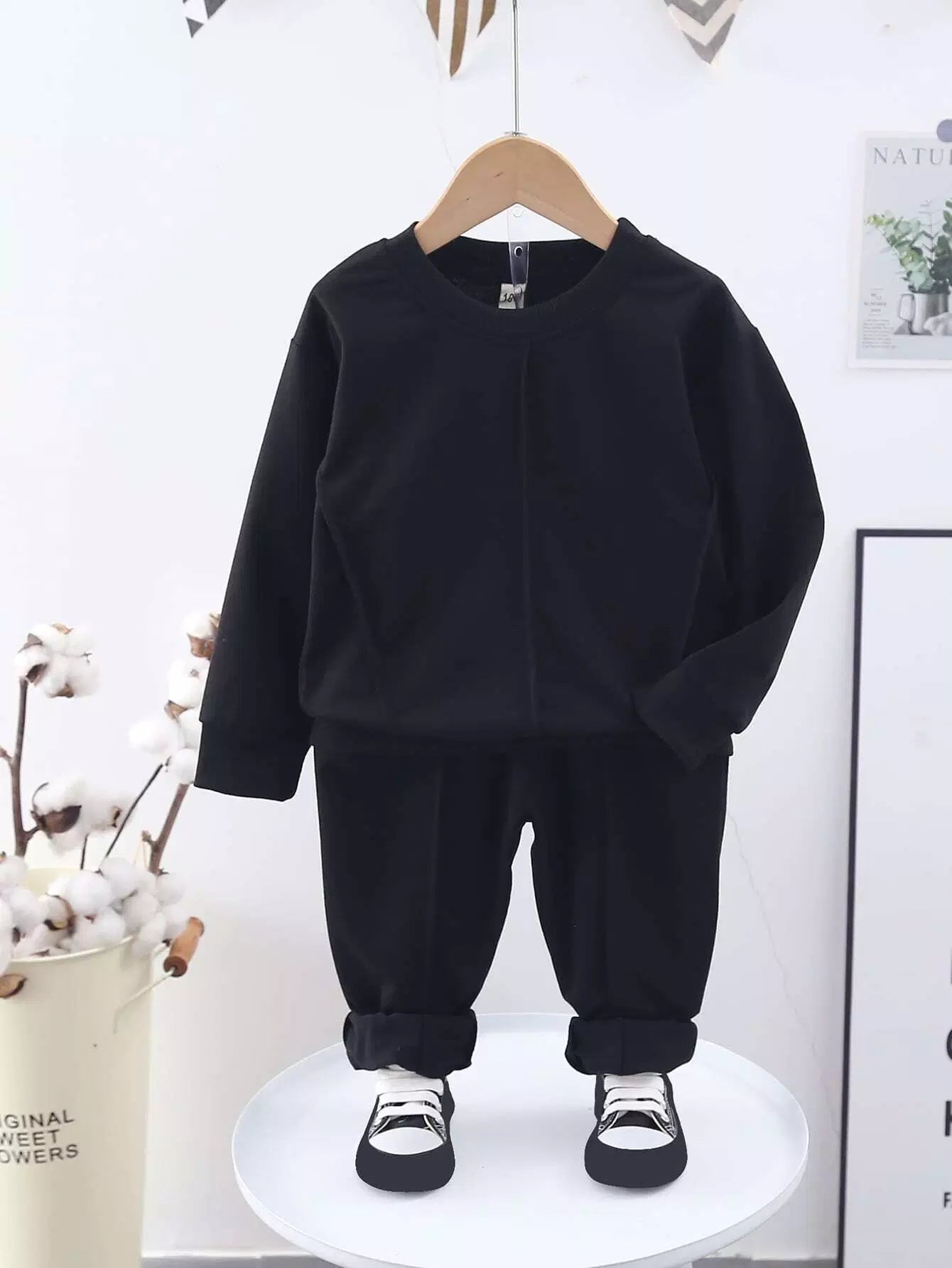 كنزة صوفية وبنطال رياضي بتفاصيل خياطة للبنات الصغار