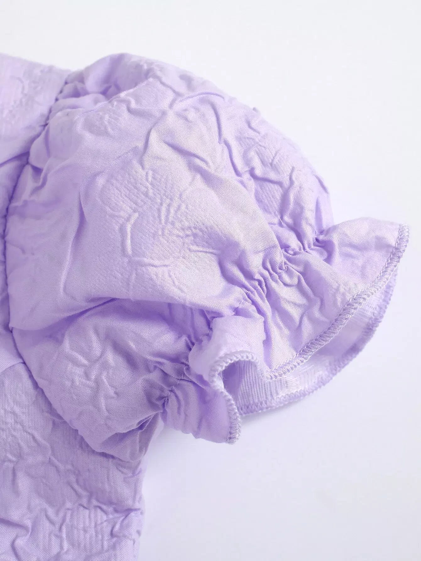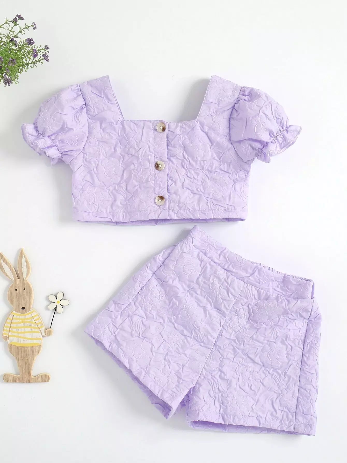 بلوزة بياقة مربعة برقبة مربعة بأزرار أمامية وبنطلون قصير للبنات