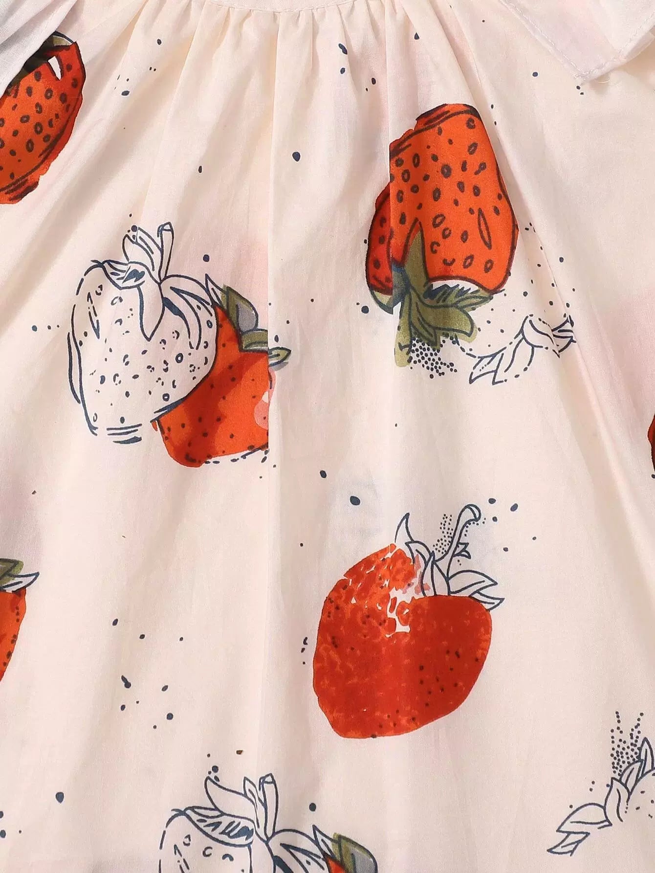 بلوزة مكشكشة بطبعة فراولة للبنات الصغيرات وشورت مرقع