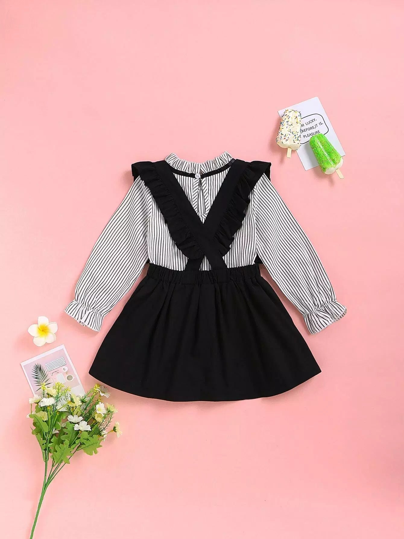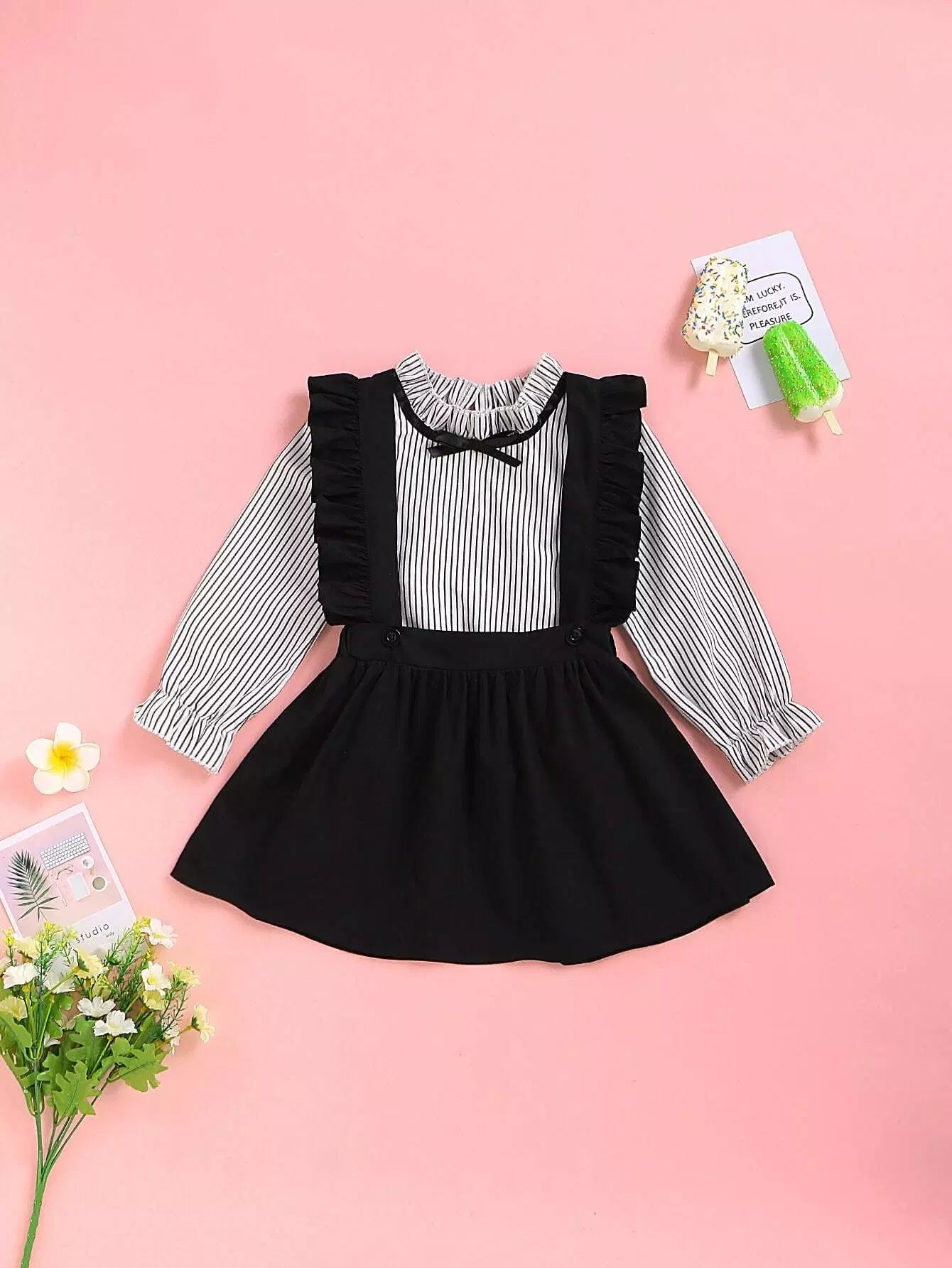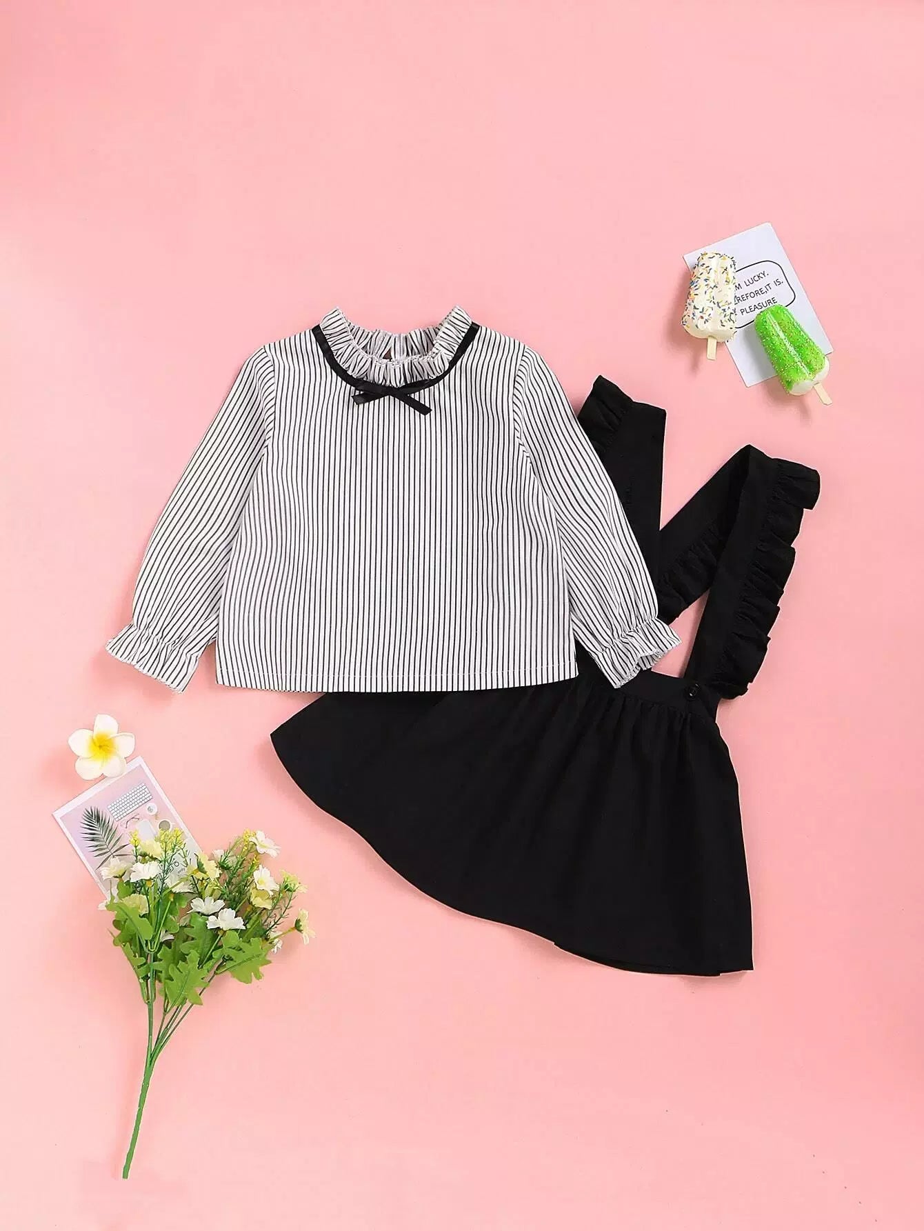 بلوزة كشكش مخططة للبنات الصغار مع تنورة كشكش بينبور
