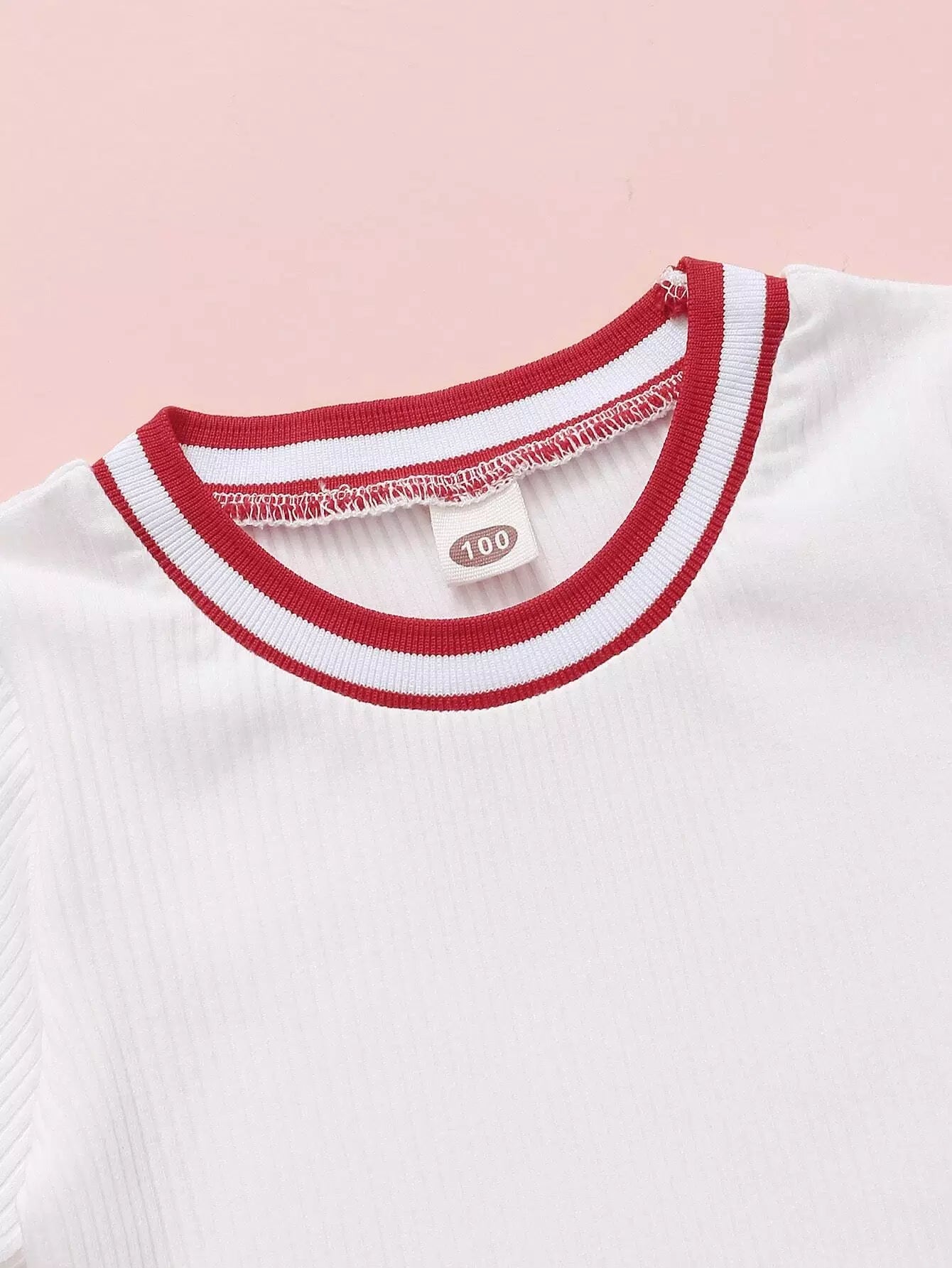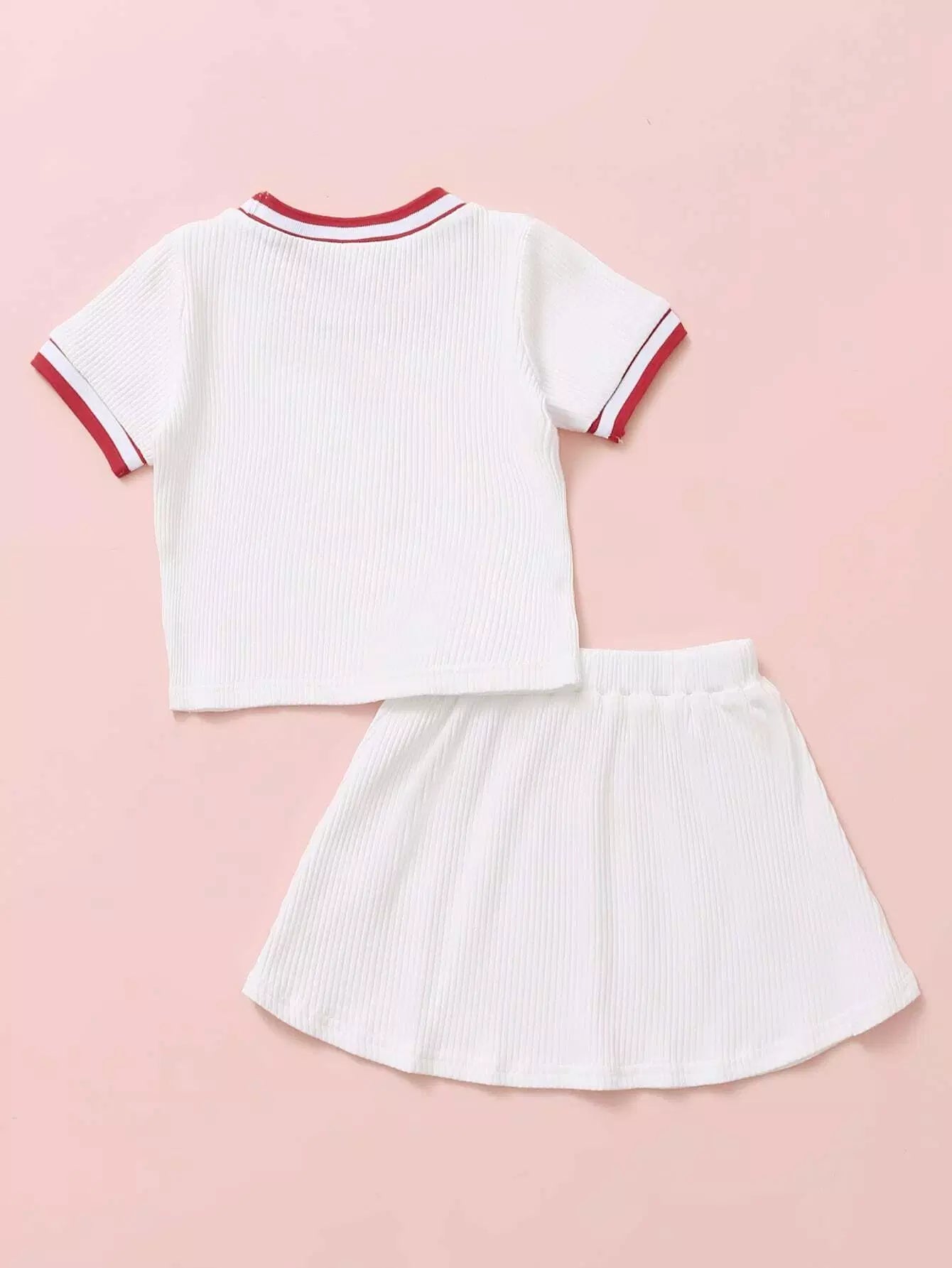 تي شيرت وتنورة مخططة مضلعة مخططة للبنات الصغار