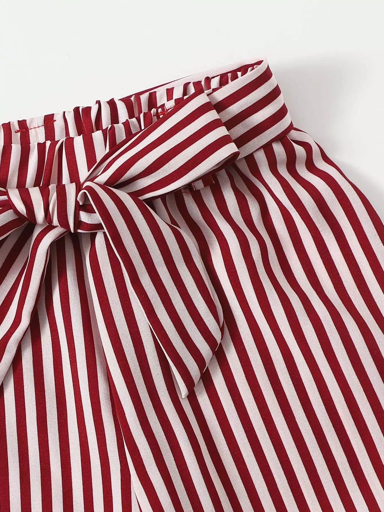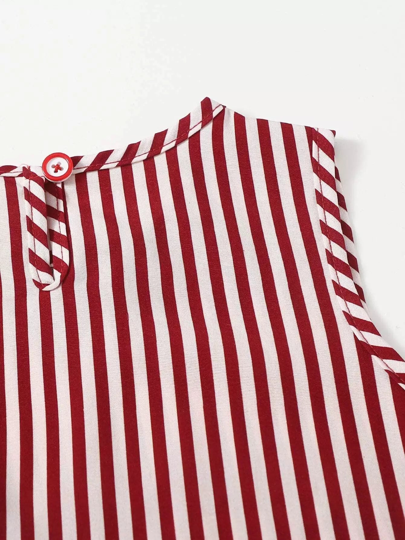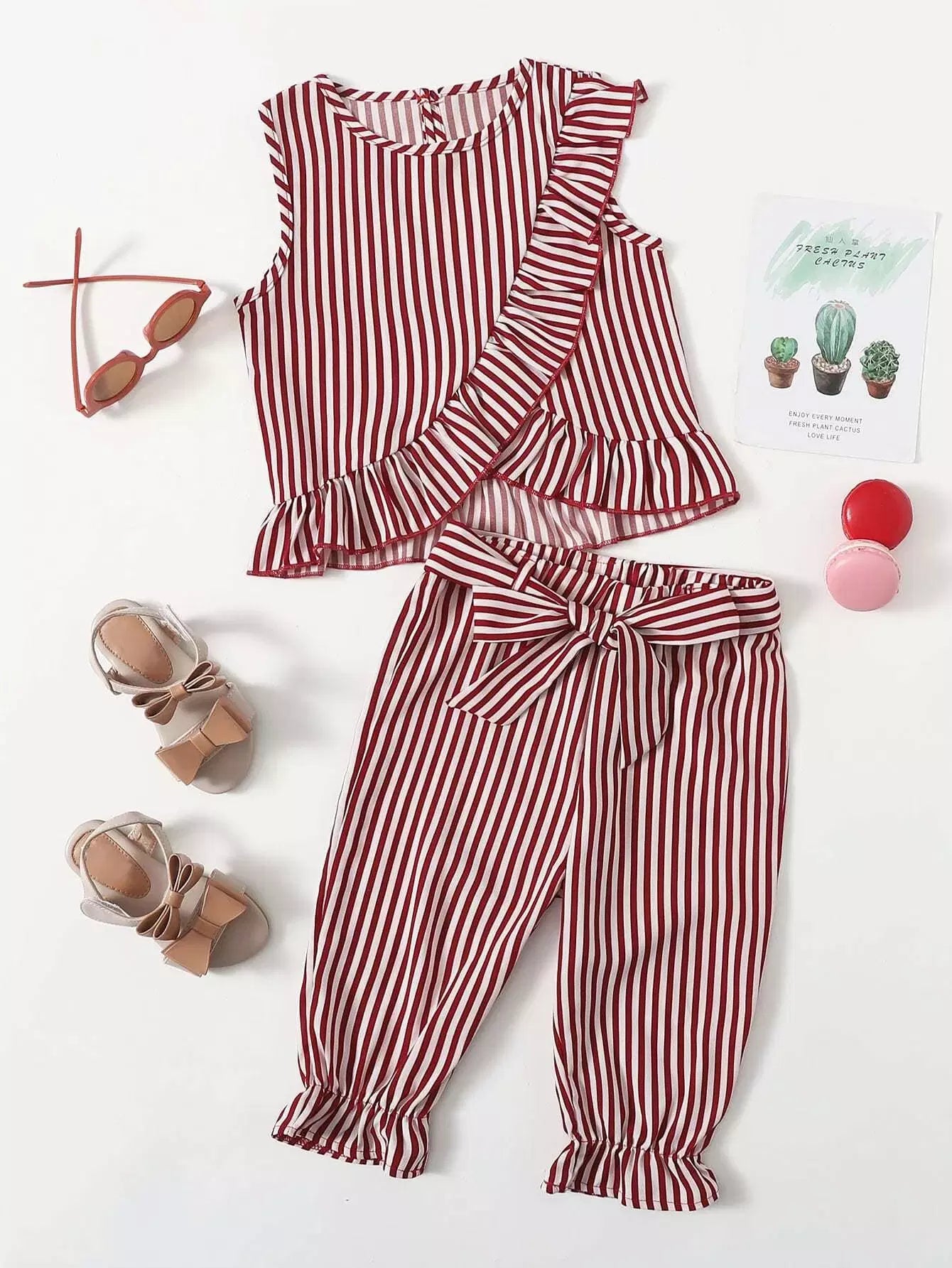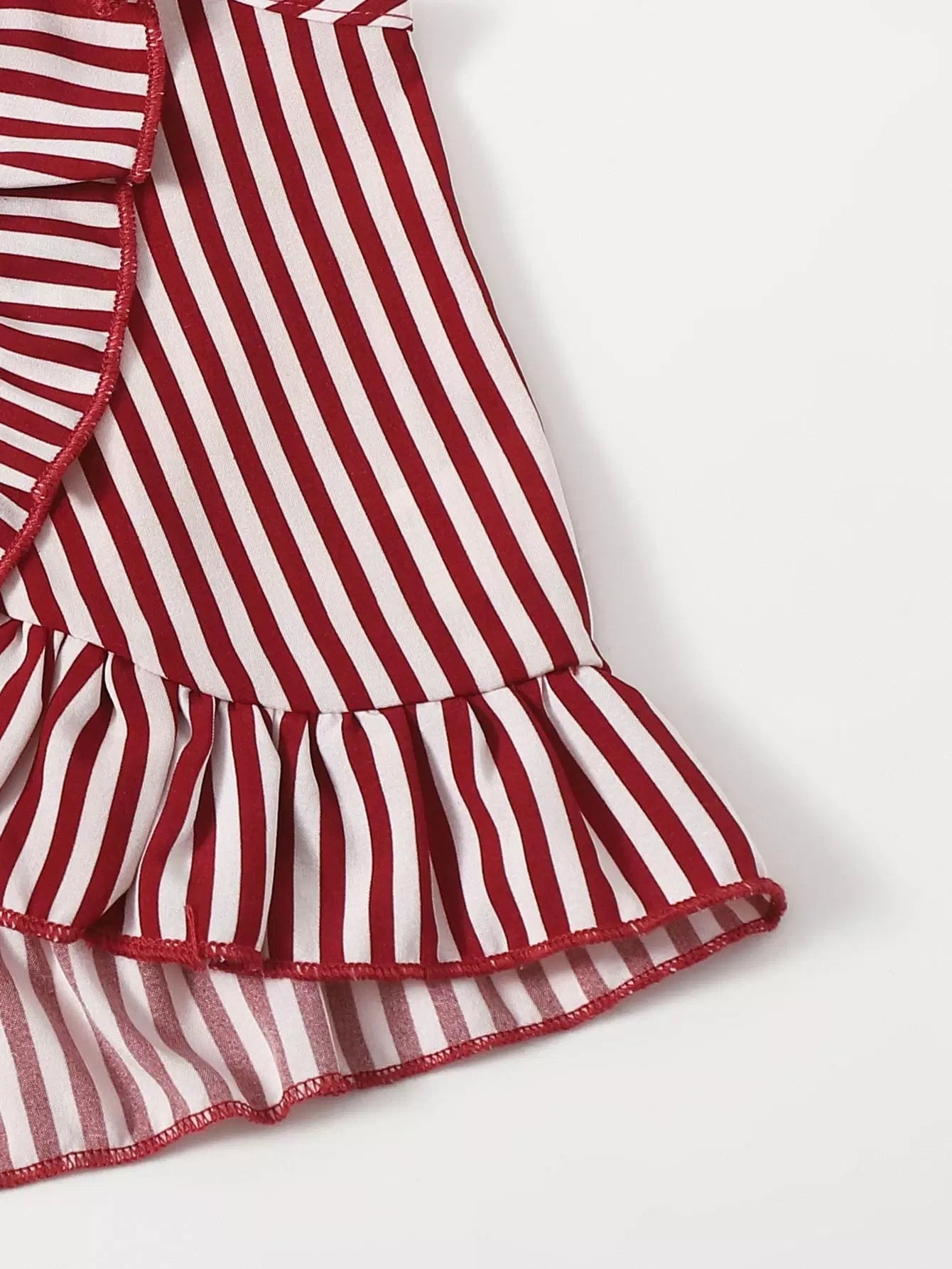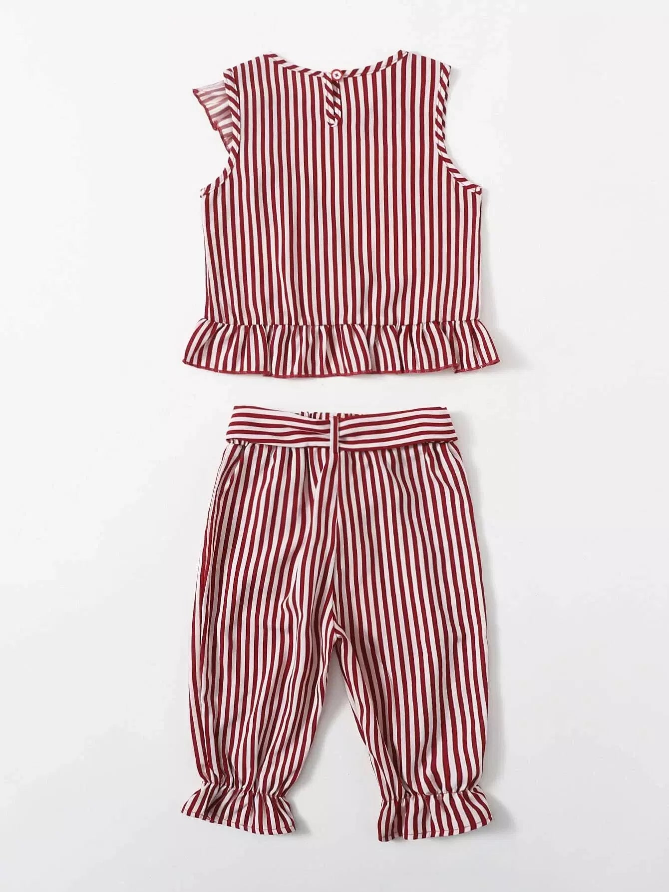 سروال علوي بدون أكمام مخطط ومكشكش للفتيات الصغيرات بدون حزام
