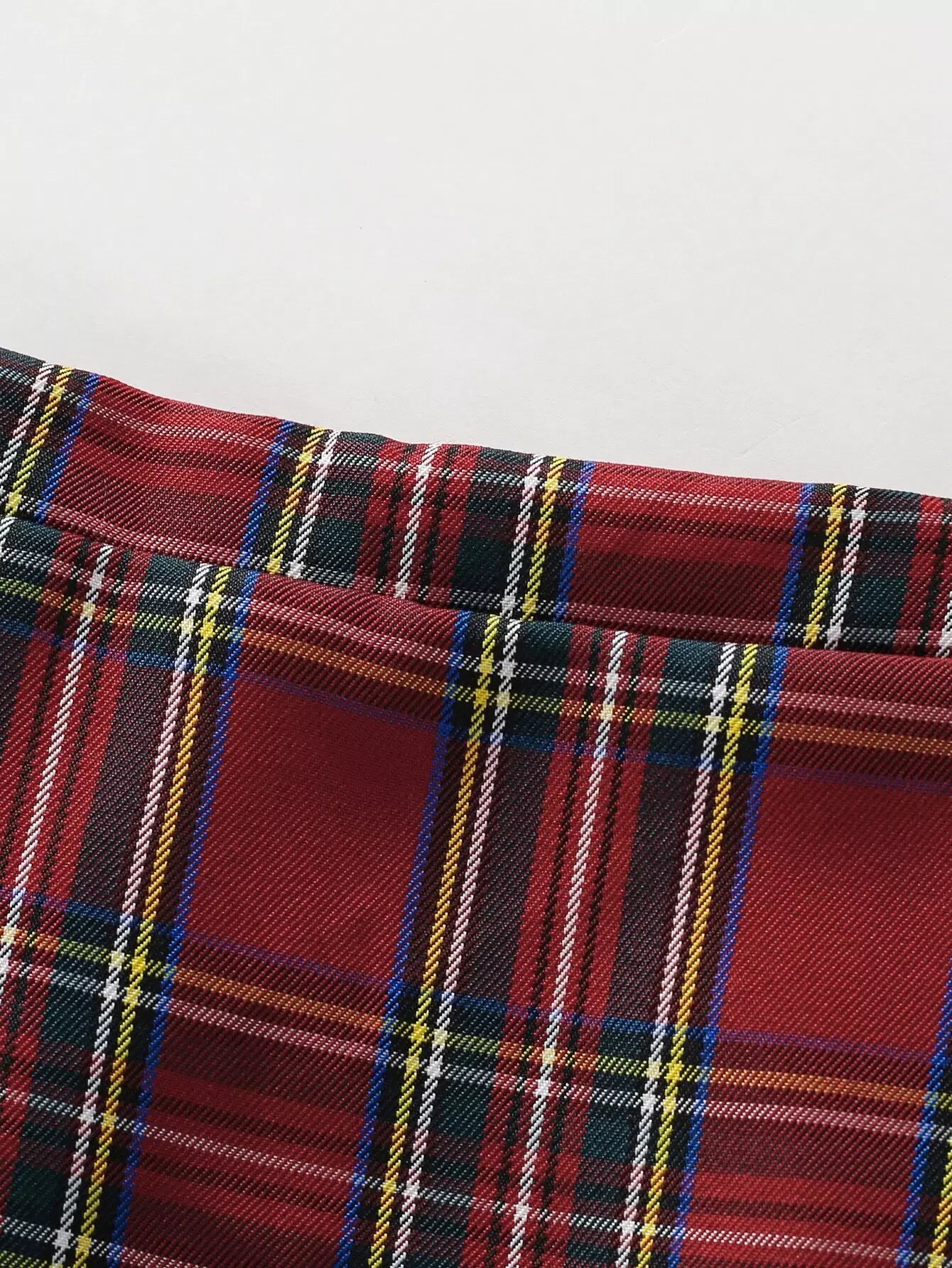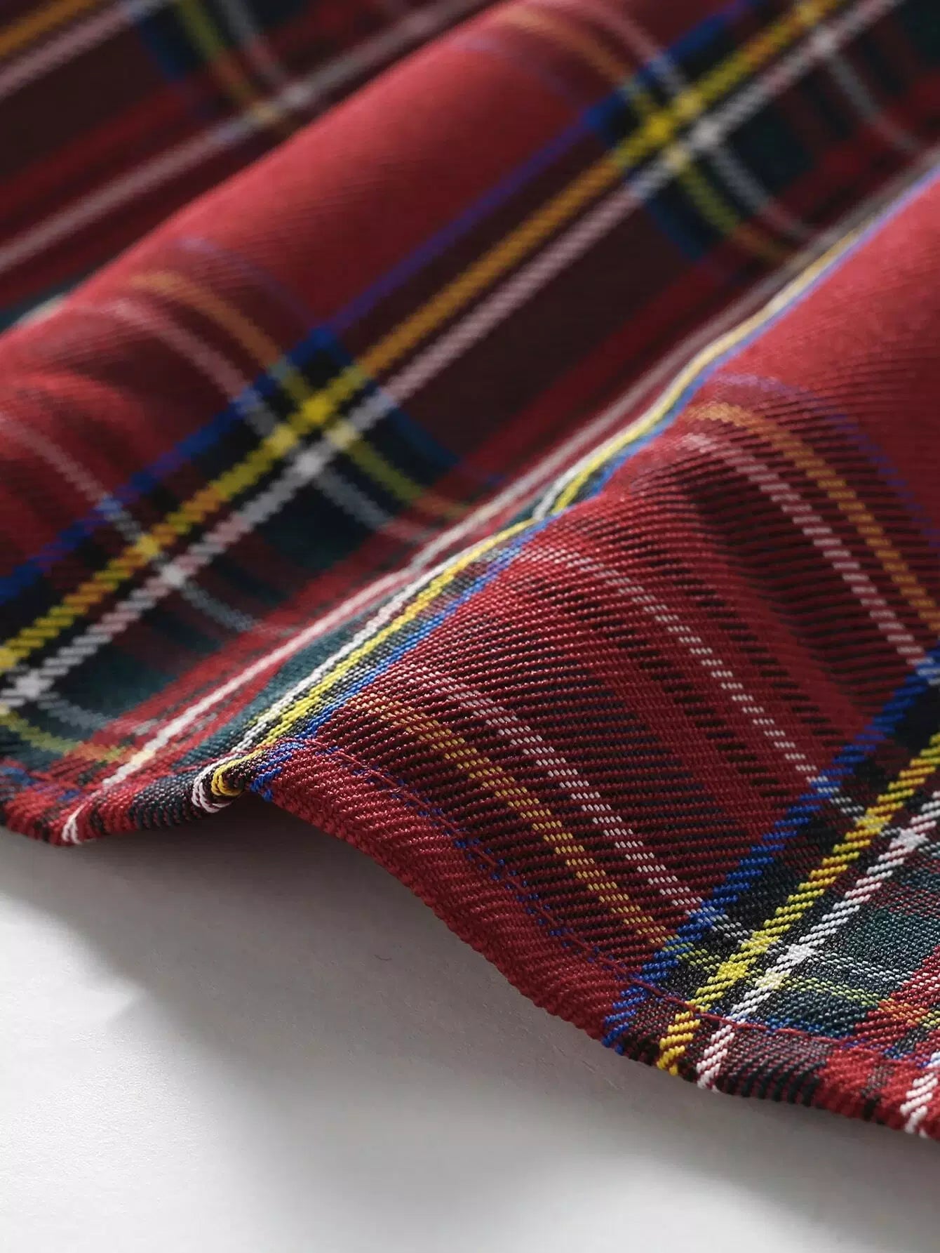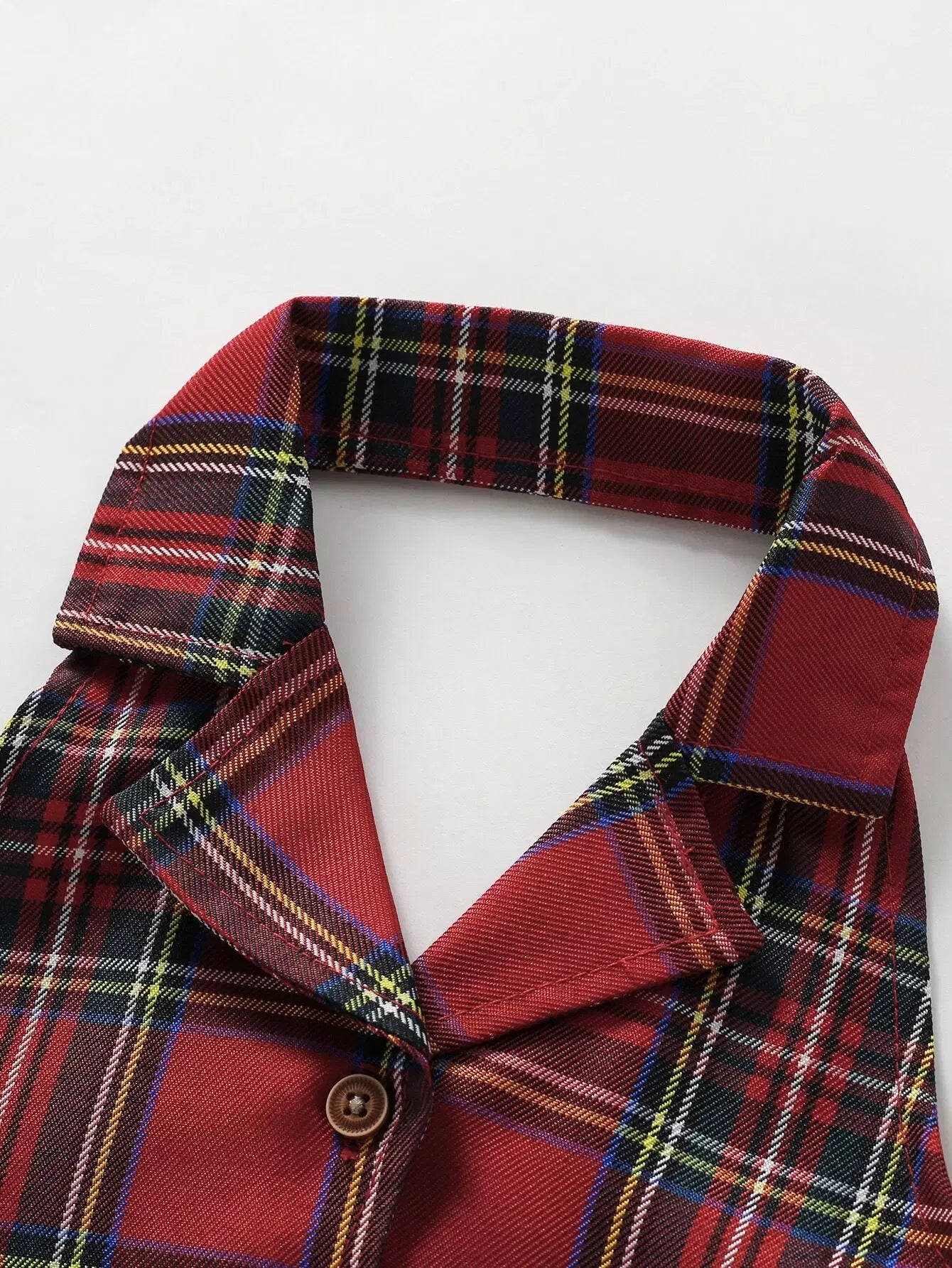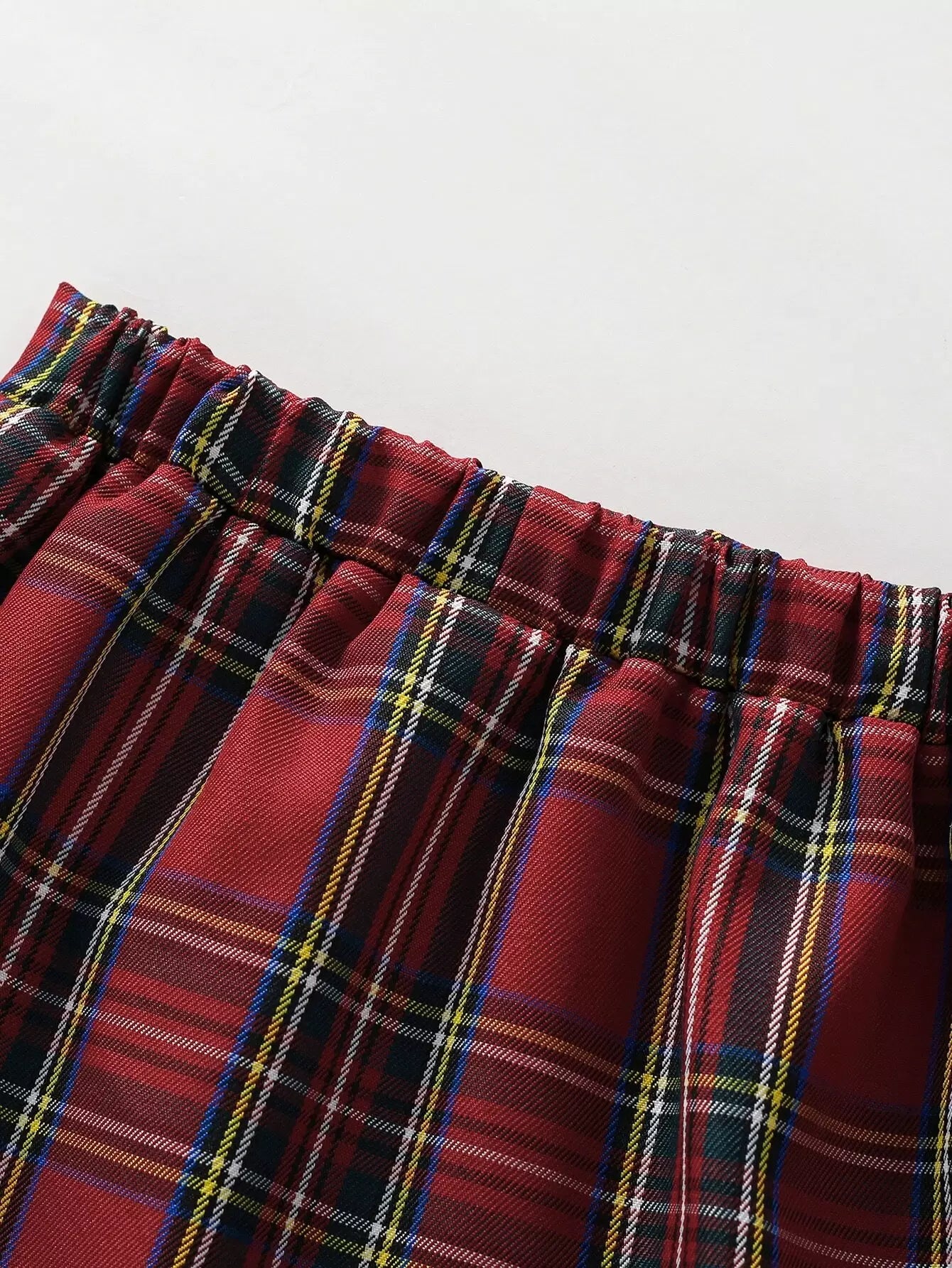 بلوزة وتنورة تارتان بصدر واحد للبنات الصغيرات ذات الرسن الواحد