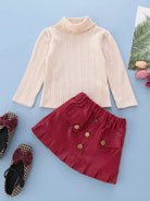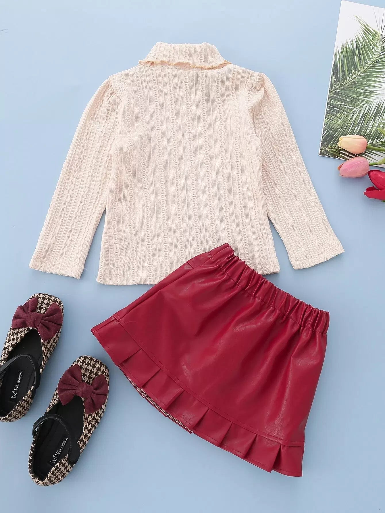 بلوزة بنطلون بناتي صغيرات مزخرف وتنورة بحواف مكشكشة
