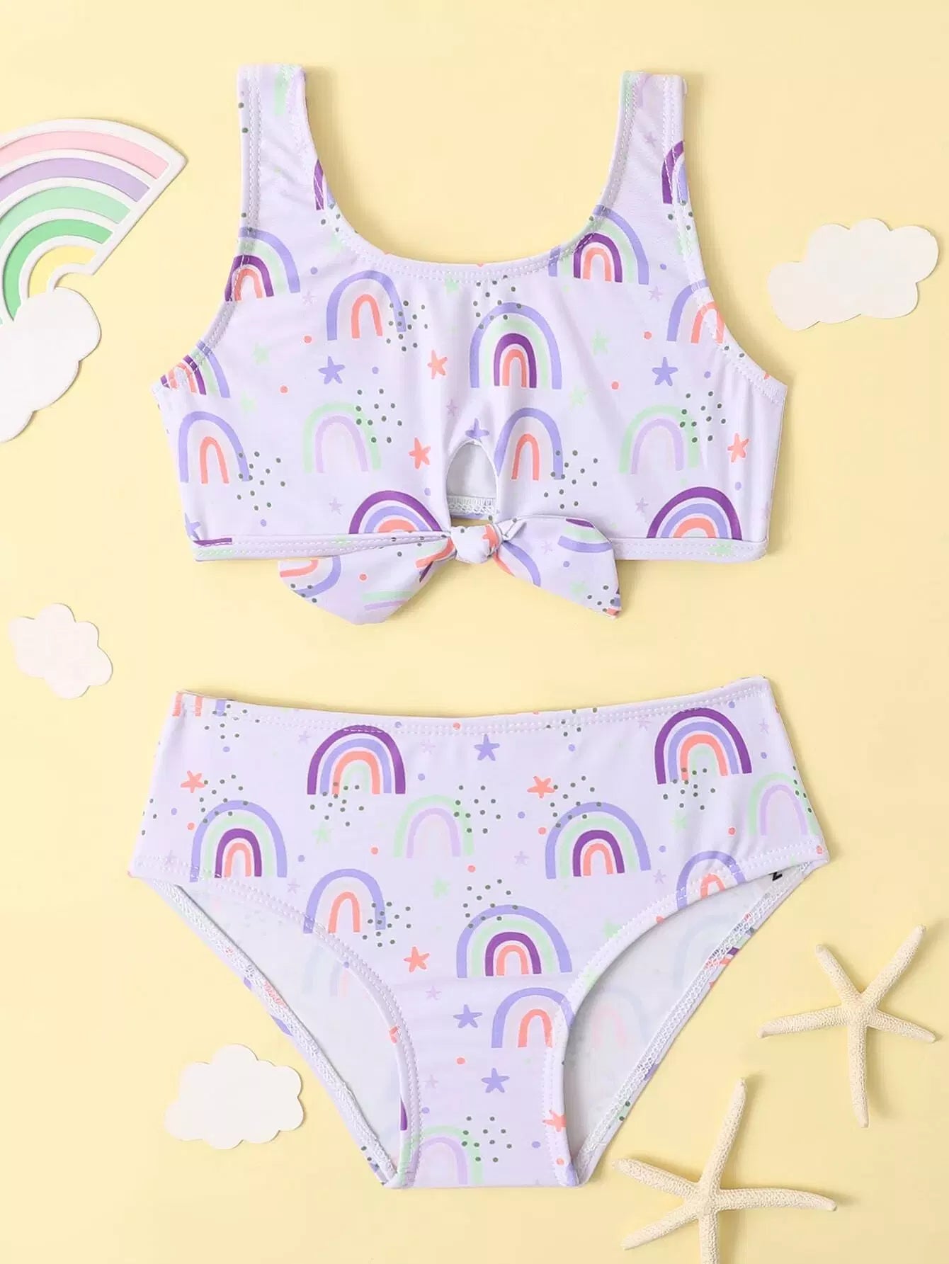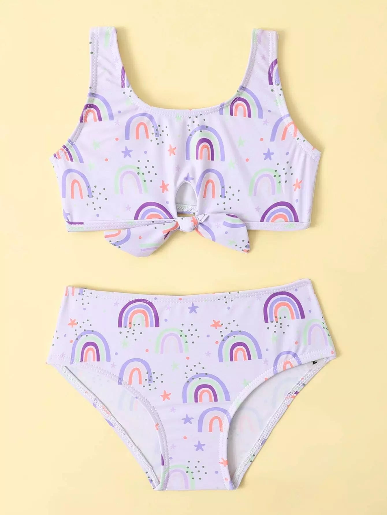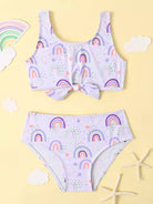مايوه سباحة بيكيني بطبعة قوس قزح للبنات الصغار